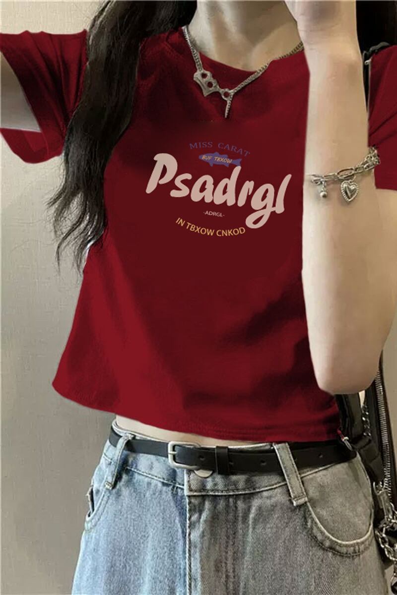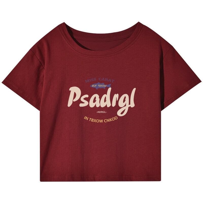 ピュアコットンラウンドネック半袖Tシャツレディース夏デザインセンスBMスタイルスリムスリムハイウエストショートプリントトップ ハイウェスト サマー 夏物 Oネック 7460015598685646 | framboise21