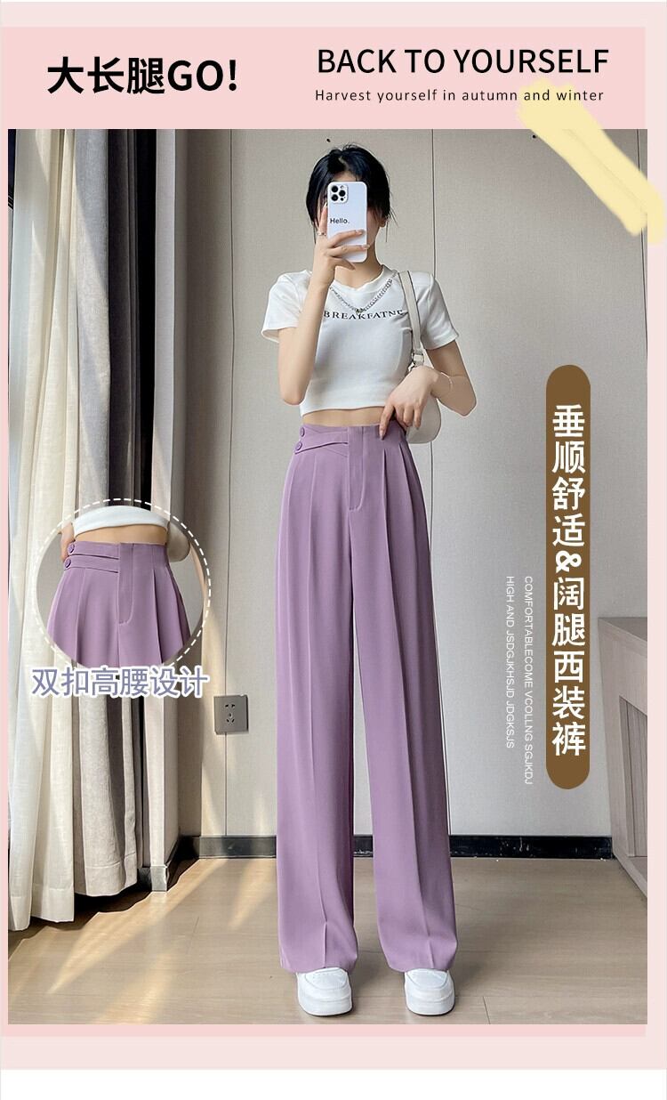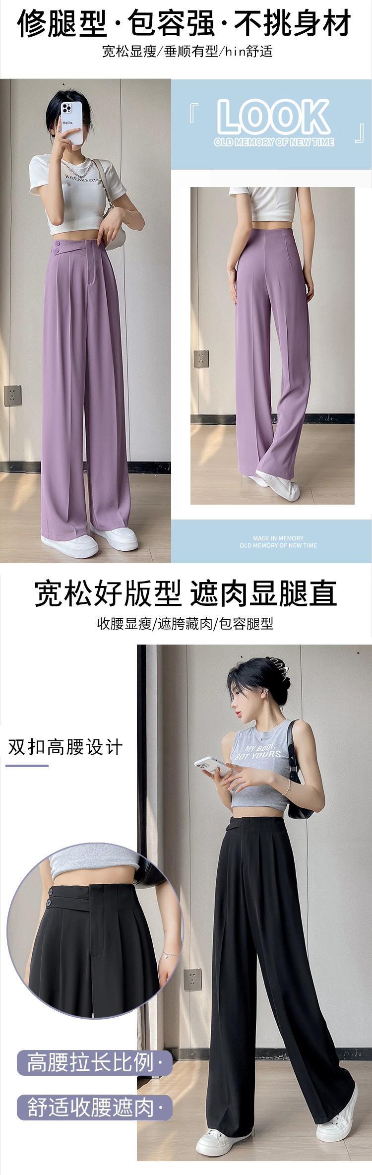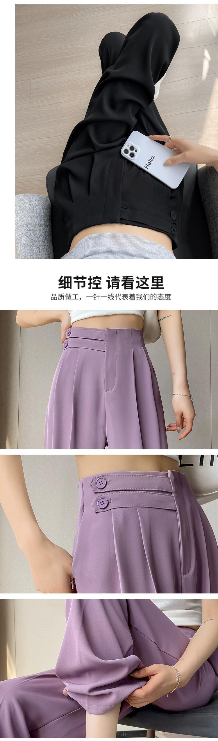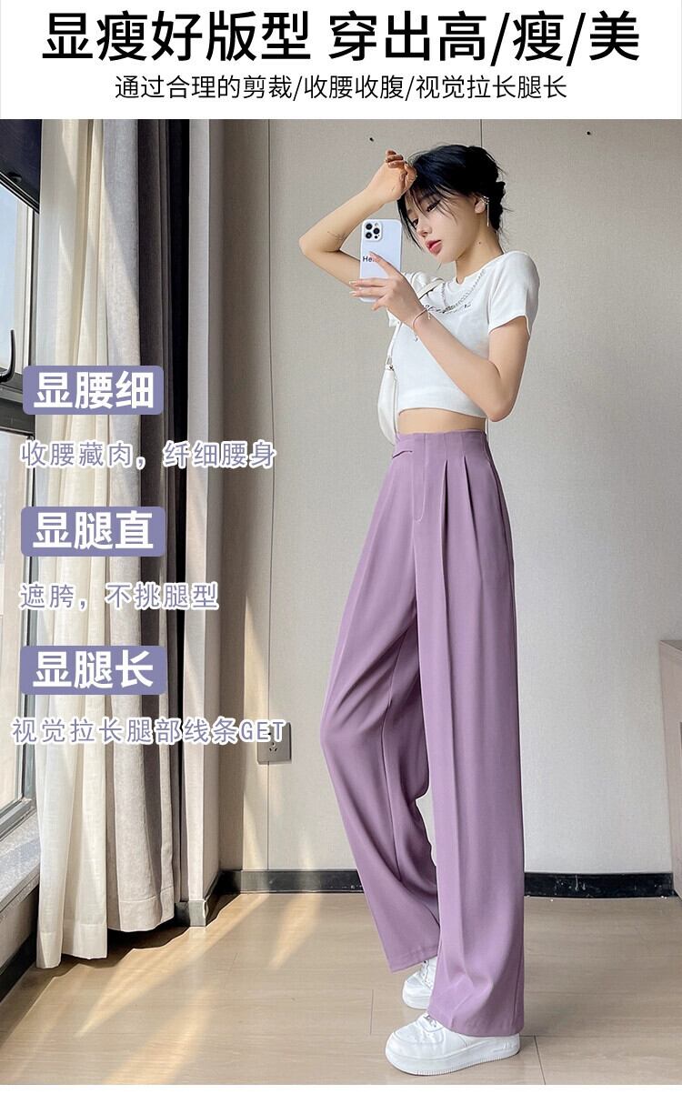 パープルアイスシルクスーツパンツレディース夏薄部ドレープワイドレッグパンツルーズカジュアルスリムハイウエストナローバージョンロングパンツ ハイウェスト サマー 夏物 7460031071815748 | framboise21
