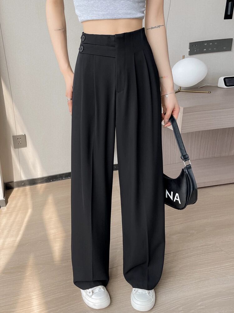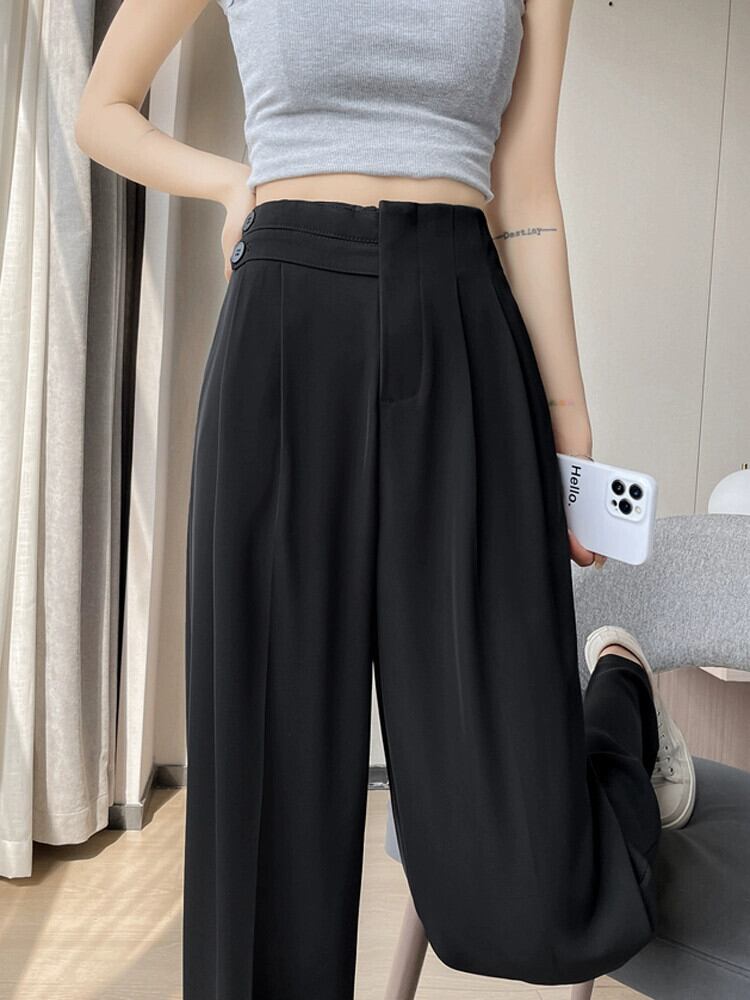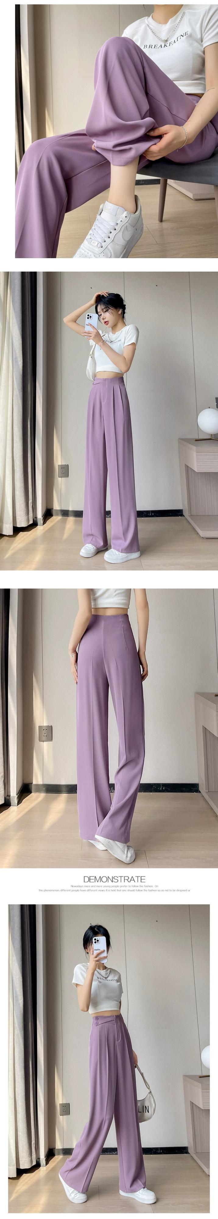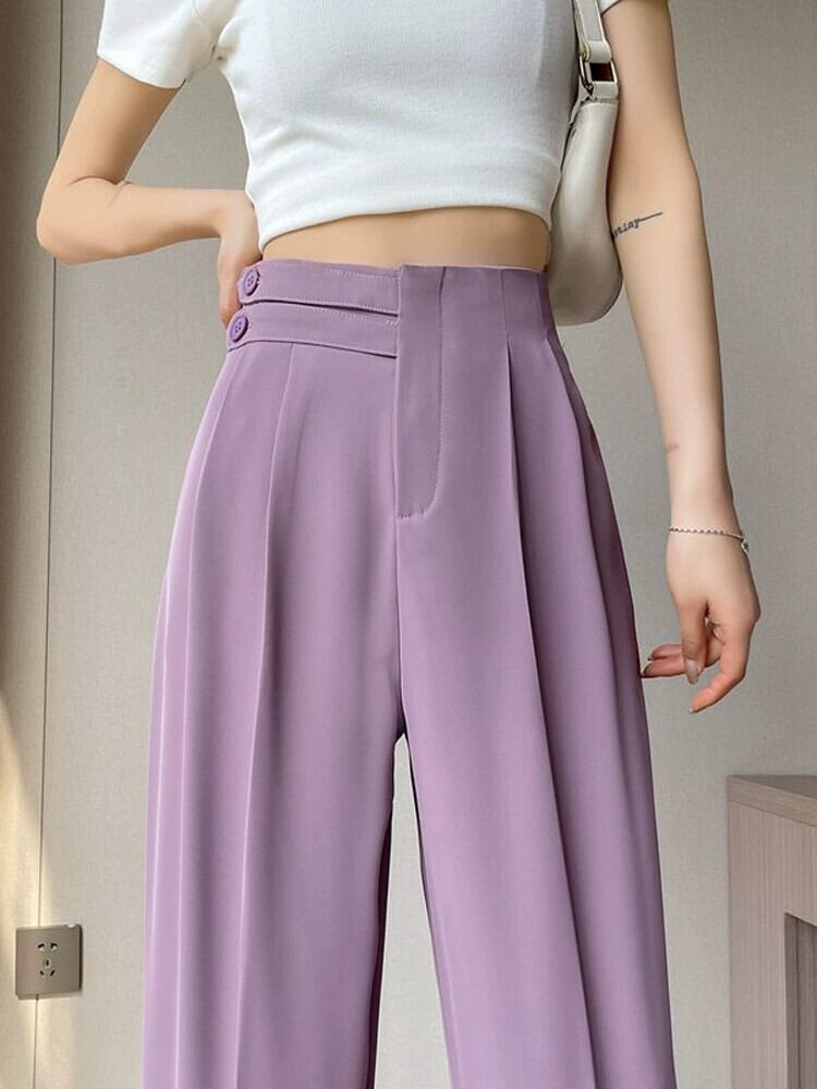パープルアイスシルクスーツパンツレディース夏薄部ドレープワイドレッグパンツルーズカジュアルスリムハイウエストナローバージョンロングパンツ ハイウェスト サマー 夏物 7460031071815748 | framboise21