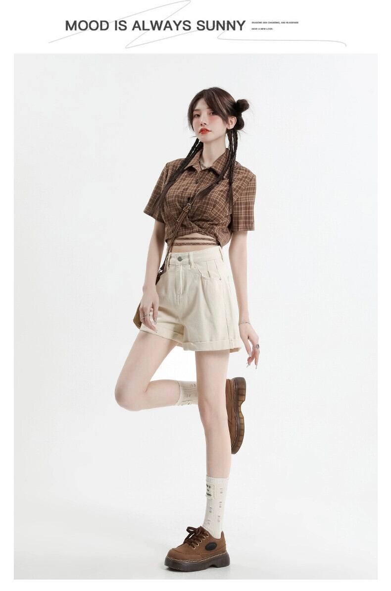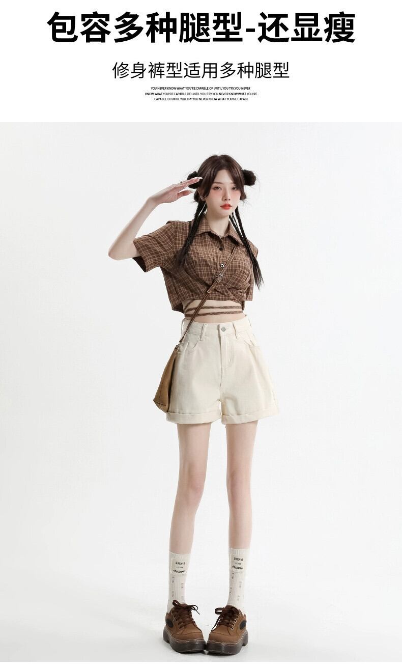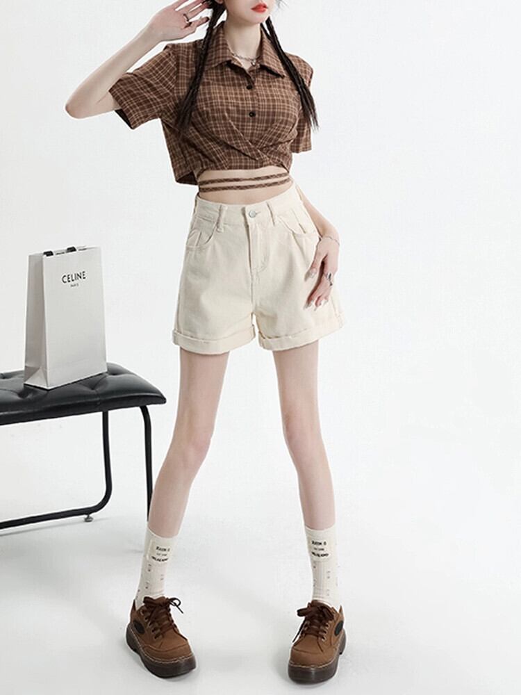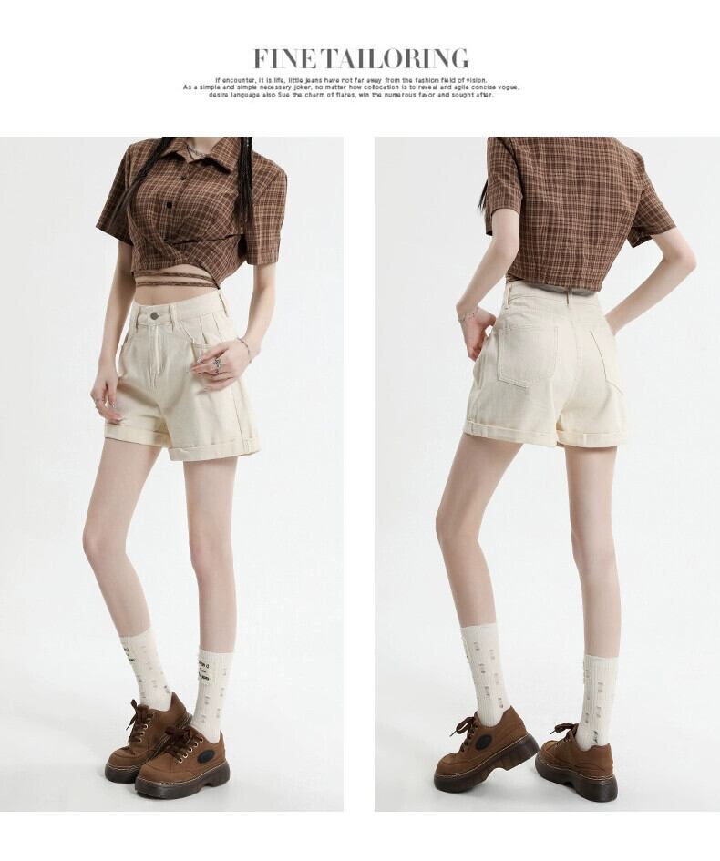 ワイドレッグカーリーデニムショートパンツレディース夏薄いAラインパンツアウタールーズオールマッチ小さなハイウエストパンツ サマー 夏物 ショーツ ブルマー 7460026713205645 | framboise21