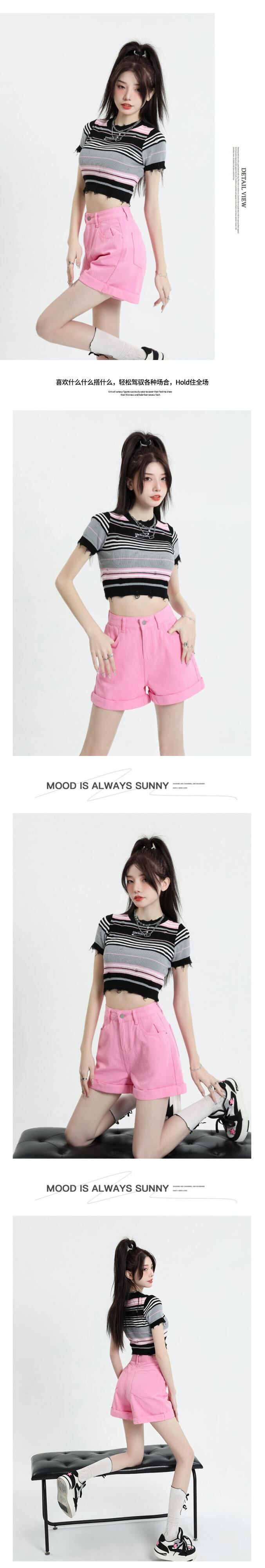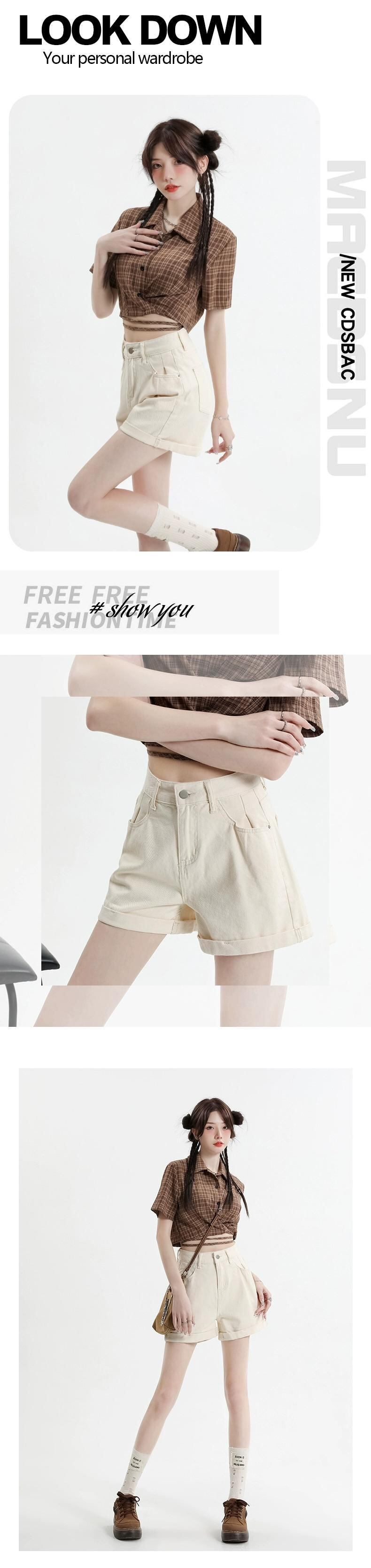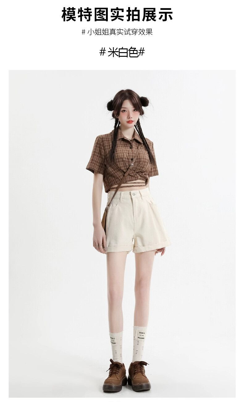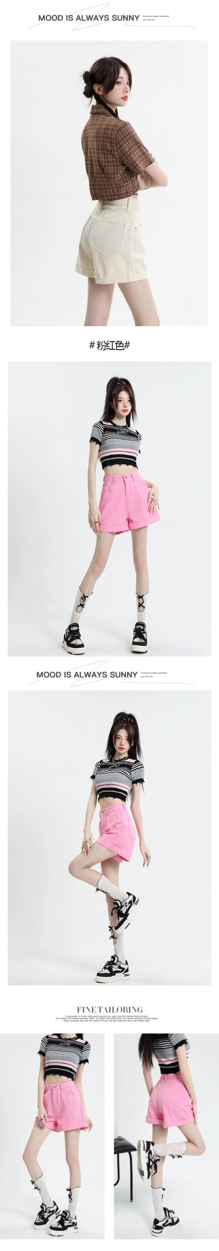 ワイドレッグカーリーデニムショートパンツレディース夏薄いAラインパンツアウタールーズオールマッチ小さなハイウエストパンツ サマー 夏物 ショーツ ブルマー 7460026713205645 | framboise21