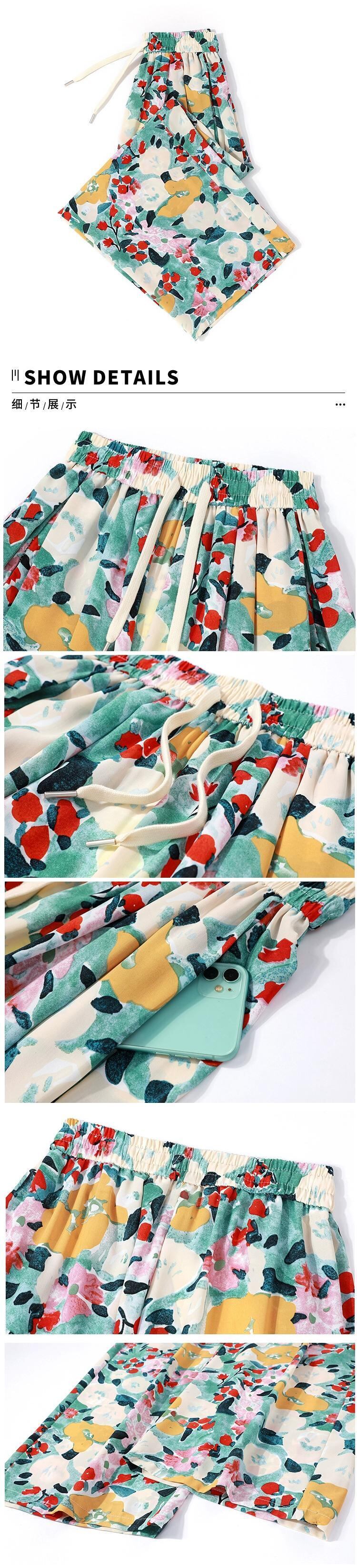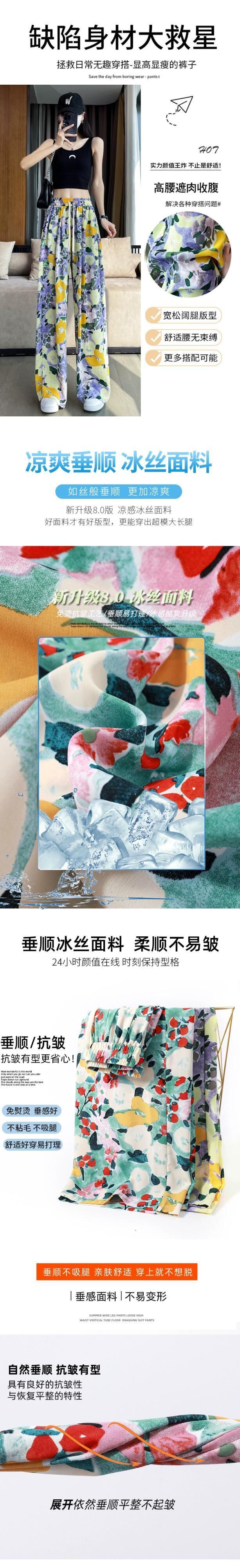 インク染めアイスシルクドレープワイドレッグパンツレディース夏薄部プリントカジュアルパンツスモールストレートハイウエストモップパンツ ハイウェスト サマー 夏物 7460043434198219 | framboise21