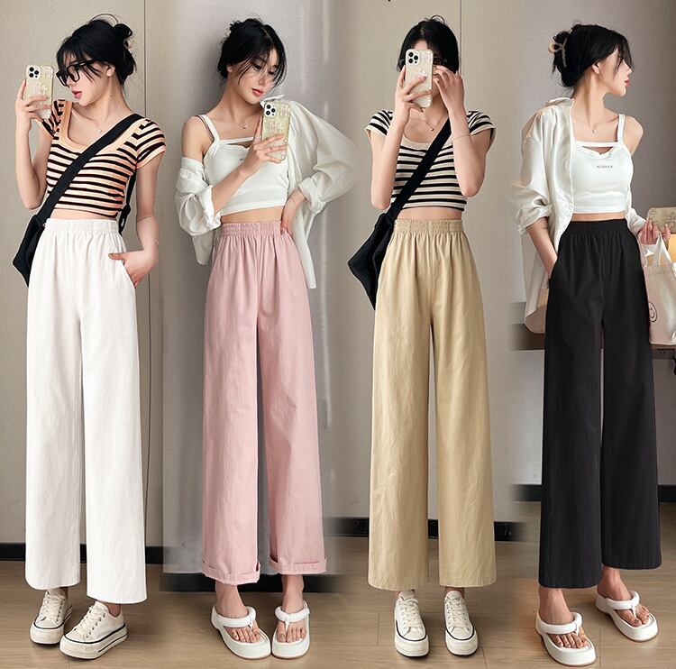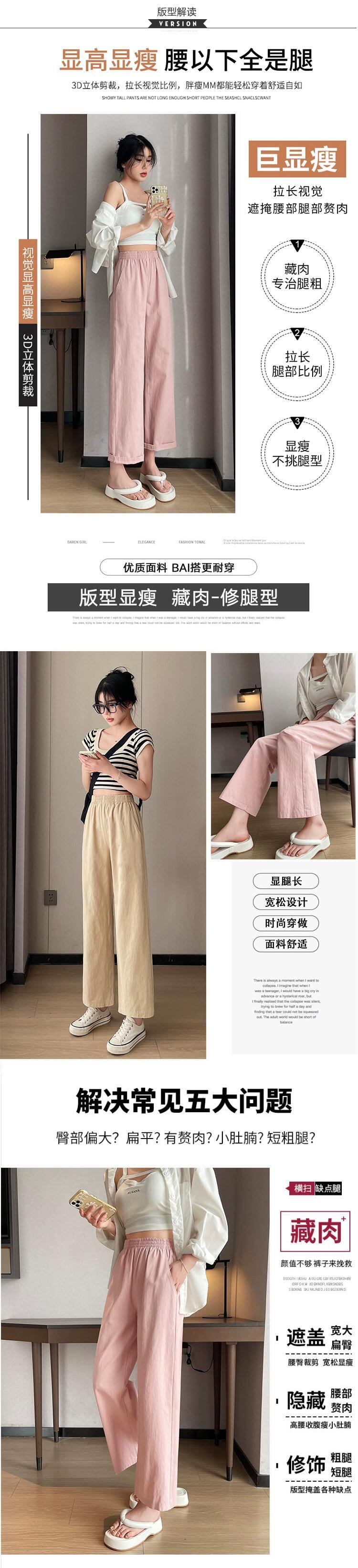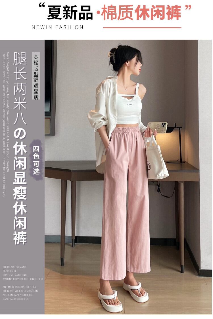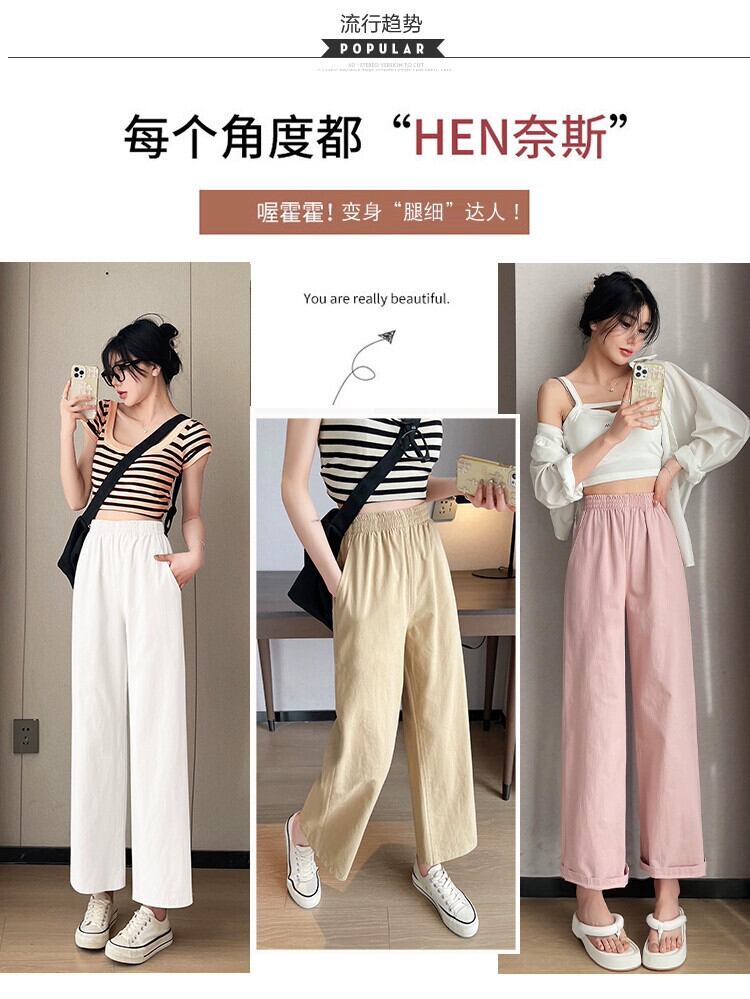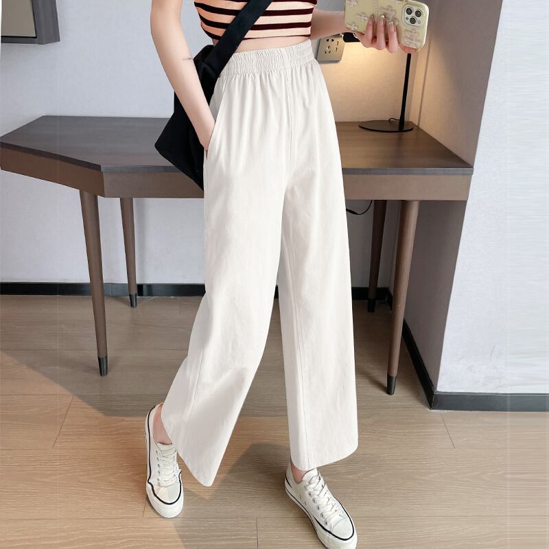 コットンとリネンのワイドレッグパンツ、レディース夏薄セクション9点パンツ、これらの小さな男性、ゆったりとオールマッチの縦長カジュアルパンツ サマー 夏物 7460065512199120 | framboise21