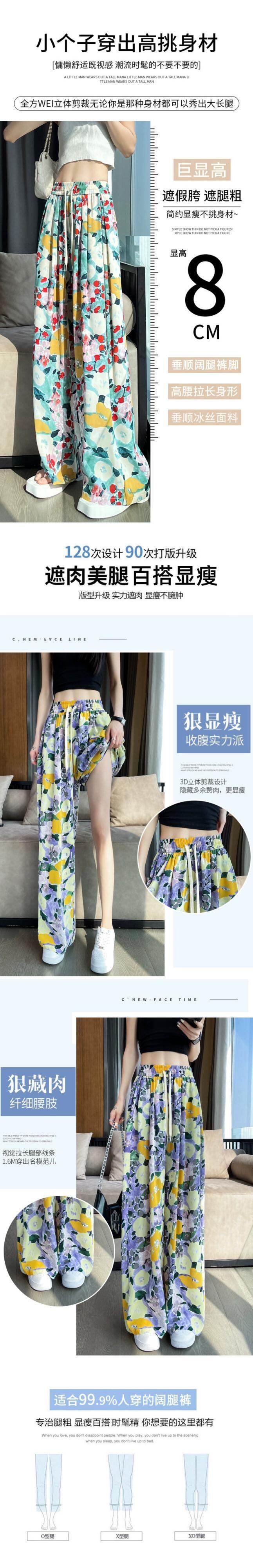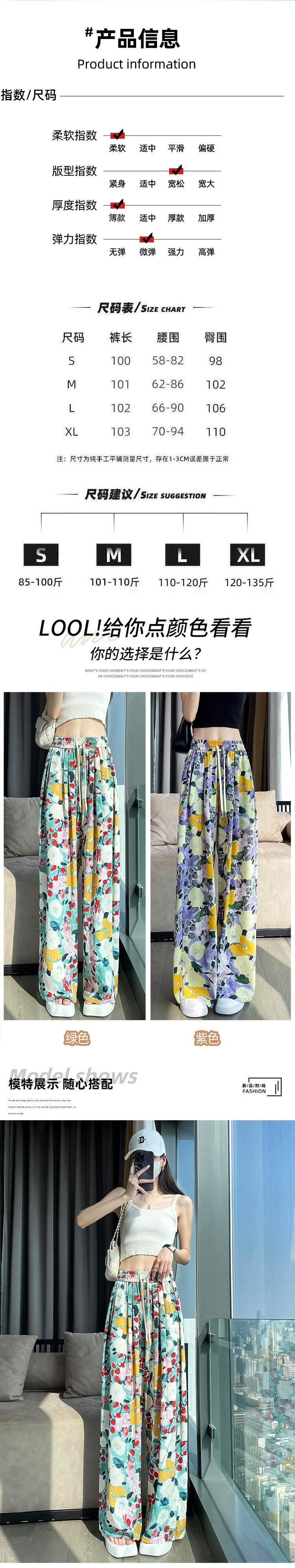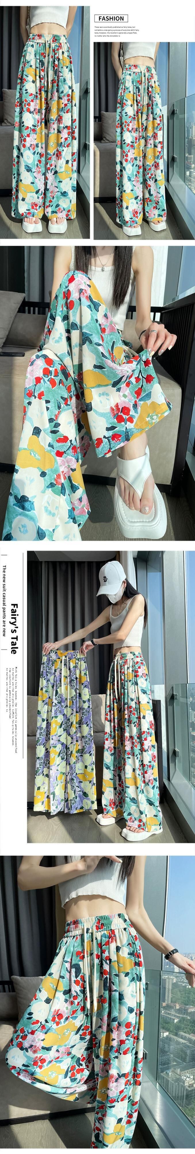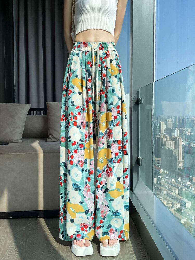 プリントアイスシルクワイドレッグパンツ女性の夏薄いシフォン日焼け止めパンツスリムハイウエストストレートドレープカジュアルレディースパンツ ハイウェスト サマー 夏物 7460024008728228 | framboise21