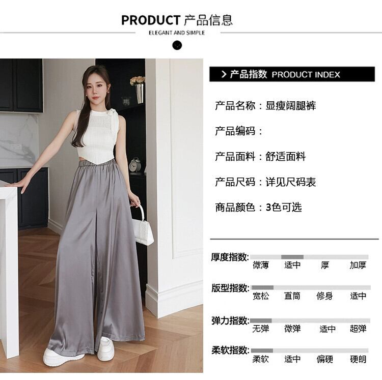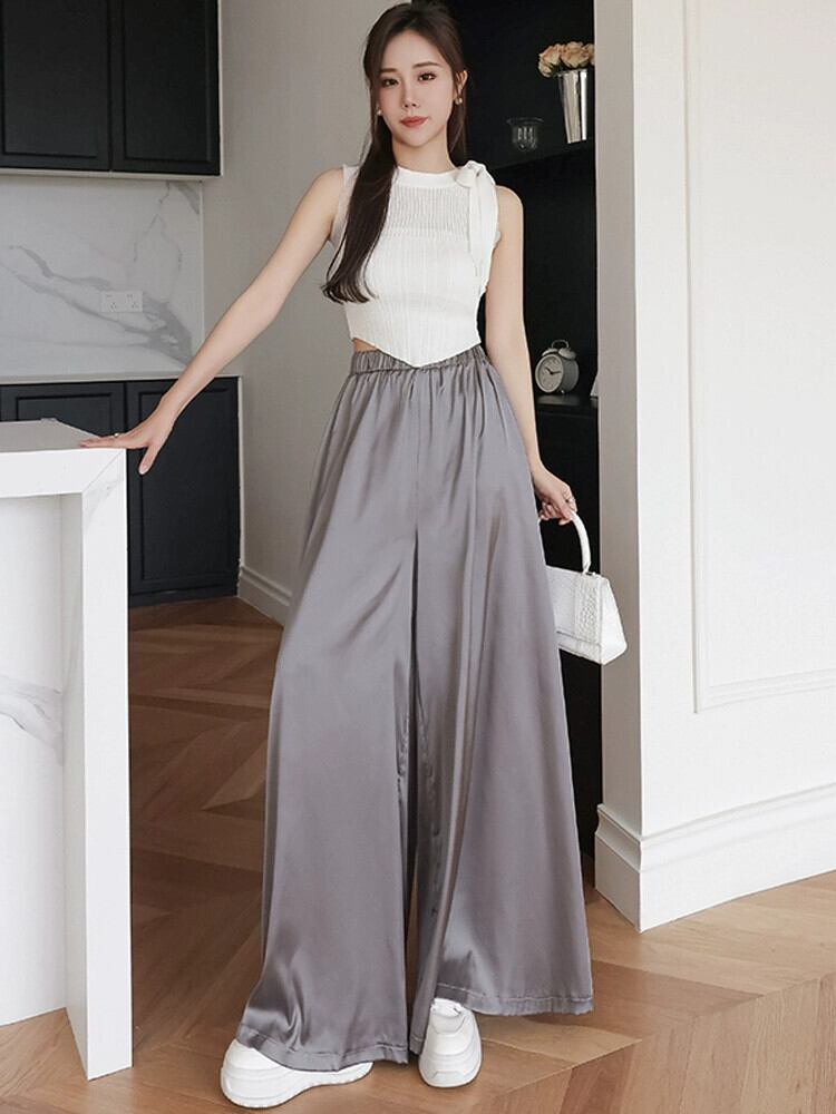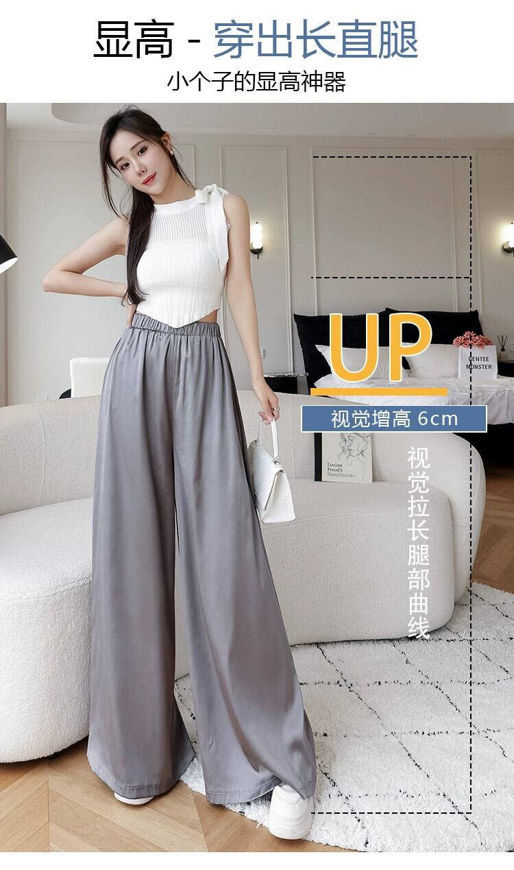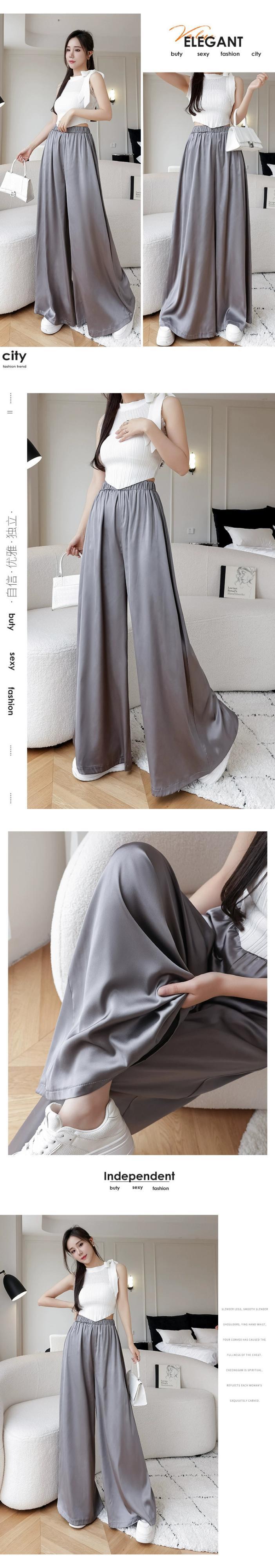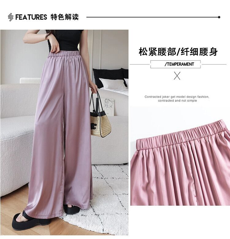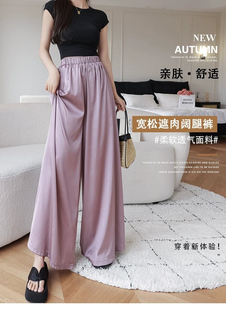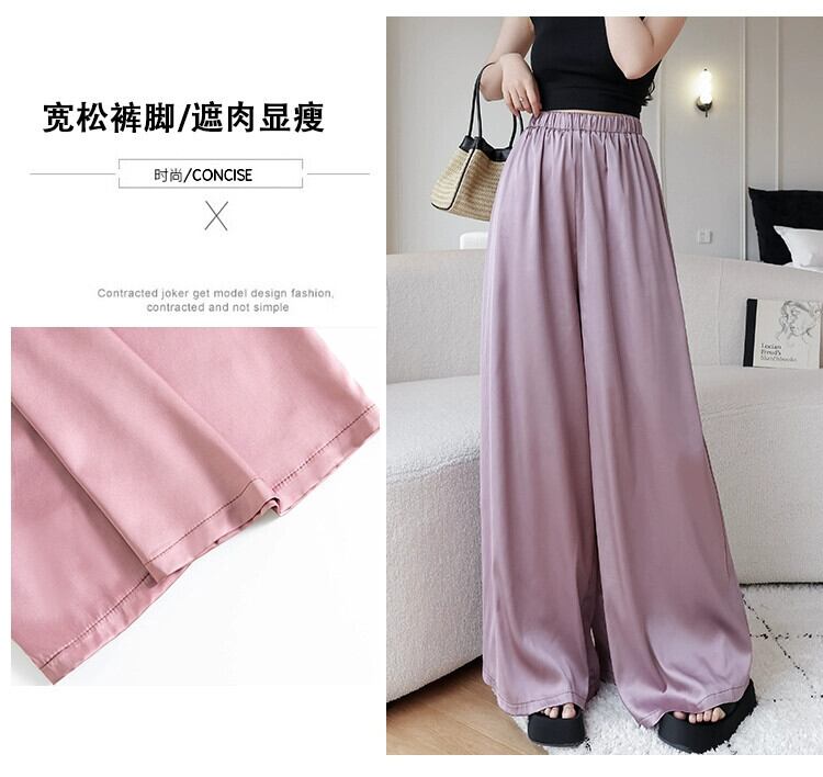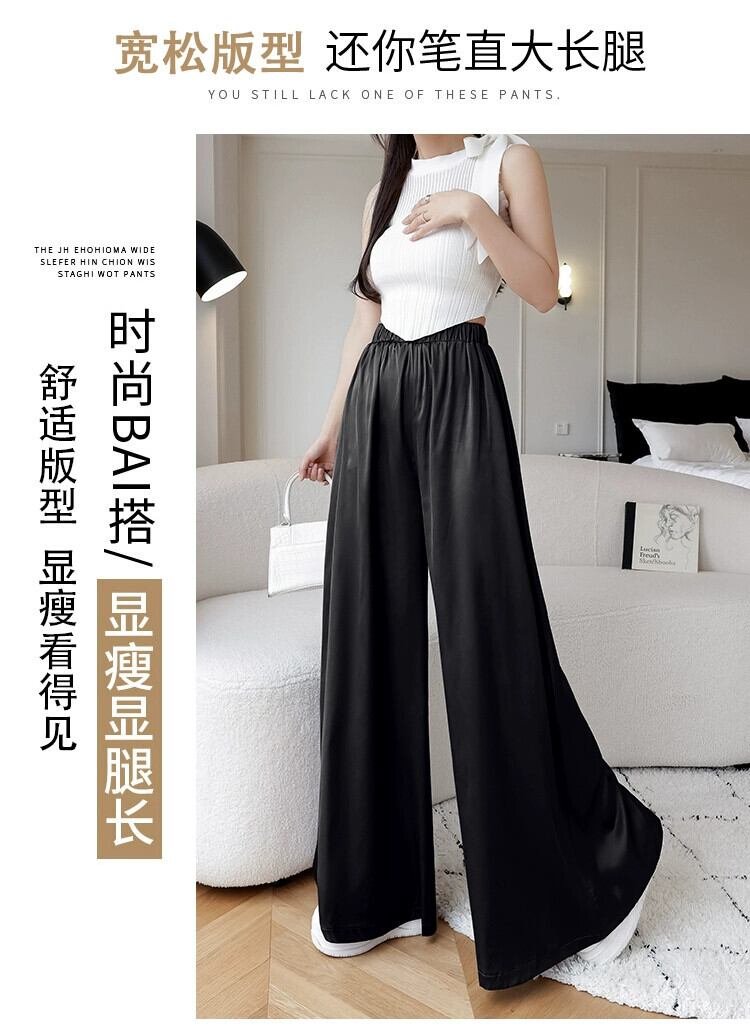 ブラックアイスシルクワイドレッグパンツ女性の夏の薄いセクションドレープモップパンツ小さなルーズカジュアルサテンハイウエストパンツ サマー 夏物 7460018119019978 | framboise21