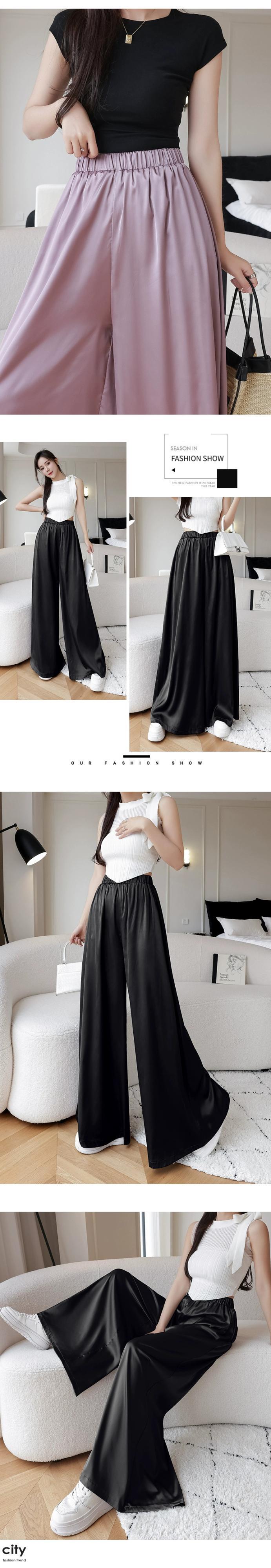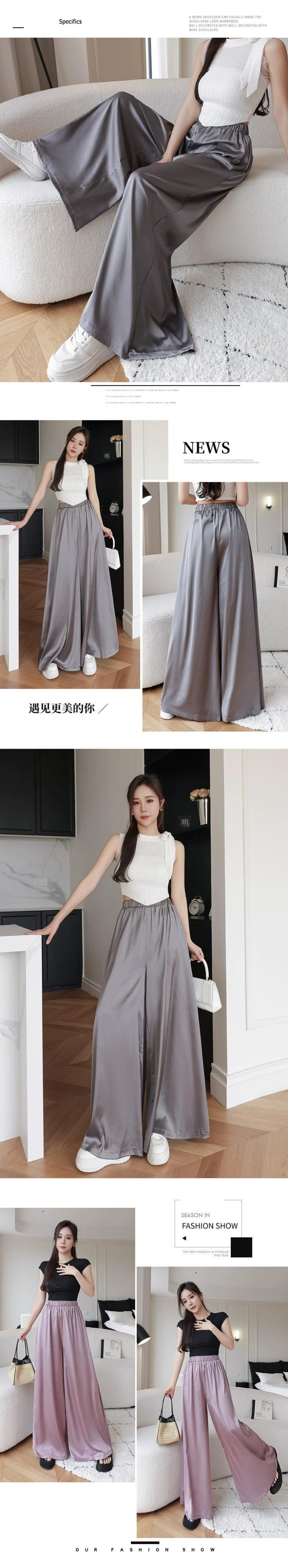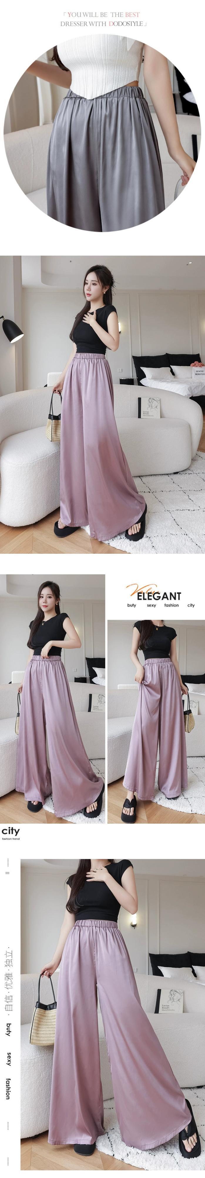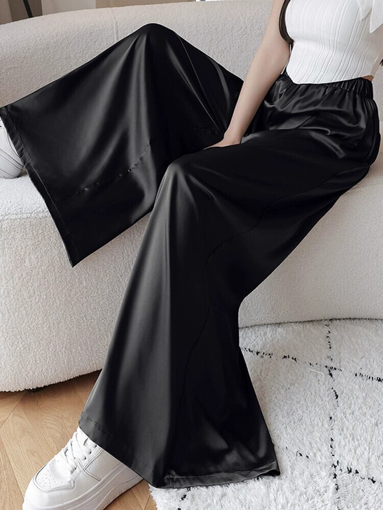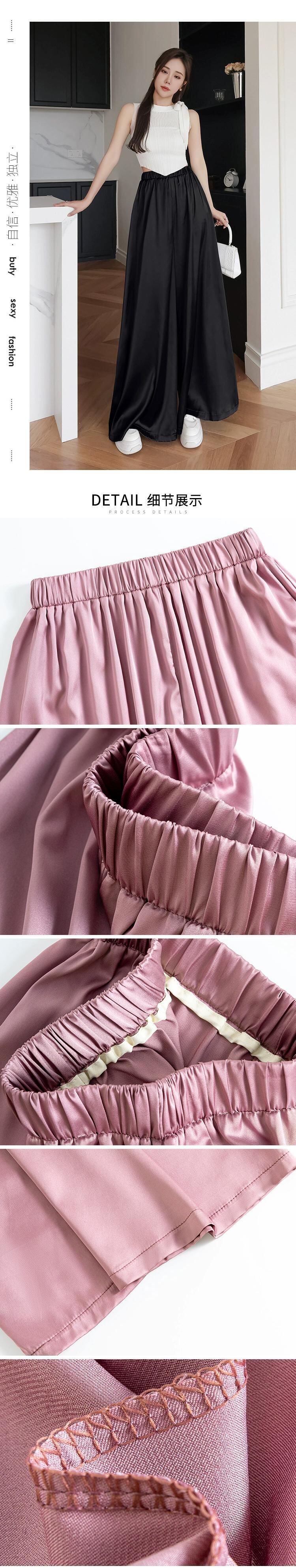 ブラックアイスシルクワイドレッグパンツ女性の夏の薄いセクションドレープモップパンツ小さなルーズカジュアルサテンハイウエストパンツ サマー 夏物 7460018119019978 | framboise21