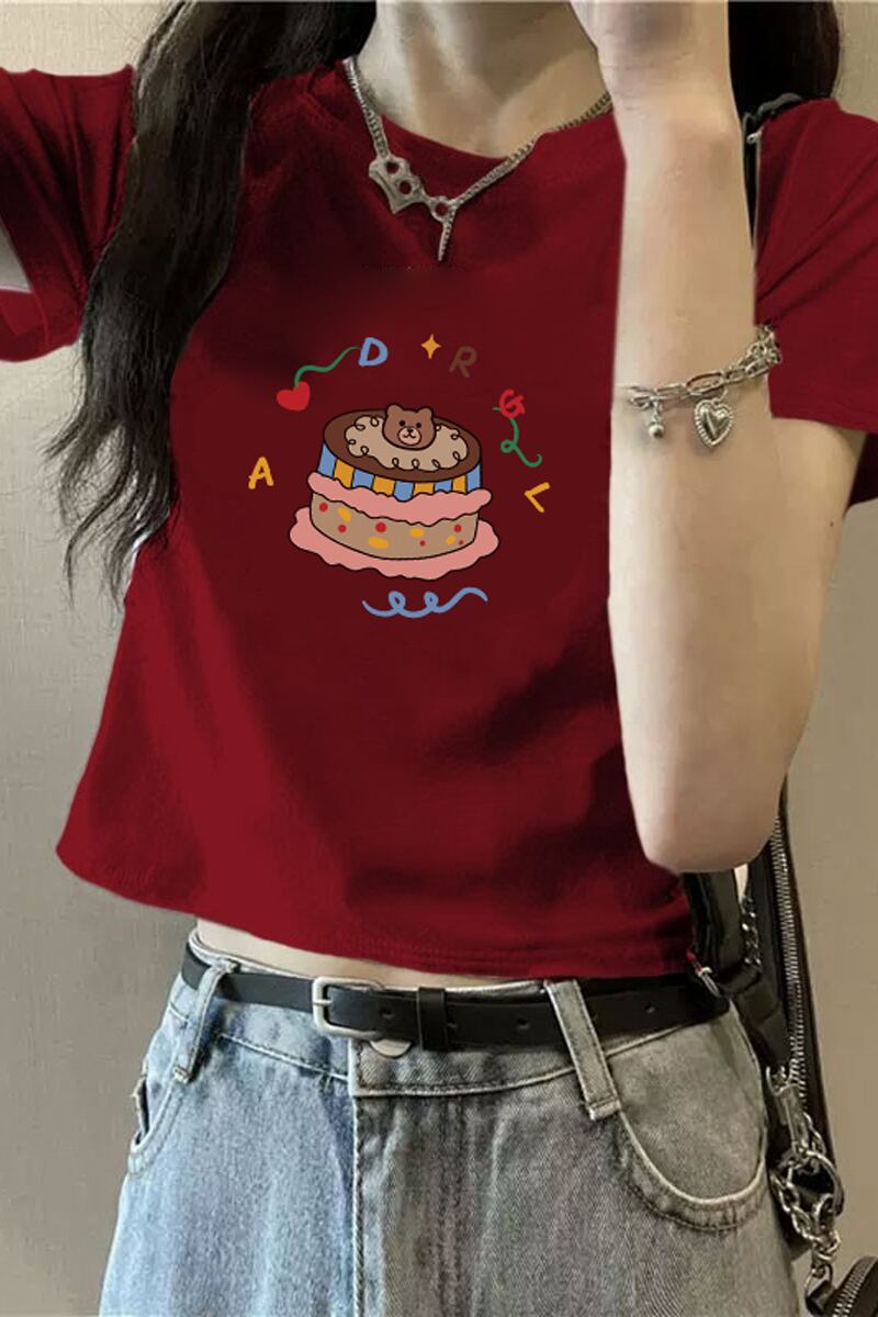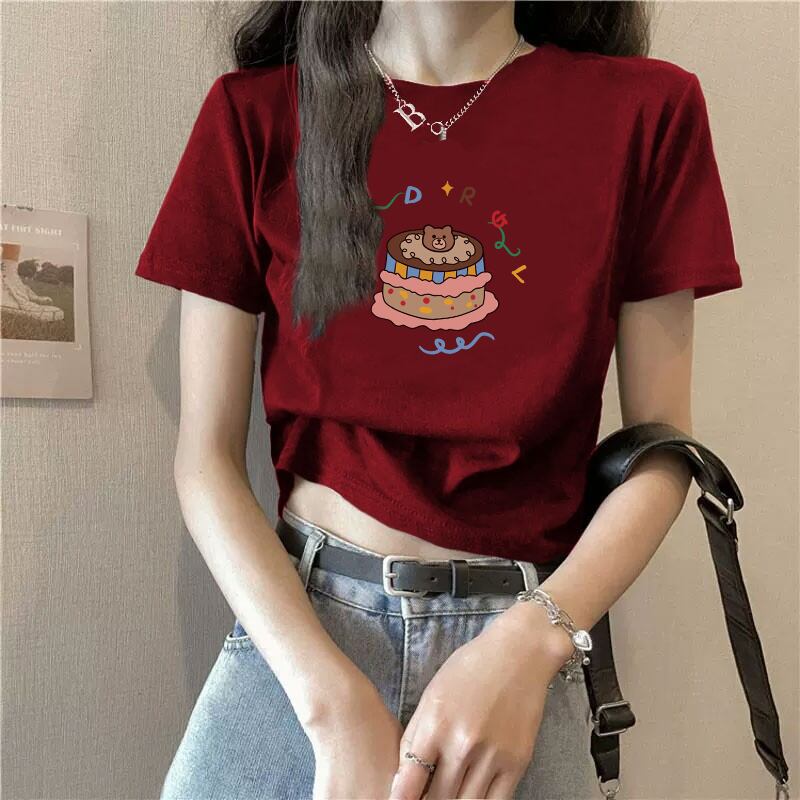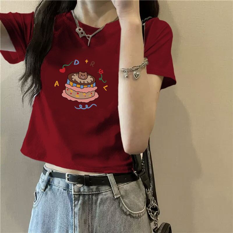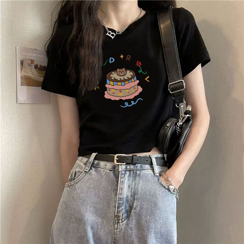 ポジティブショルダー ラウンドネック 半袖 Tシャツ レディース 夏 ファッション トレンド デザイン センス ニッチ スリム スリム ショート プリント トップス サマー 夏物 Oネック 7460011025550999 | framboise21