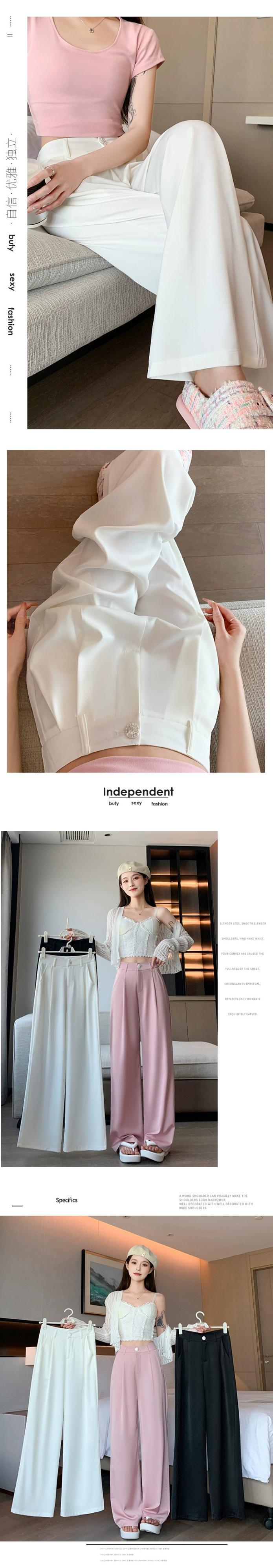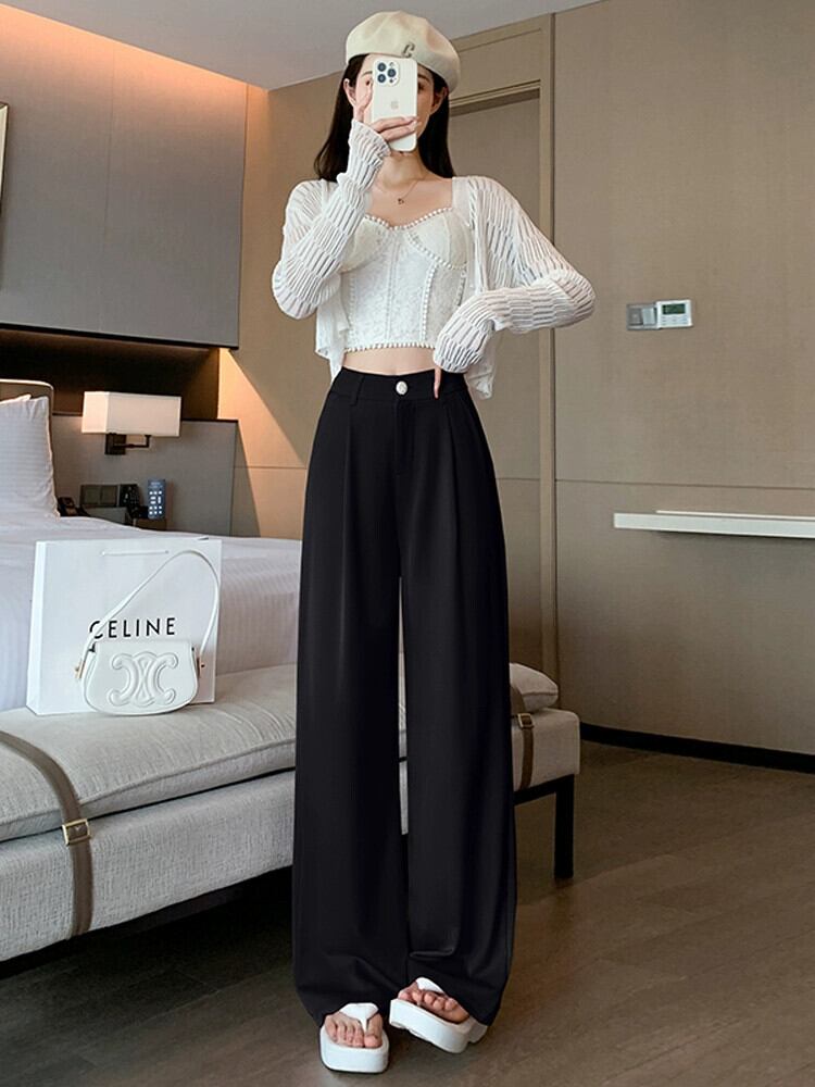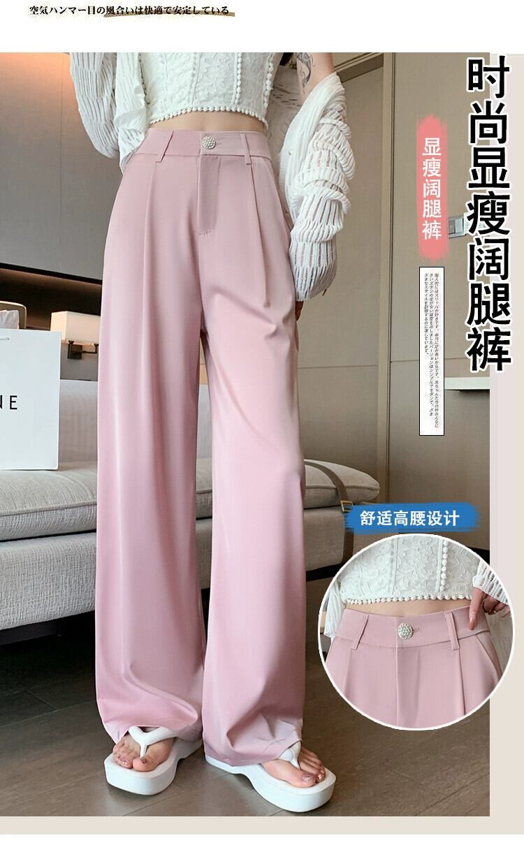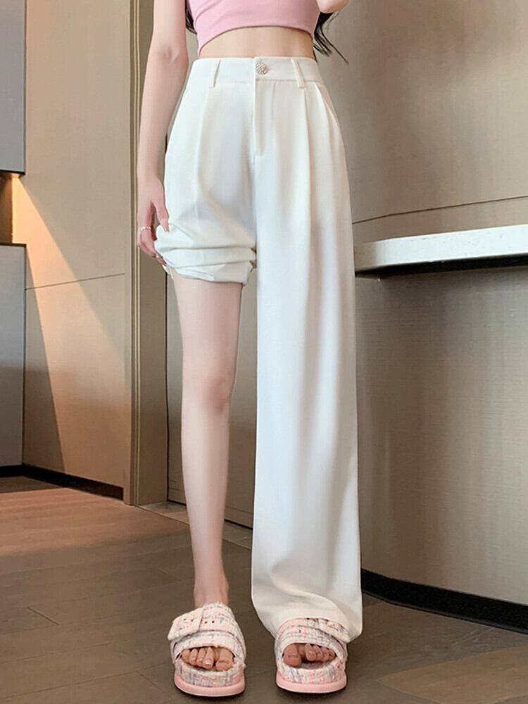 ホワイトハイウエストスーツパンツレディース夏ハイエンド感覚薄セクションアイスシルクワイドレッグパンツルーズストレートチューブドレープカジュアルパンツ サマー 夏物 7460032983879996 | framboise21