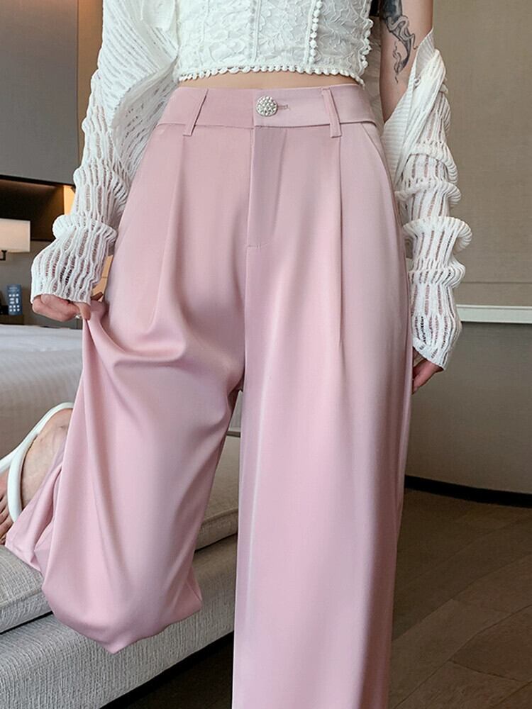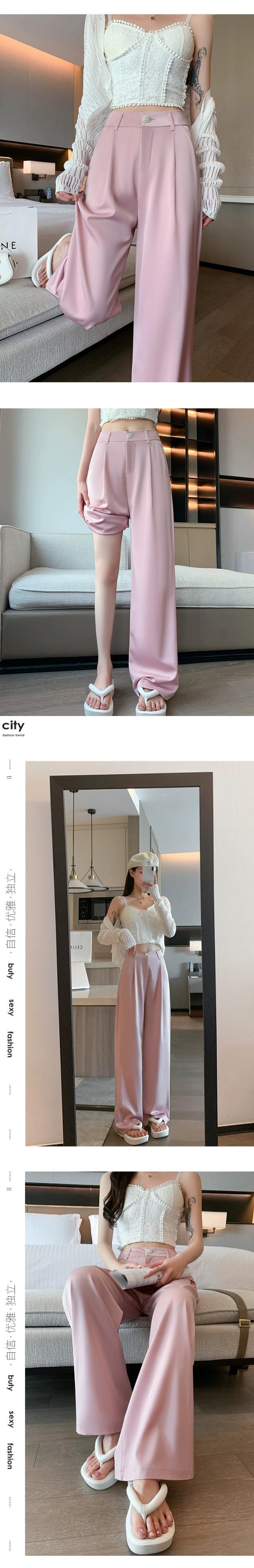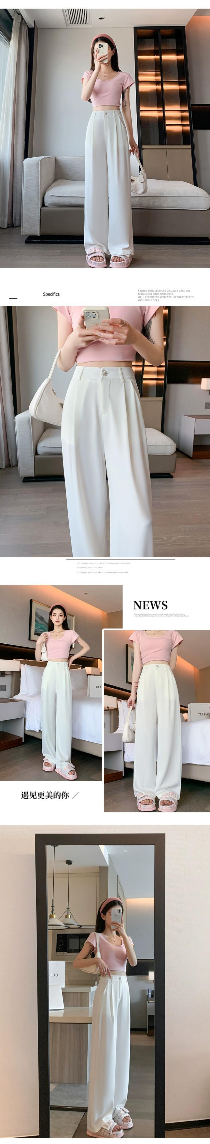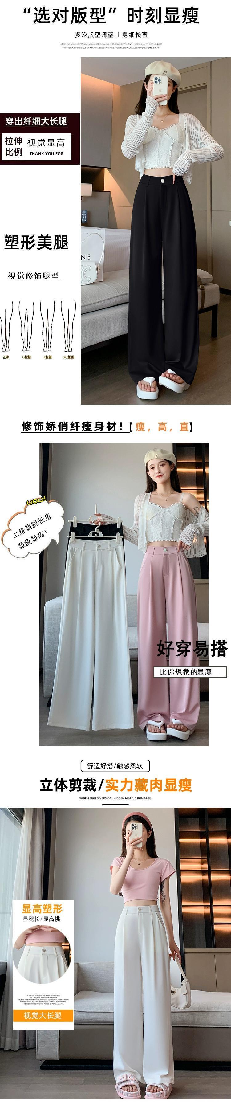 ホワイトハイウエストスーツパンツレディース夏ハイエンド感覚薄セクションアイスシルクワイドレッグパンツルーズストレートチューブドレープカジュアルパンツ サマー 夏物 7460032983879996 | framboise21