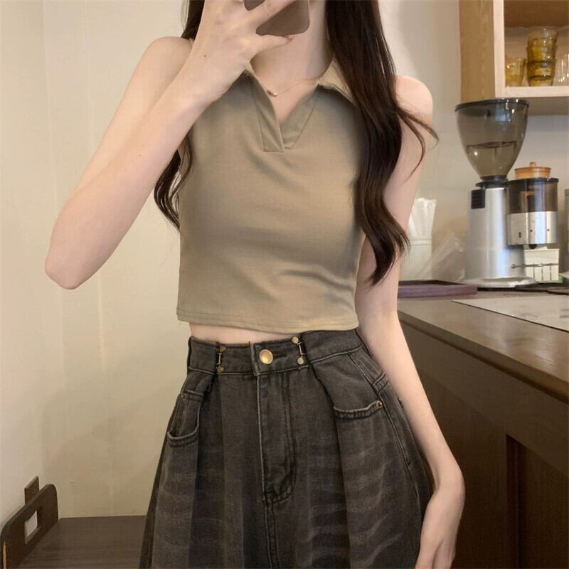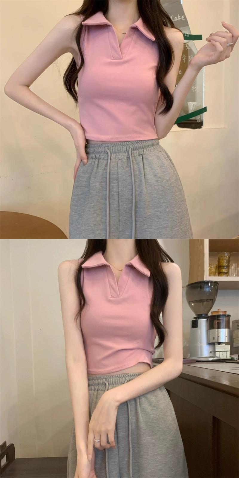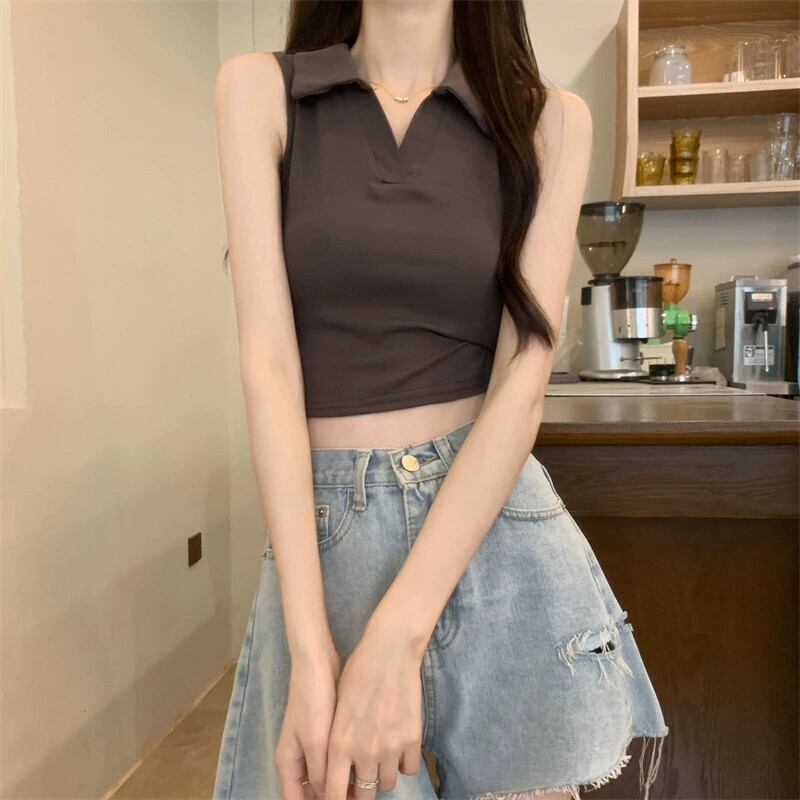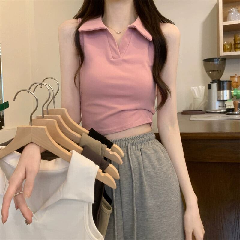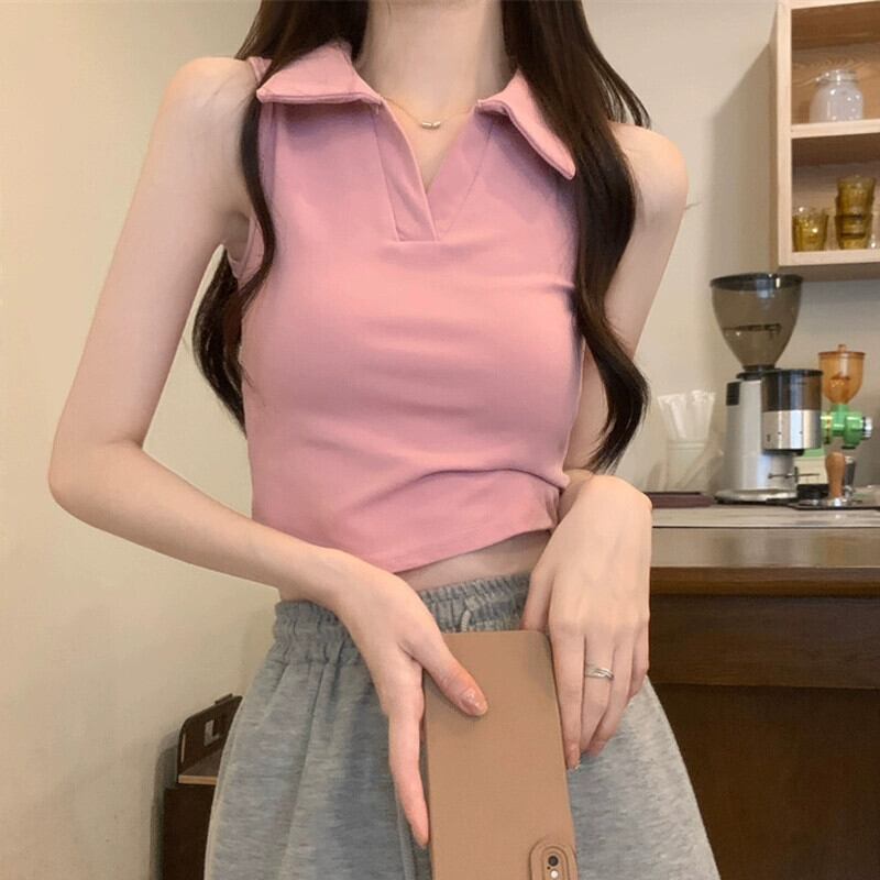 ショートポロカラーベストサスペンダー女性の夏ネットレッドスタイルファッション内側構築スリム甘くてスパイシーな外側着用ノースリーブトップ 大人ガーリー スウィート キュート カジュアル サマー 夏物 746006426498189 | framboise21