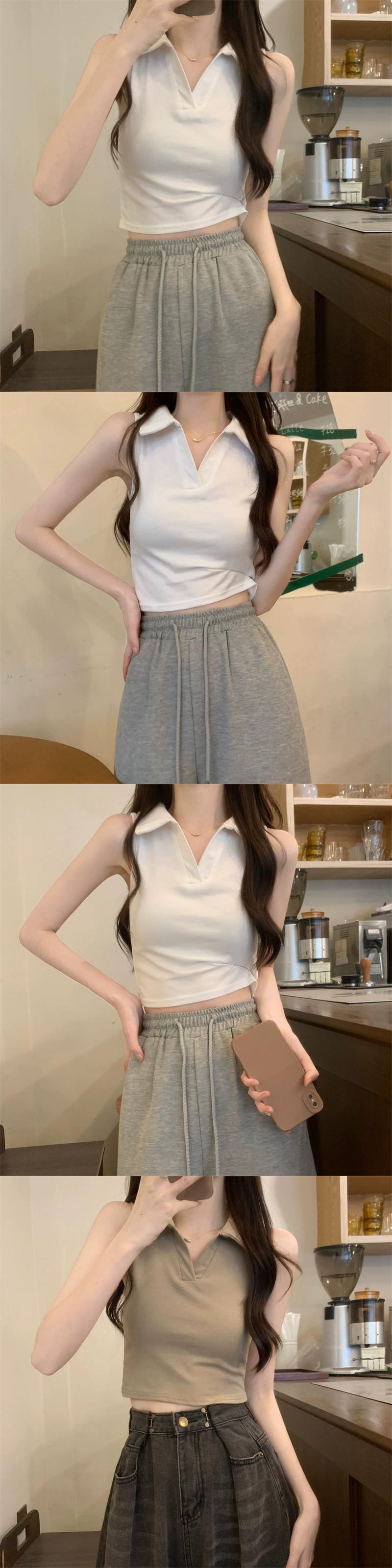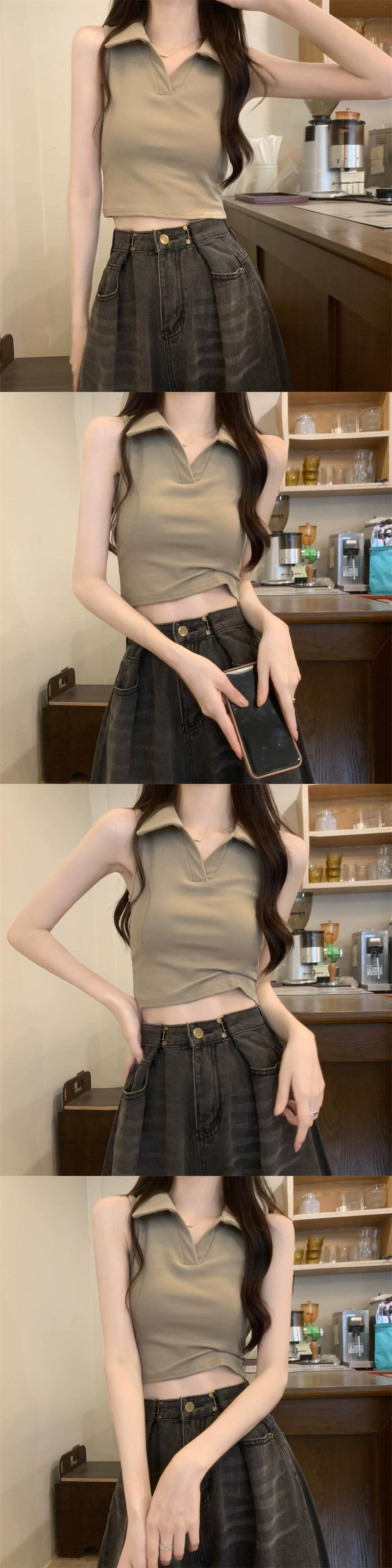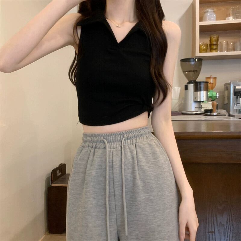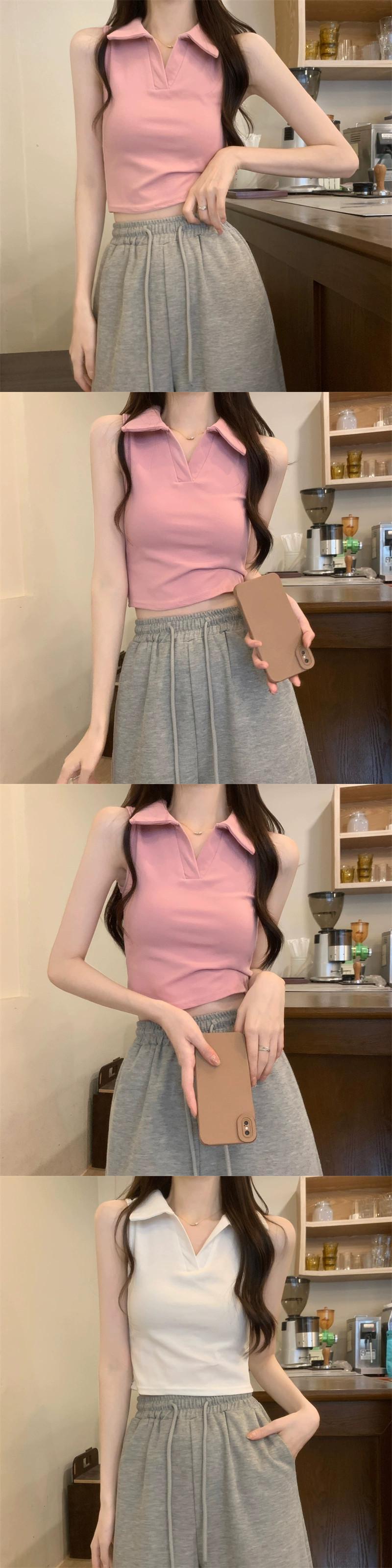 ショートポロカラーベストサスペンダー女性の夏ネットレッドスタイルファッション内側構築スリム甘くてスパイシーな外側着用ノースリーブトップ 大人ガーリー スウィート キュート カジュアル サマー 夏物 746006426498189 | framboise21