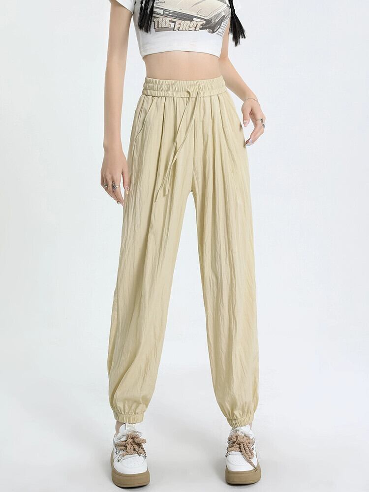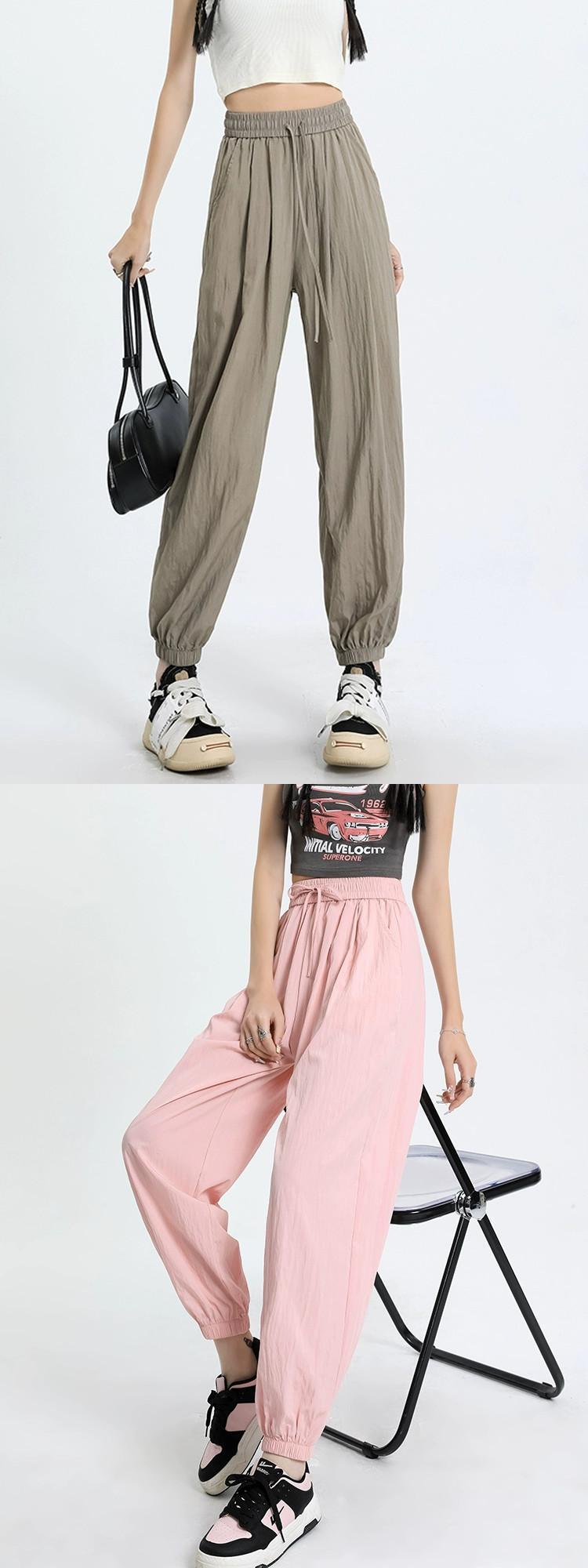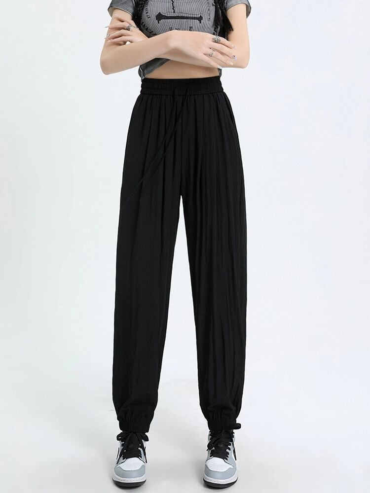折りたたみアイスシルクスポーツパンツ女性の夏の薄いセクションハーレム大根パンツ小さな背の高いウエストカジュアル 9 点ズボン サマー 夏物 7460028719630759 | framboise21