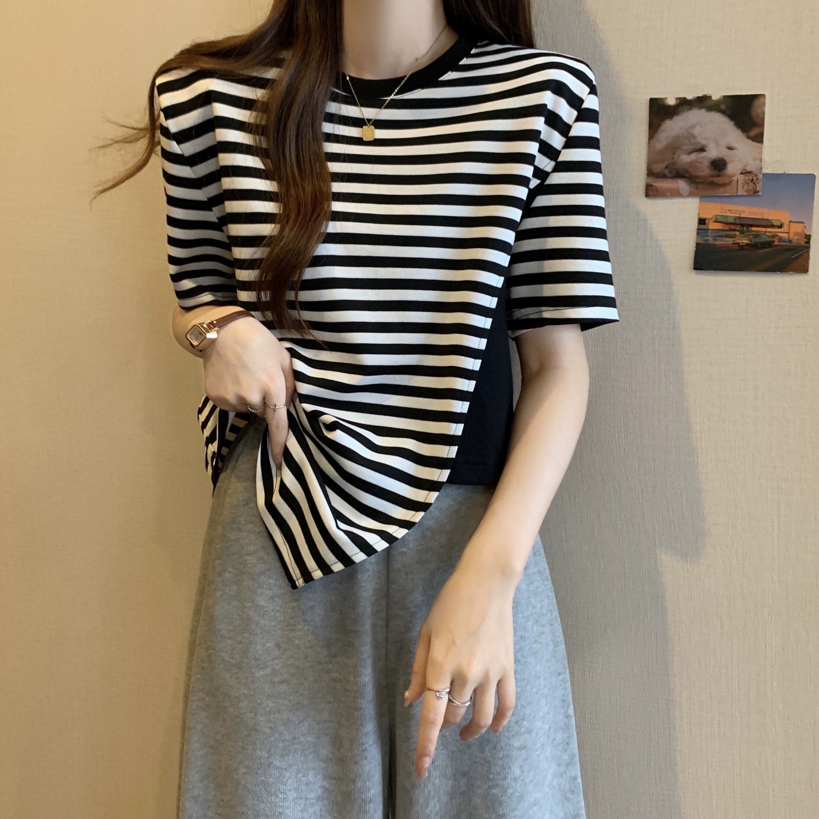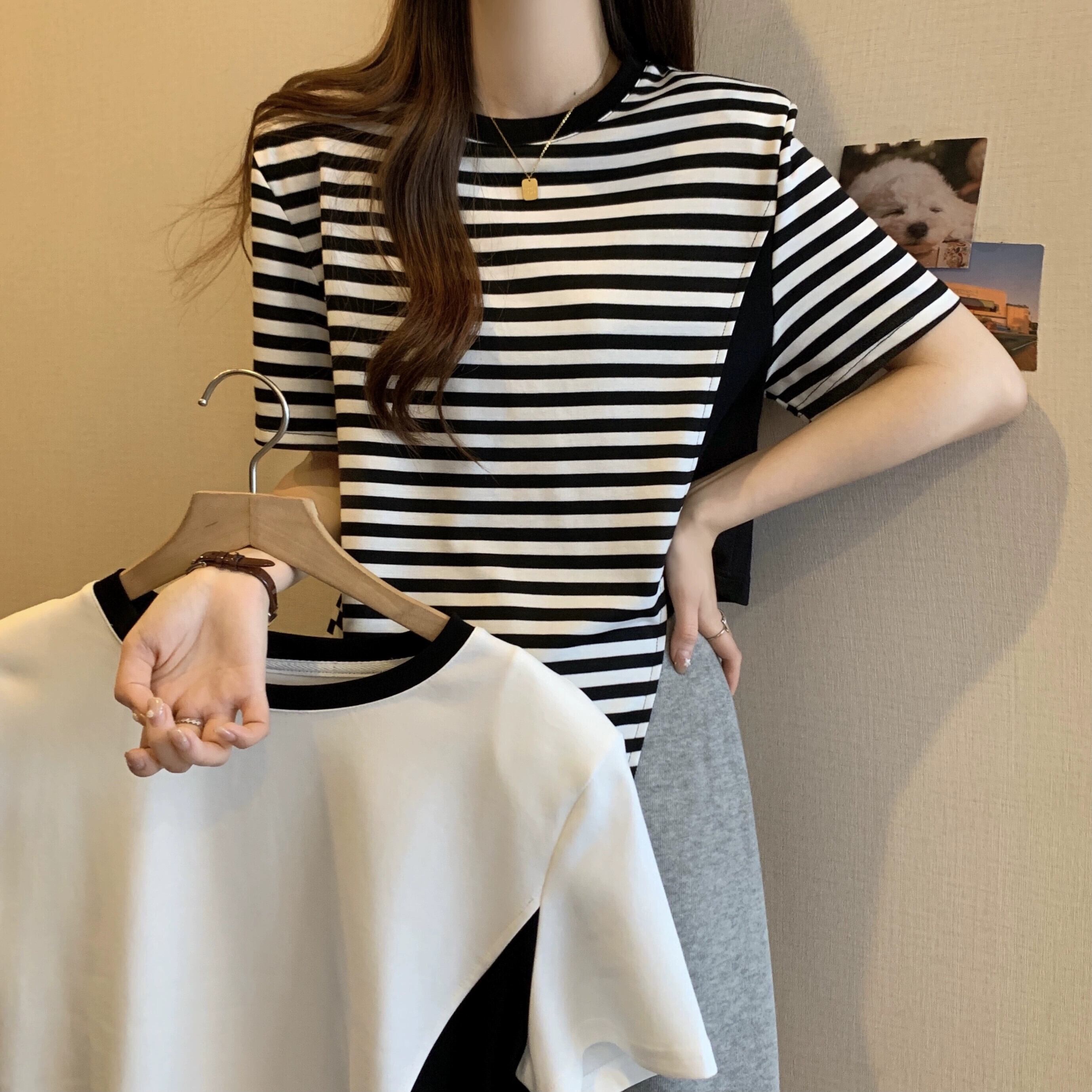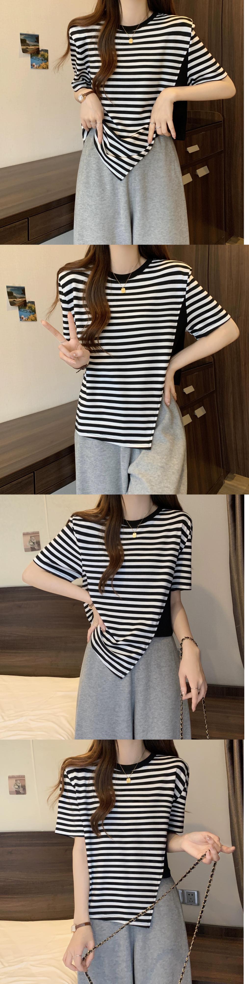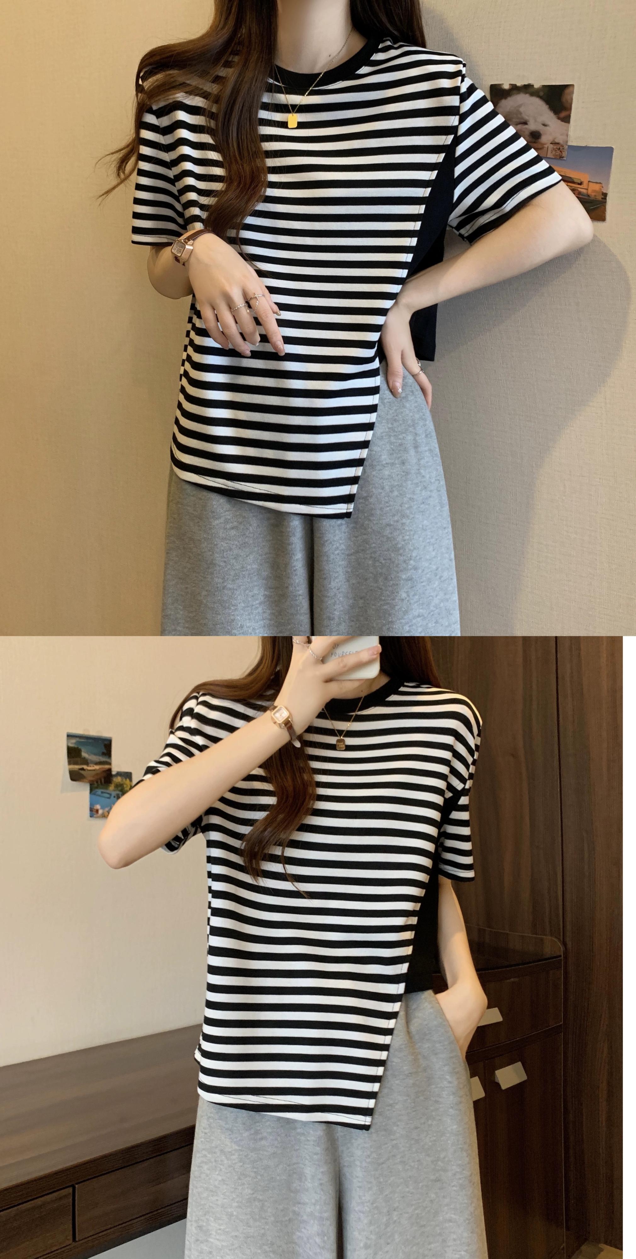 カラーブロッキング ラウンドネック 半袖 Tシャツ レディース 夏 アイン スタイル デザイン センス ニッチ ルーズ オールマッチ 不規則 フロント ショルダー トップス ホワイト サマー 夏物 Oネック 7460048882276608 | framboise21