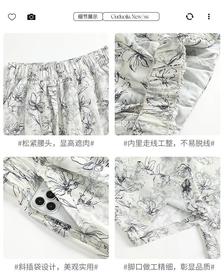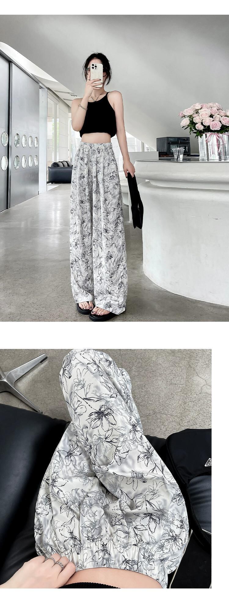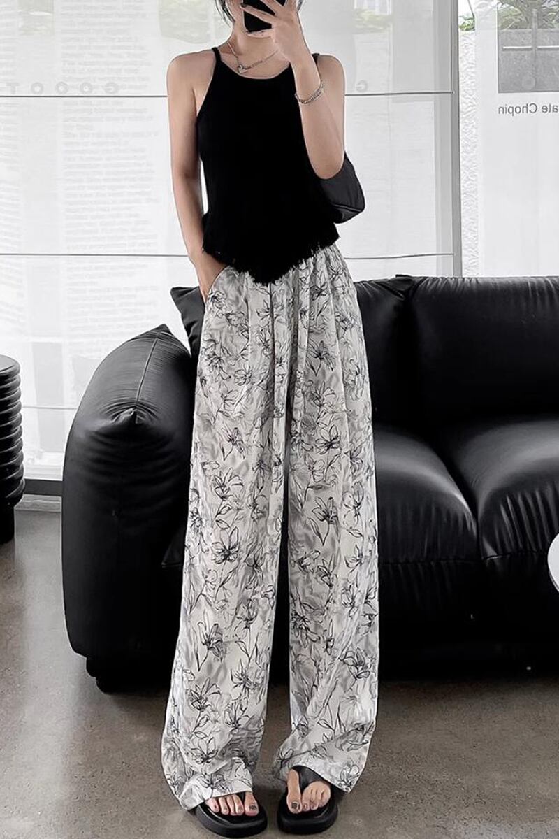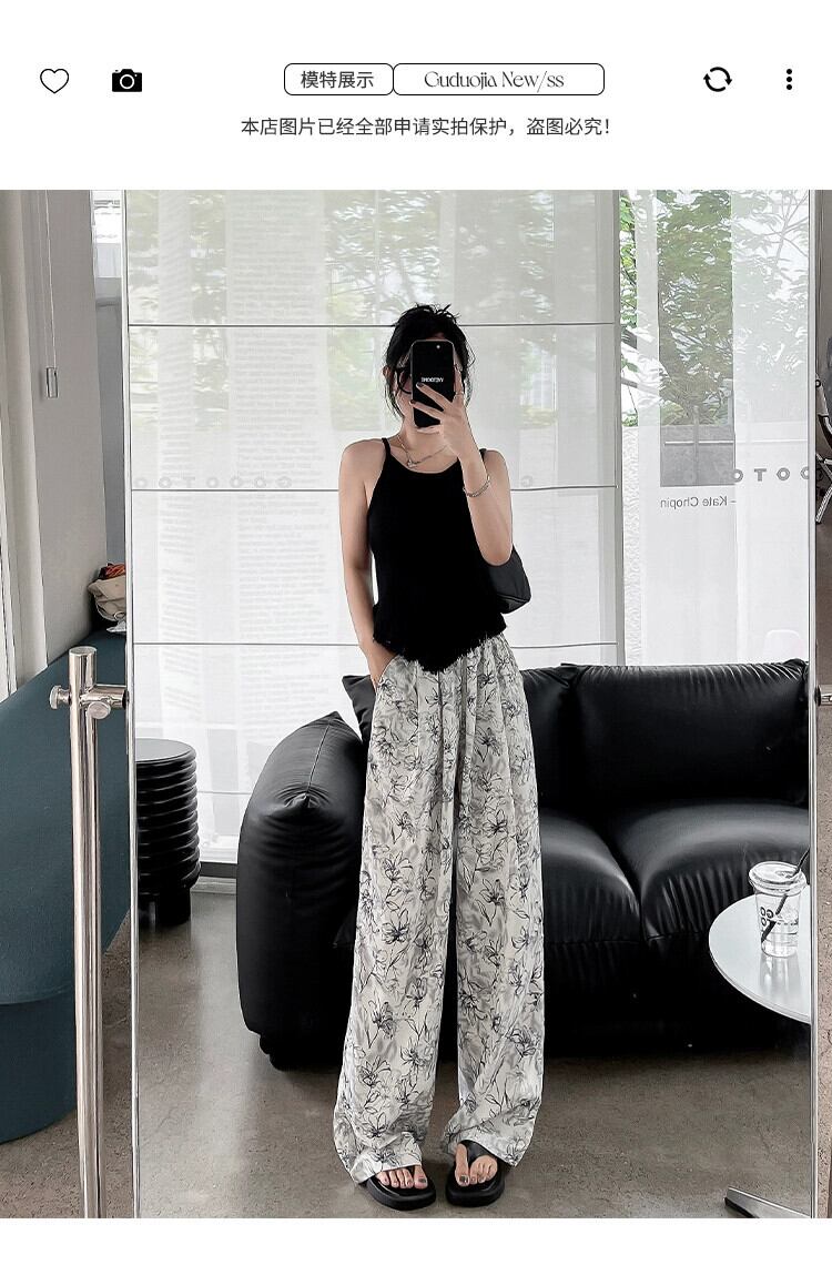 インク汚れ染めアイスシルクワイドレッグパンツレディース夏薄い国民風シフォンタイダイパンツストレートハイウエストドレープカジュアルパンツ ハイウェスト サマー 夏物 746002244523259 | framboise21