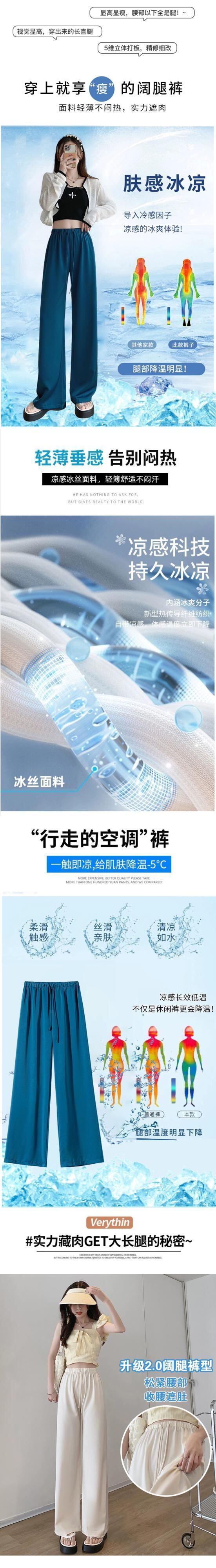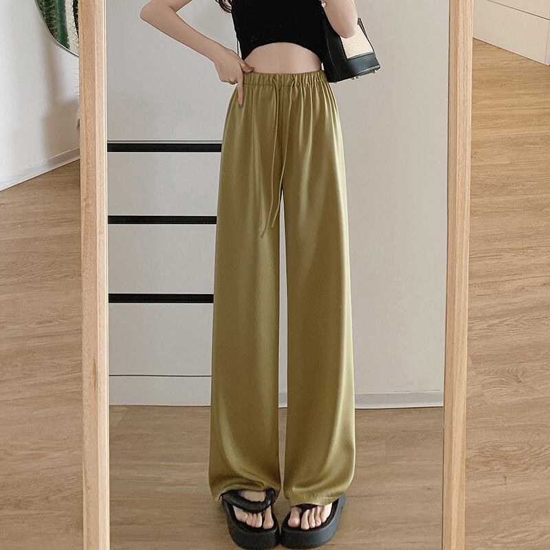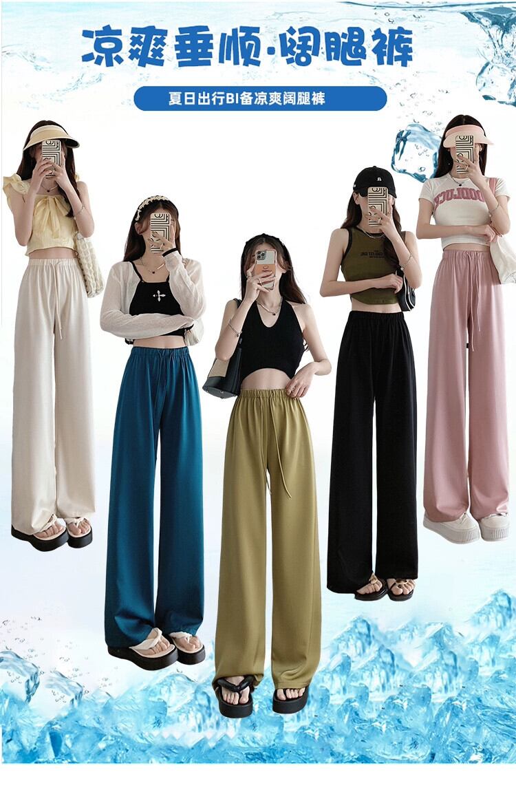 アイスシルクドレープワイドレッグパンツレディース夏薄部クール日焼け止めパンツルーズスリムカジュアルストレートハイウエストパンツトレンディ サマー 夏物 7460027307714325 | framboise21