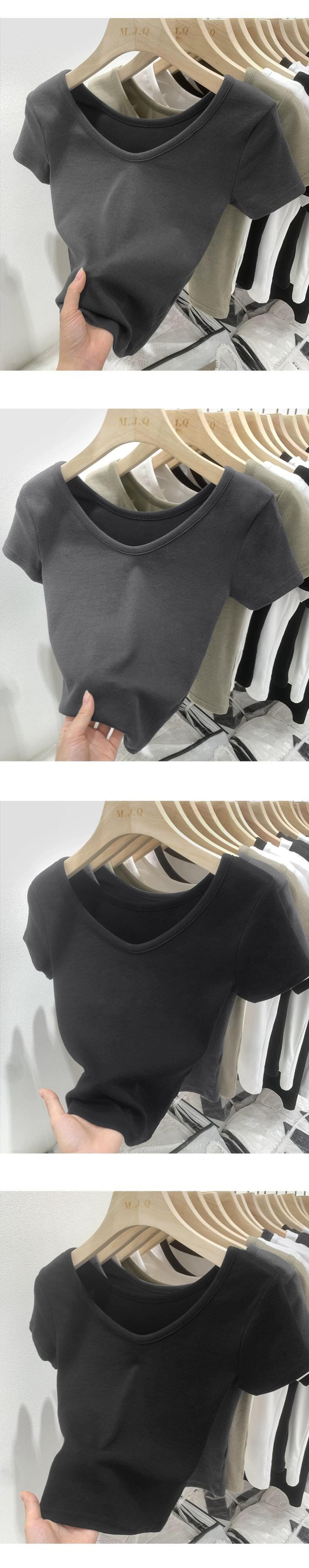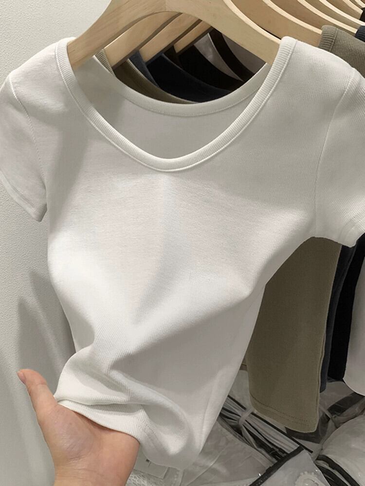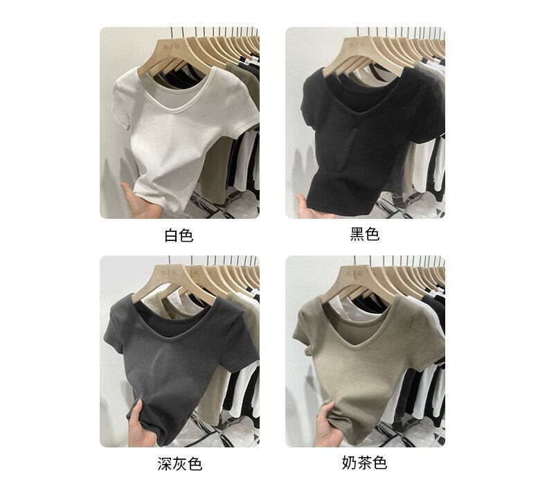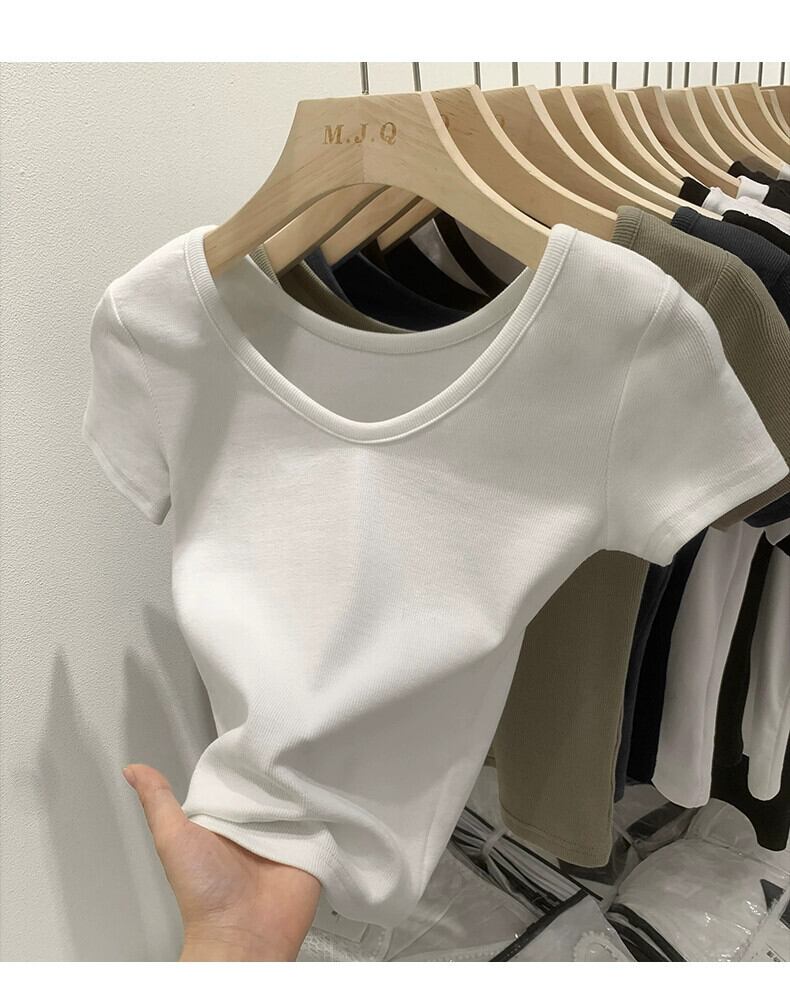 フロントショルダー半袖Tシャツレディース夏レトロスリムフィットオールマッチ甘辛小男ショート鎖骨Vネックトップ 大人ガーリー スウィート キュート カジュアル サマー 夏物 7460073115204095 | framboise21