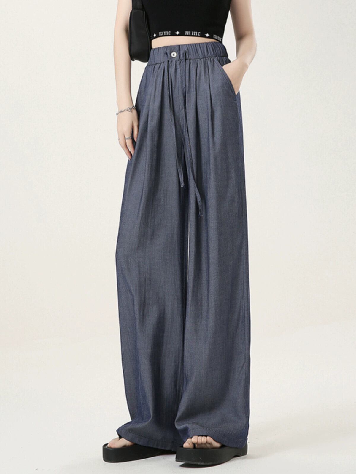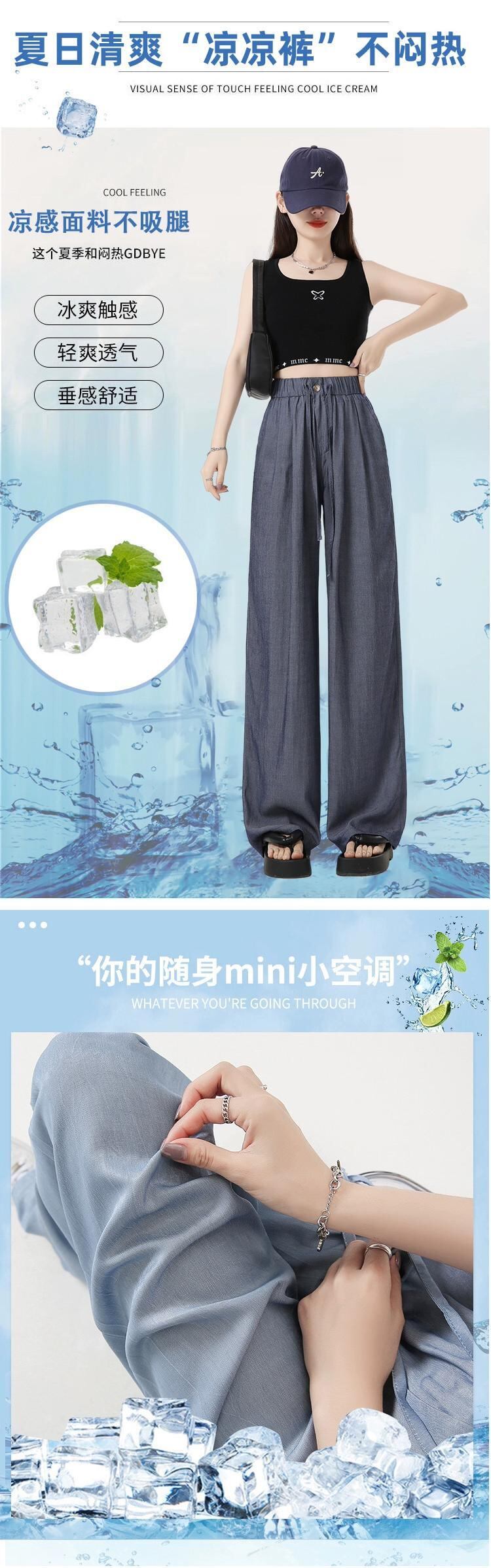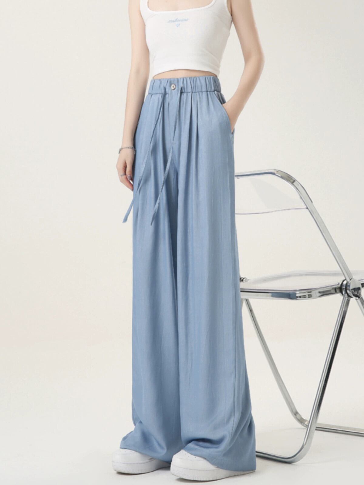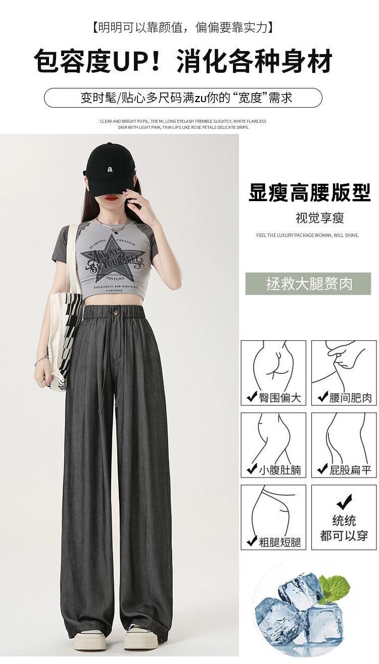 テンセルワイドレッグジーンズ女性の夏の薄いセクション2023新しいルーズで薄いストレートチューブハイウエストドレープアイスシルクパンツ ハイウェスト サマー 夏物 746009210530345 | framboise21