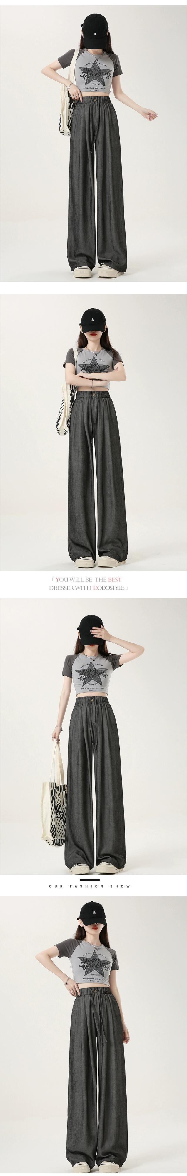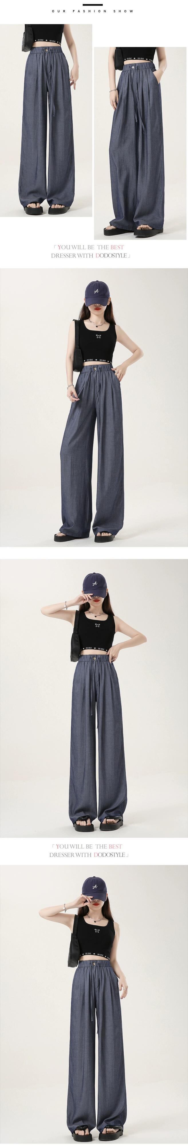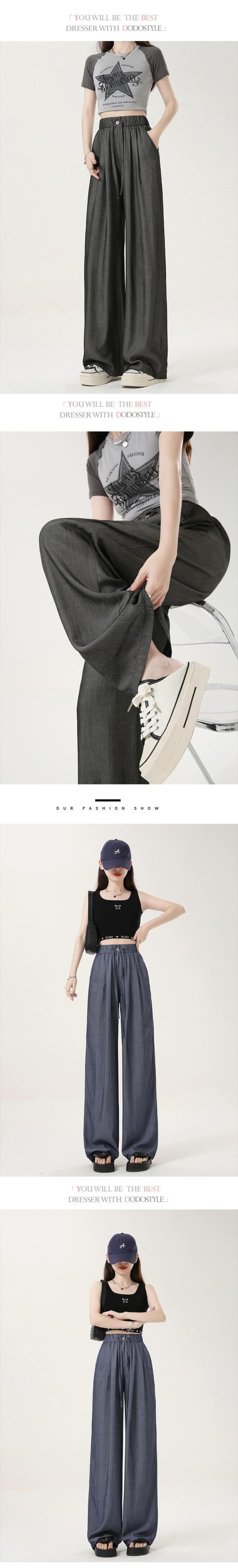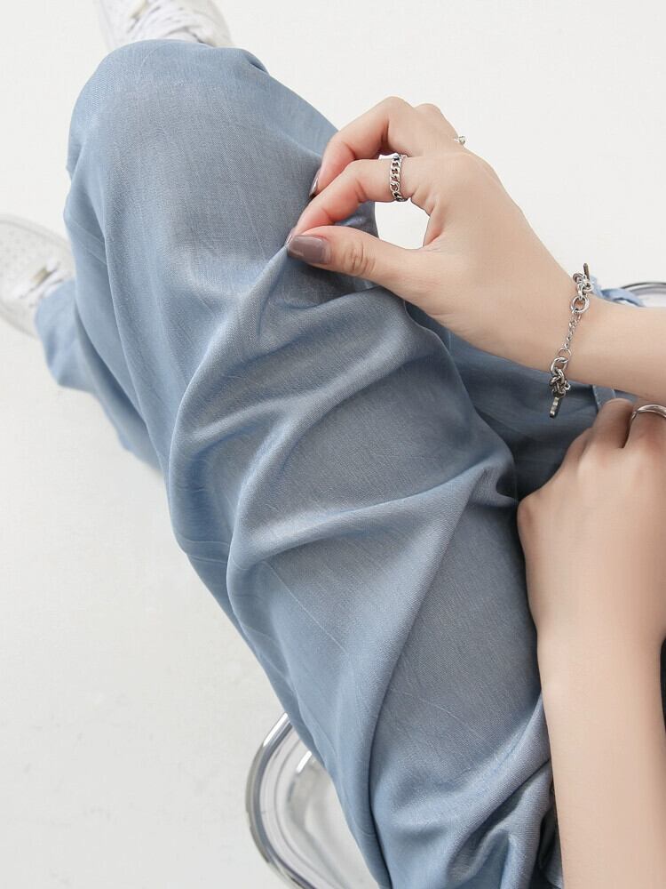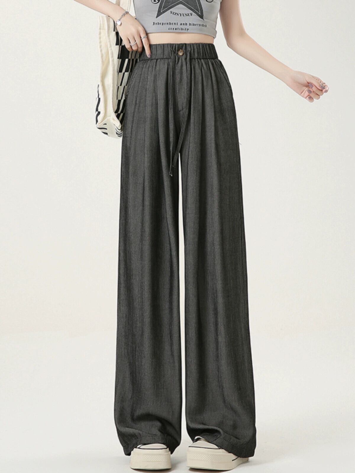 テンセルワイドレッグジーンズ女性の夏の薄いセクション2023新しいルーズで薄いストレートチューブハイウエストドレープアイスシルクパンツ ハイウェスト サマー 夏物 746009210530345 | framboise21