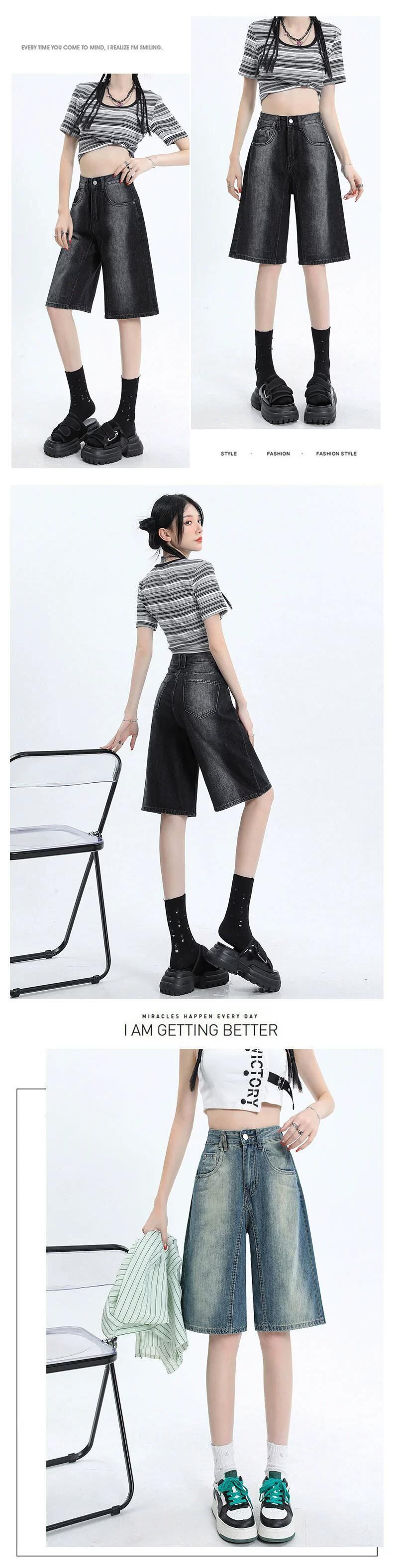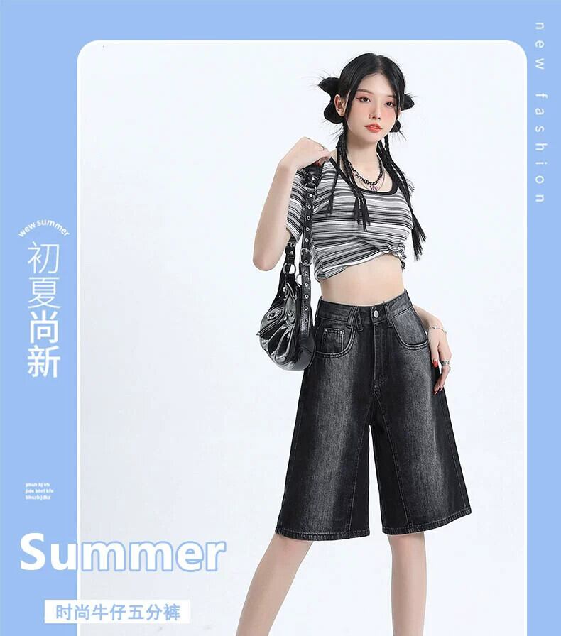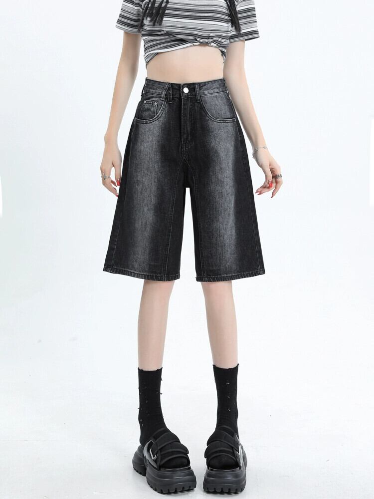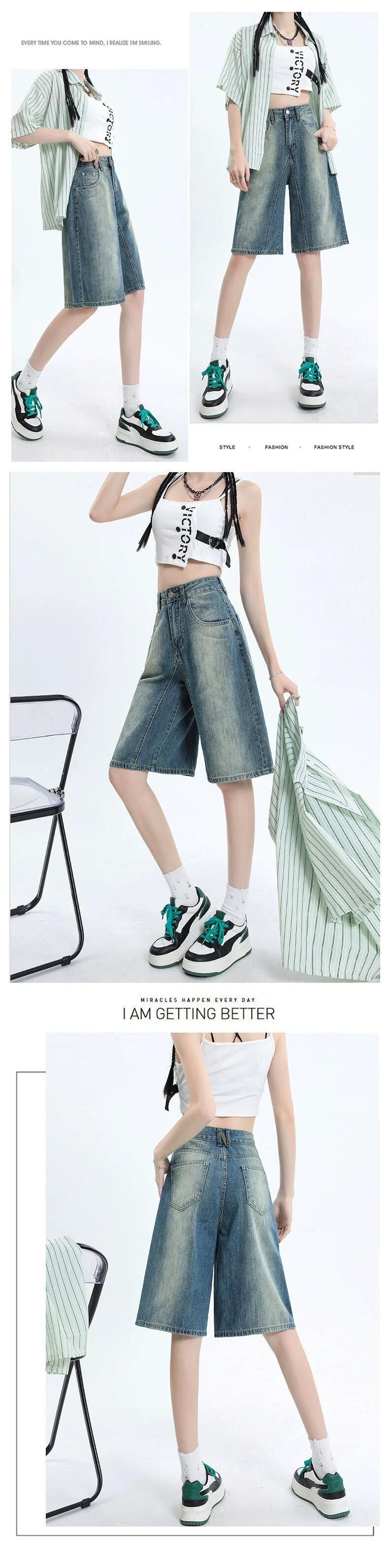 グラデーションデニムショートパンツレディース2023夏新作ハイウエスト薄手5点パンツゆったりオールマッチストレートワイドレッグパンツ ハイウェスト サマー 夏物 ショーツ ブルマー 7460084183198863 | framboise21