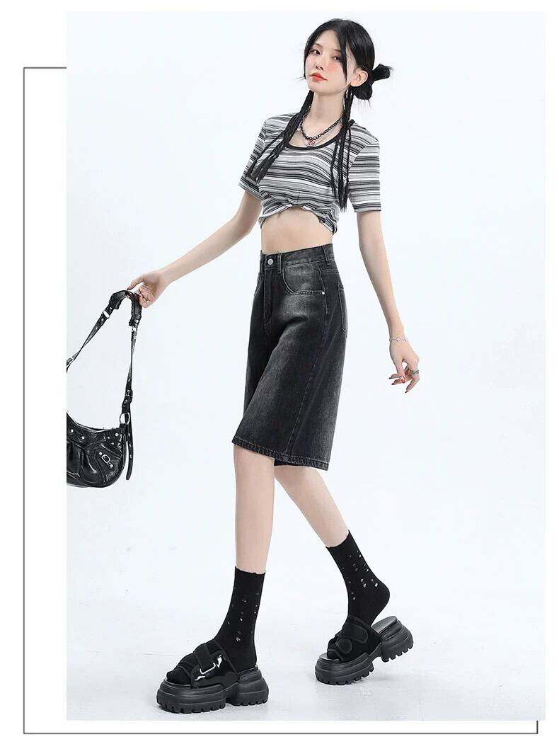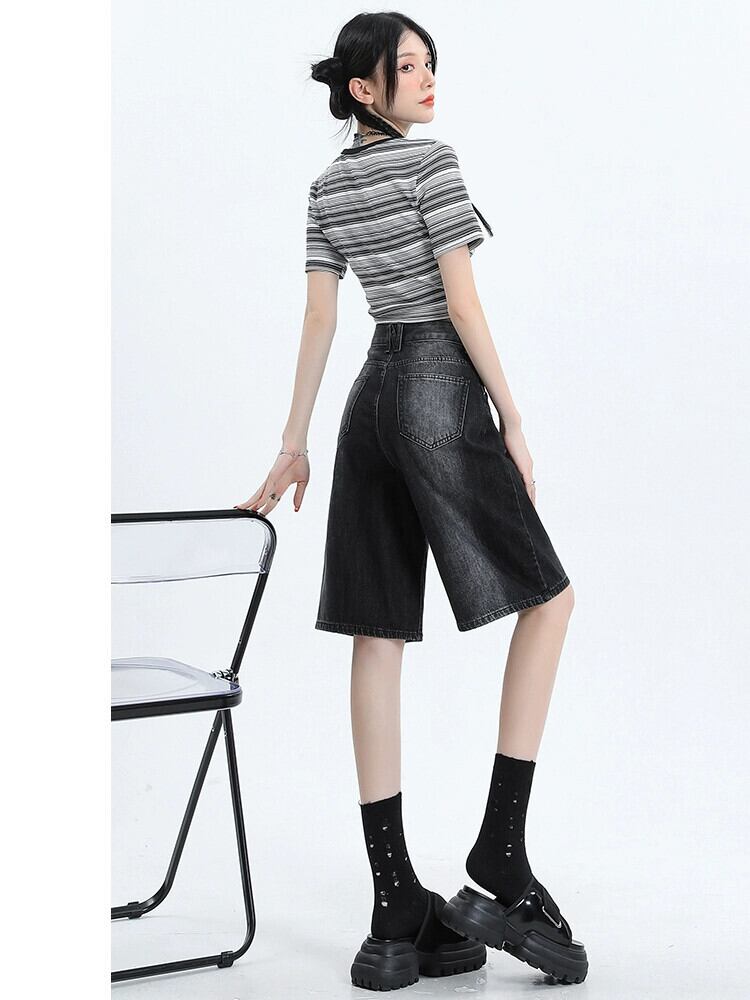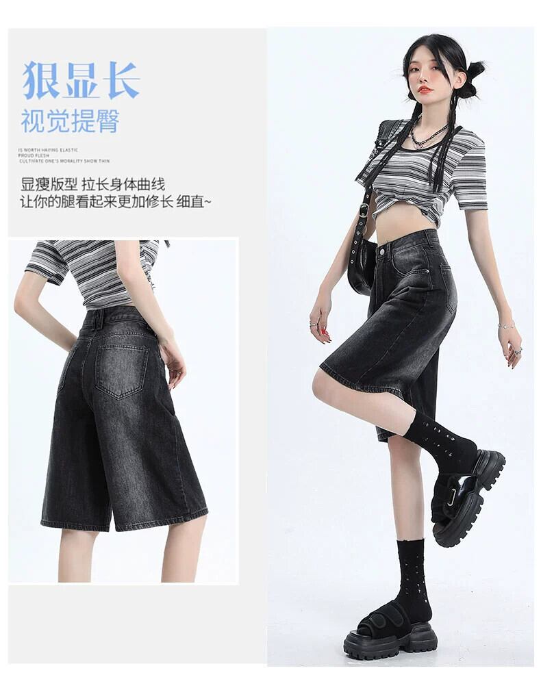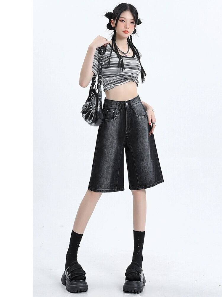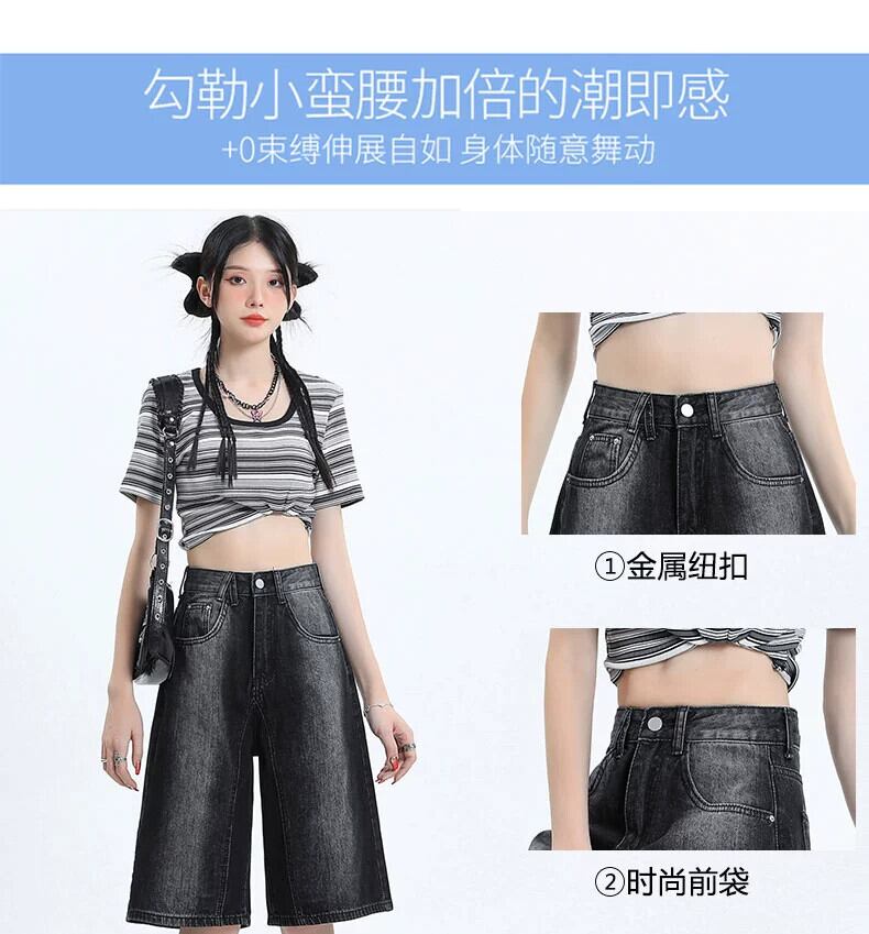 グラデーションデニムショートパンツレディース2023夏新作ハイウエスト薄手5点パンツゆったりオールマッチストレートワイドレッグパンツ ハイウェスト サマー 夏物 ショーツ ブルマー 7460084183198863 | framboise21