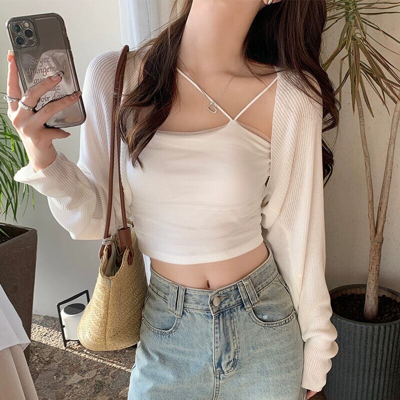 アプリコットアイスシルク日焼け止めカーディガンレディース薄い夏サスペンダースカートハーフベストショルダーショールブラウスニットトップ サマー 夏物 7460033113225807 | framboise21