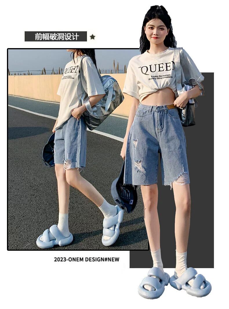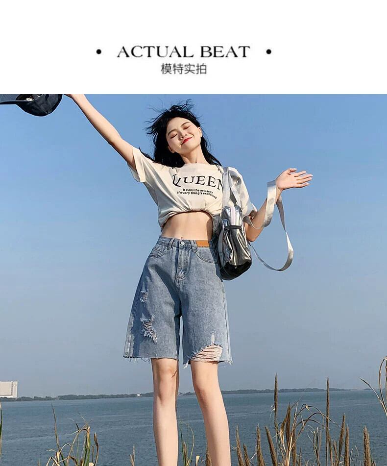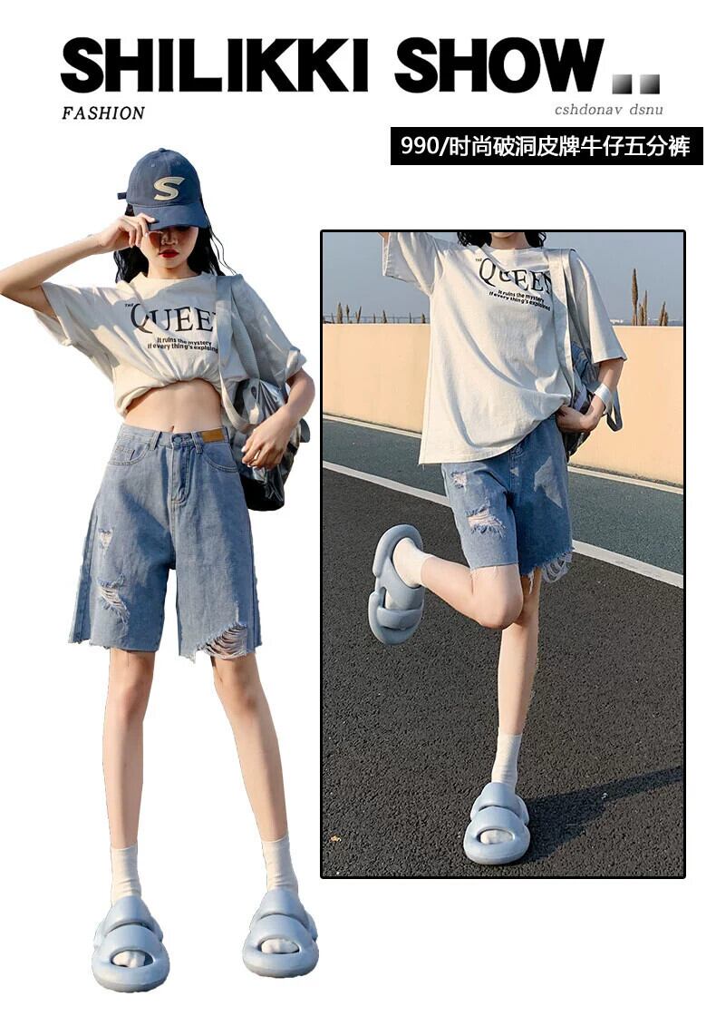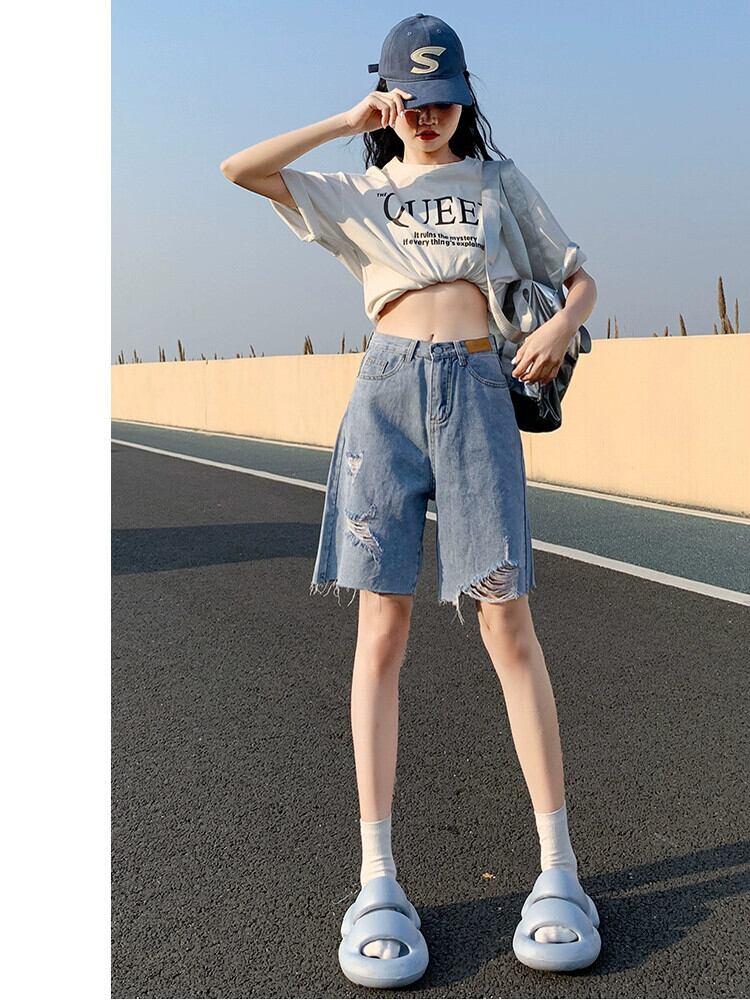 ブルーリップドデニムショートパンツレディースサマーネットレッドスタイルルーズ薄手5点パンツアウターハイウエストワイドレッグパンツ ハイウェスト 夏物 ショーツ ブルマー 7460027409316988 | framboise21