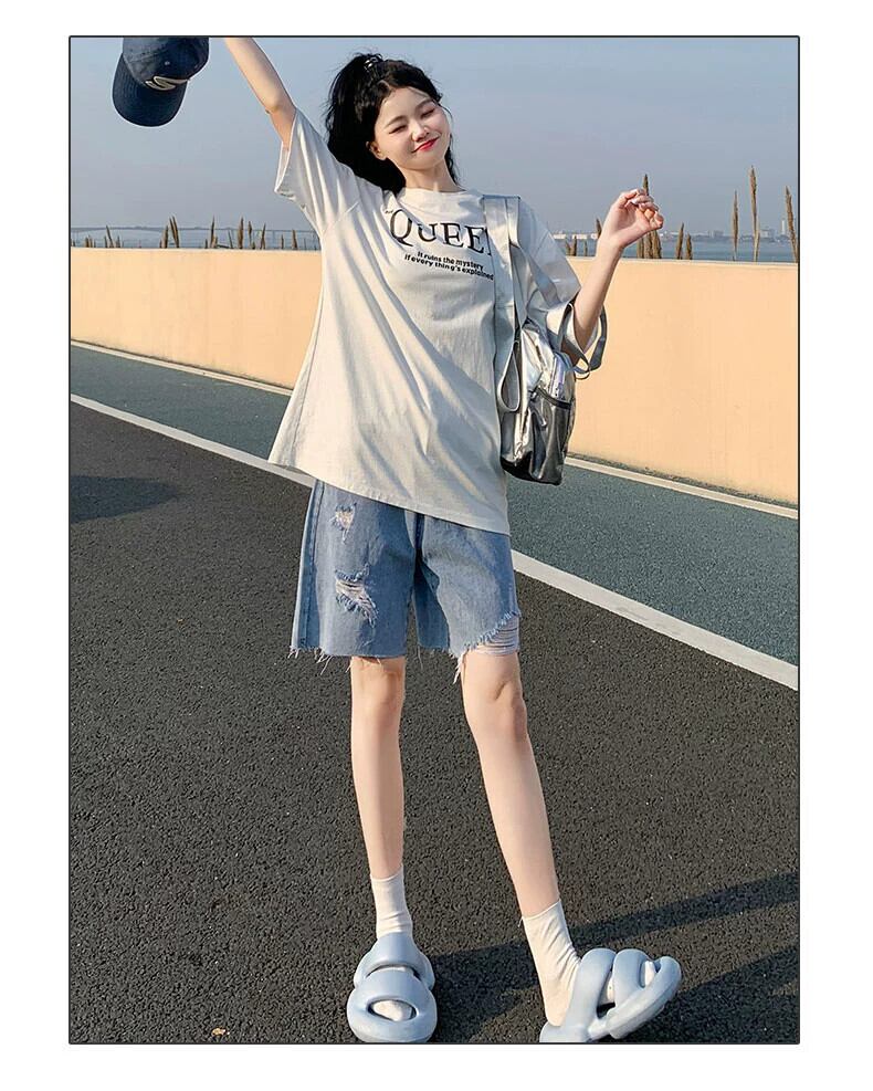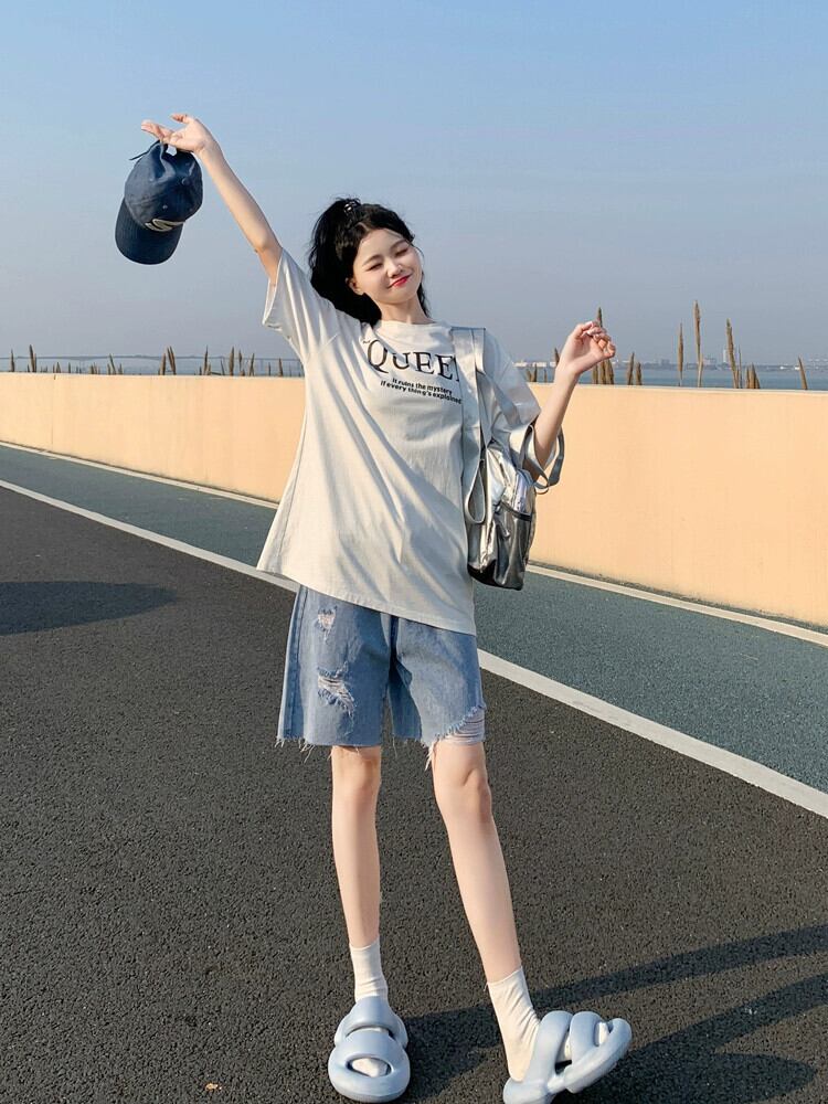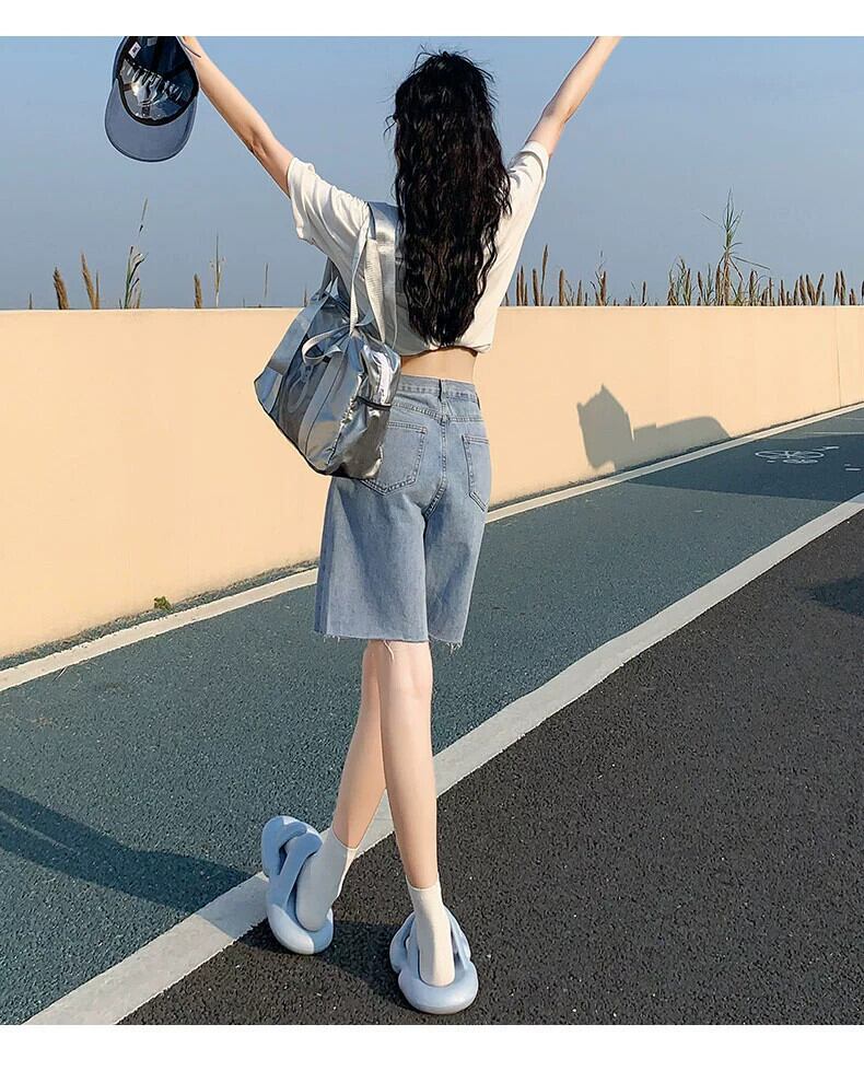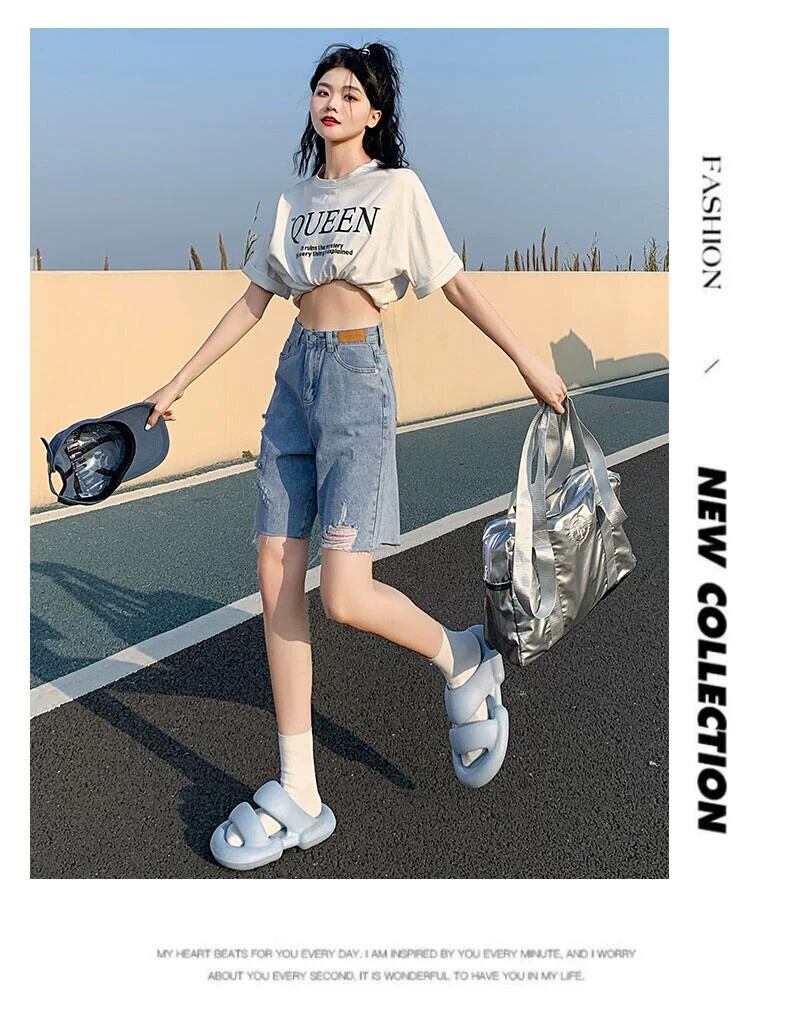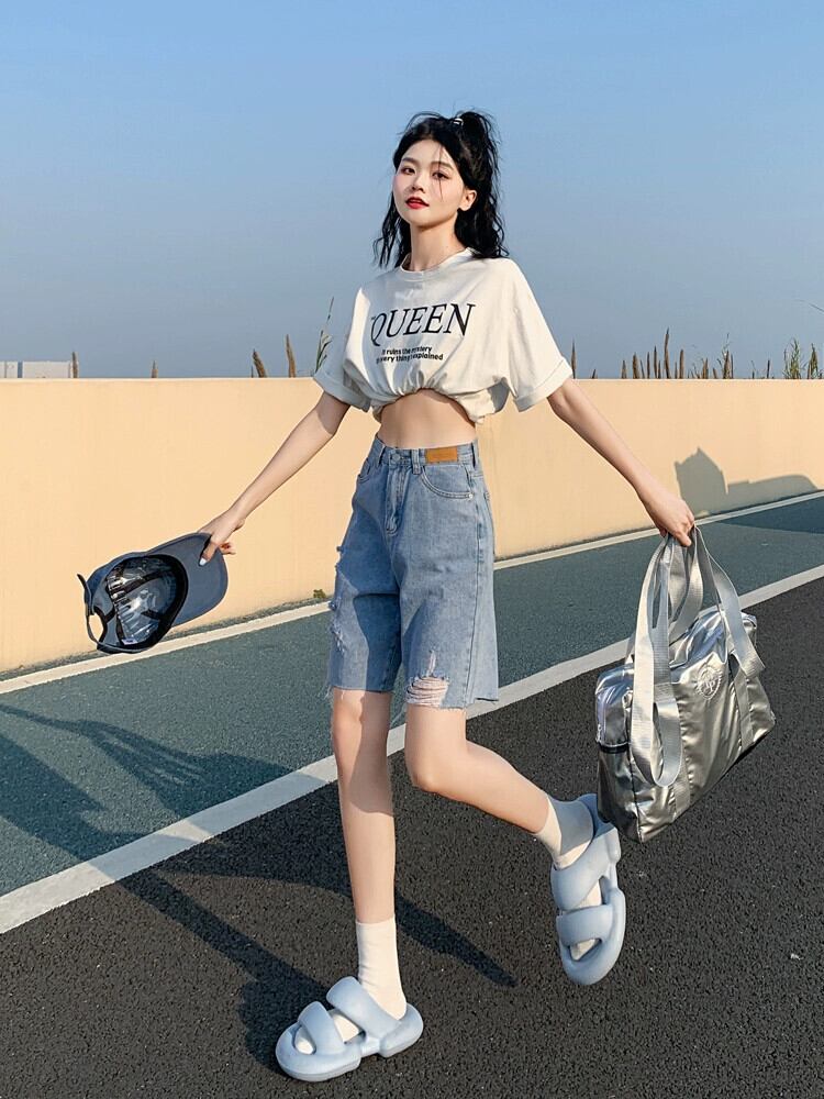 ブルーリップドデニムショートパンツレディースサマーネットレッドスタイルルーズ薄手5点パンツアウターハイウエストワイドレッグパンツ ハイウェスト 夏物 ショーツ ブルマー 7460027409316988 | framboise21