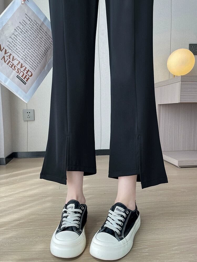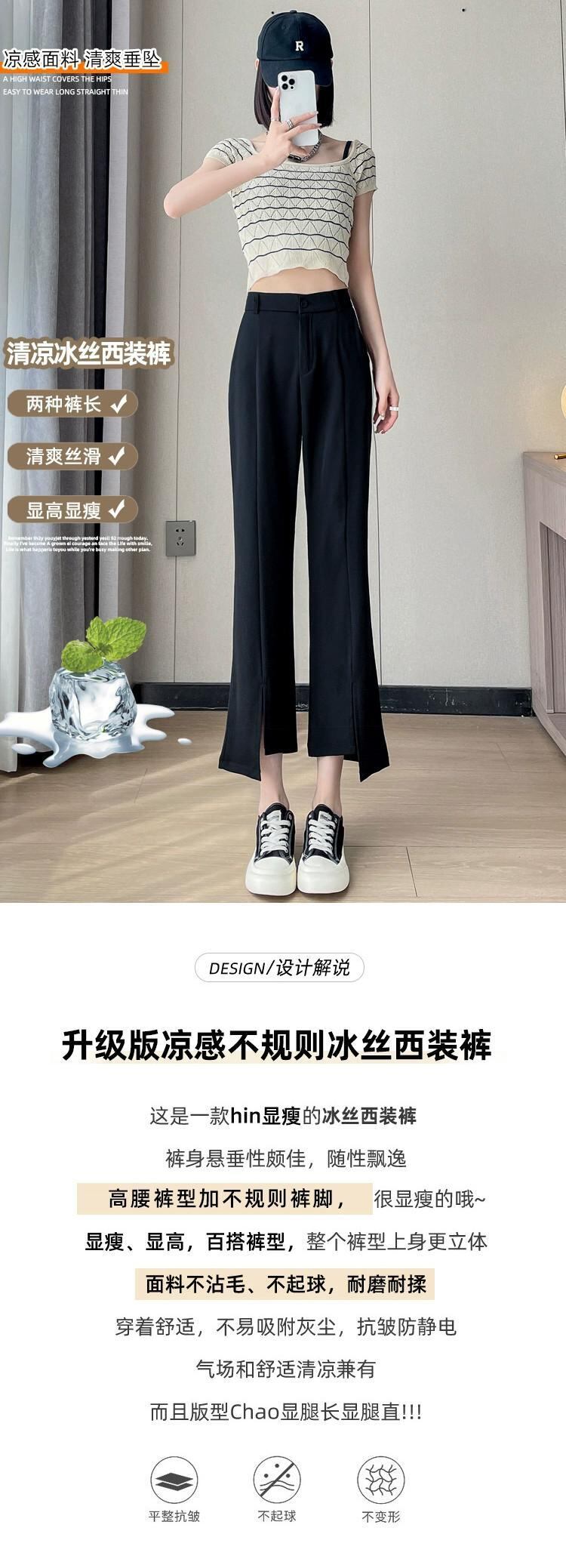 スリットアイスシルクスーツパンツレディース夏薄手フレアパンツルーズカジュアル小男ナローバージョン9点ワイドレッグパンツ レッド サマー 夏物 7460069808310907 | framboise21