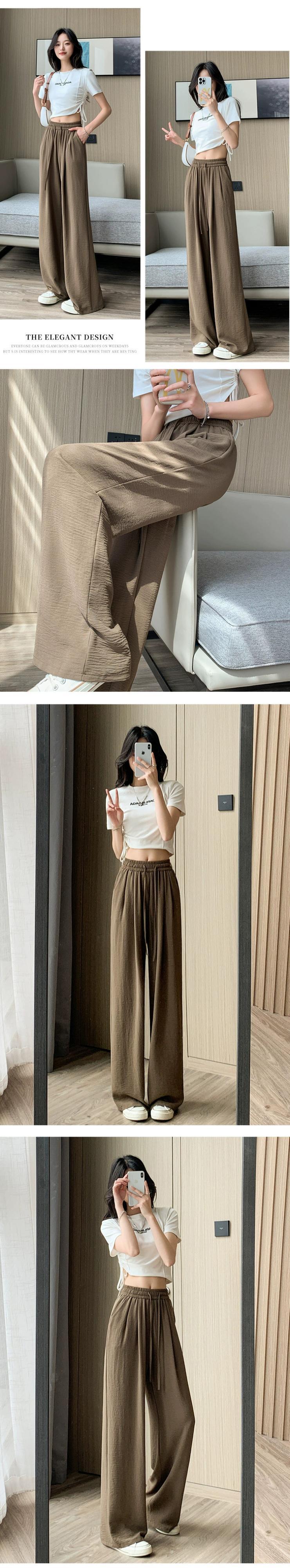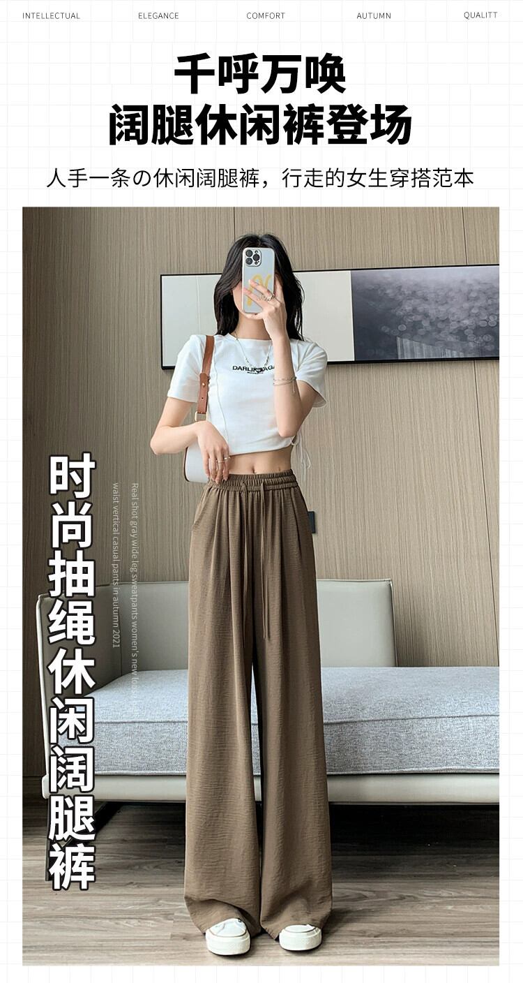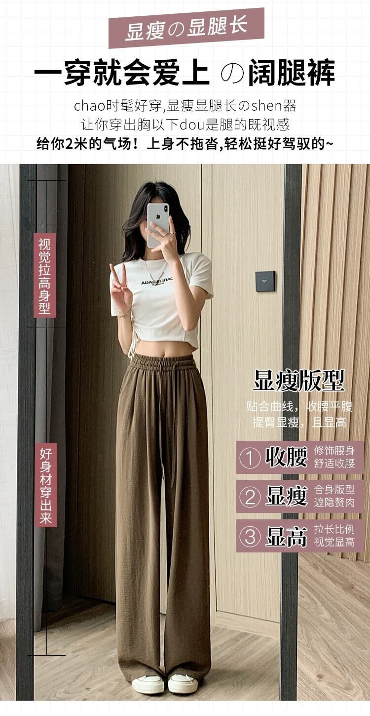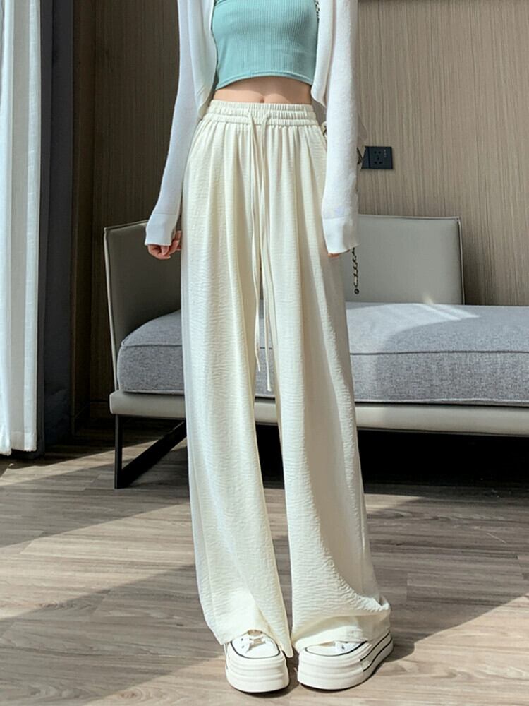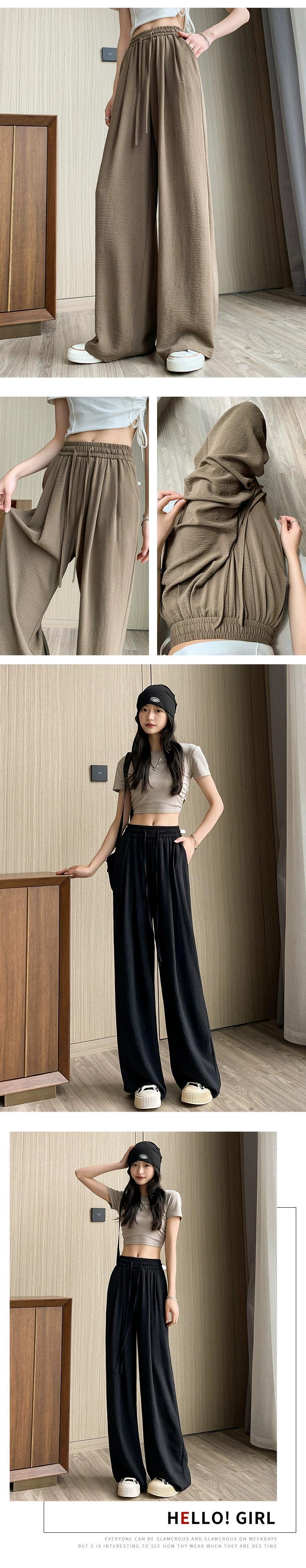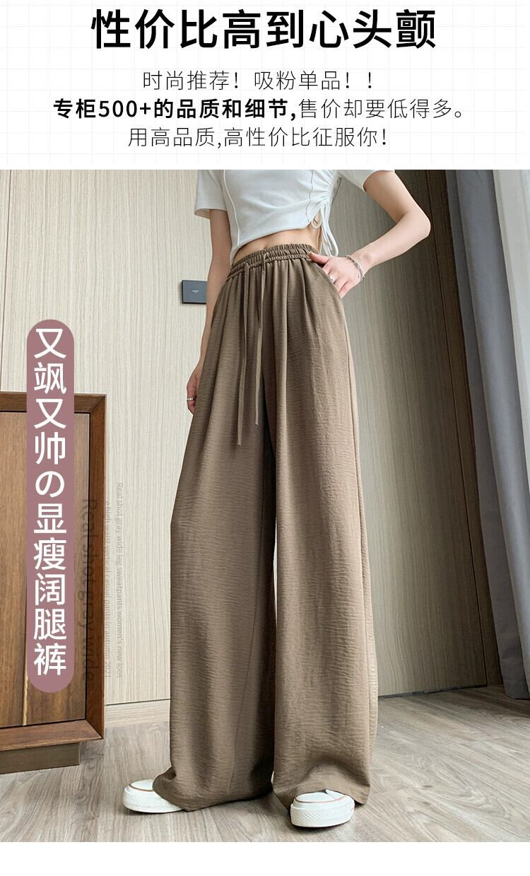 アイスシルクワイドレッグパンツ女性の夏カジュアル薄いセクション弾性ウエストコットンリネン女性のパンツハイウエストドレープストレートレッグモップパンツ ハイウェスト エラスティック 伸縮 サマー 夏物 746006658162220 | framboise21