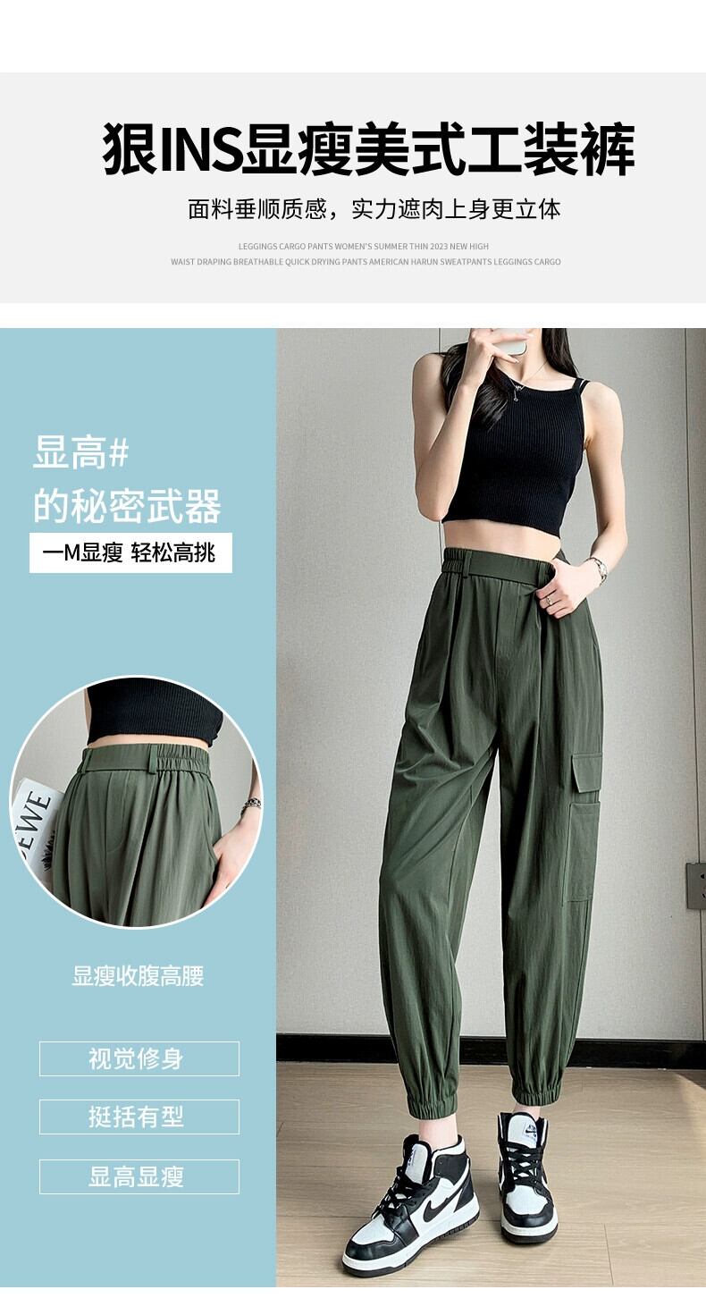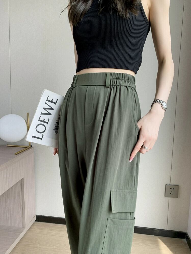 アーミーグリーン オーバーオール レディース 夏 アメリカン アイス シルク ビーム スポーツ パンツ ハイウエスト ドレープ 薄いセクション ハーレム 9 点パンツ ハイウェスト サマー 夏物 7460096990977290 | framboise21