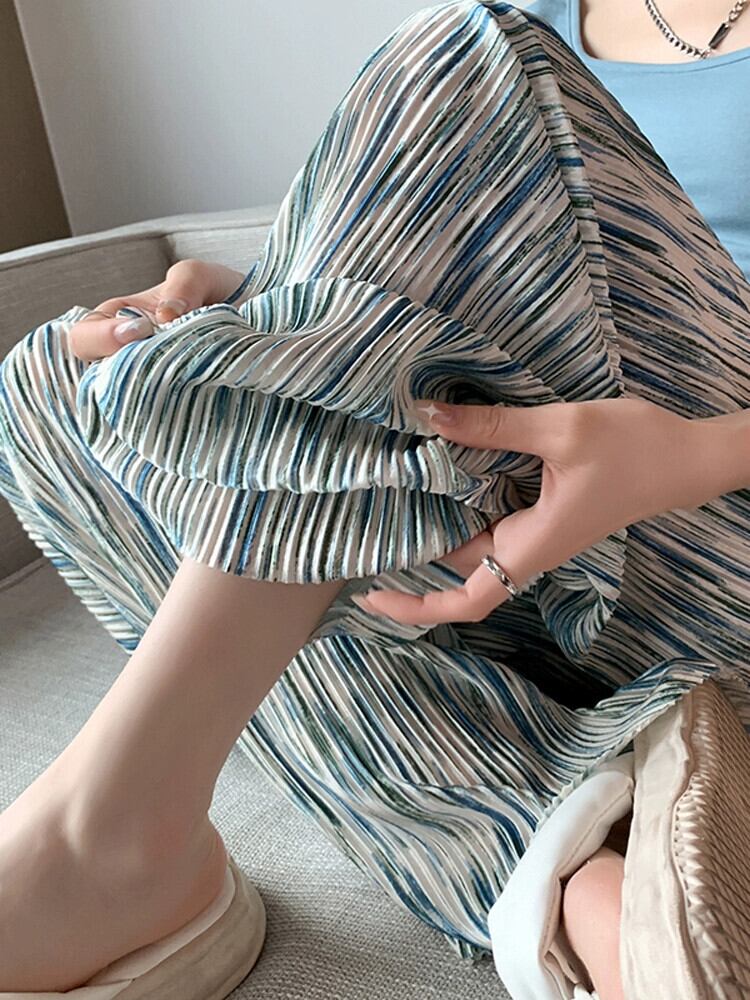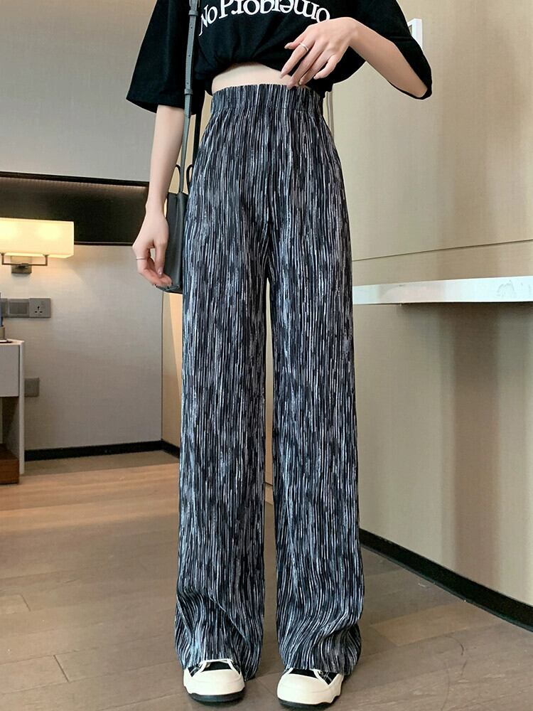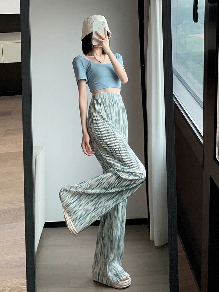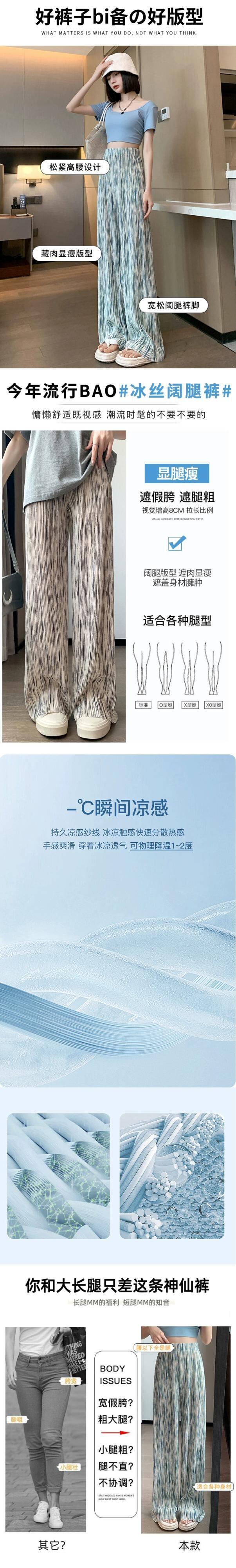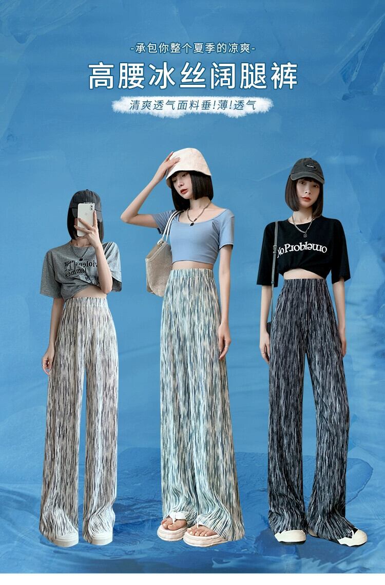タイダイアイスシルクワイドレッグパンツレディース夏薄部空調パンツデザインルーズハイウエスト縦ストレートカジュアルパンツ ハイウェスト サマー 夏物 7460036758487069 | framboise21