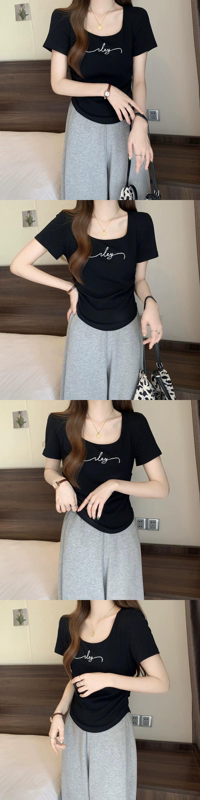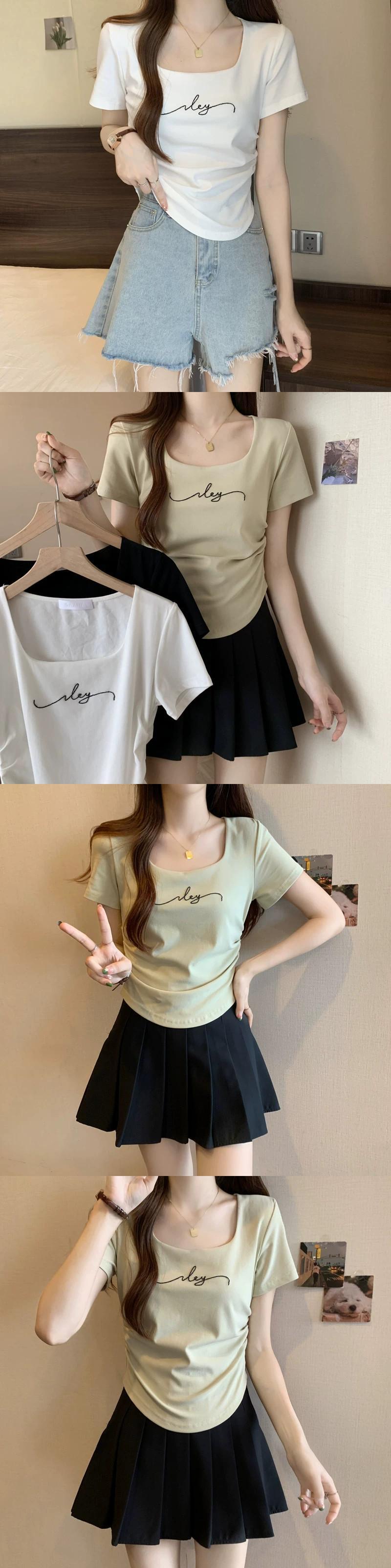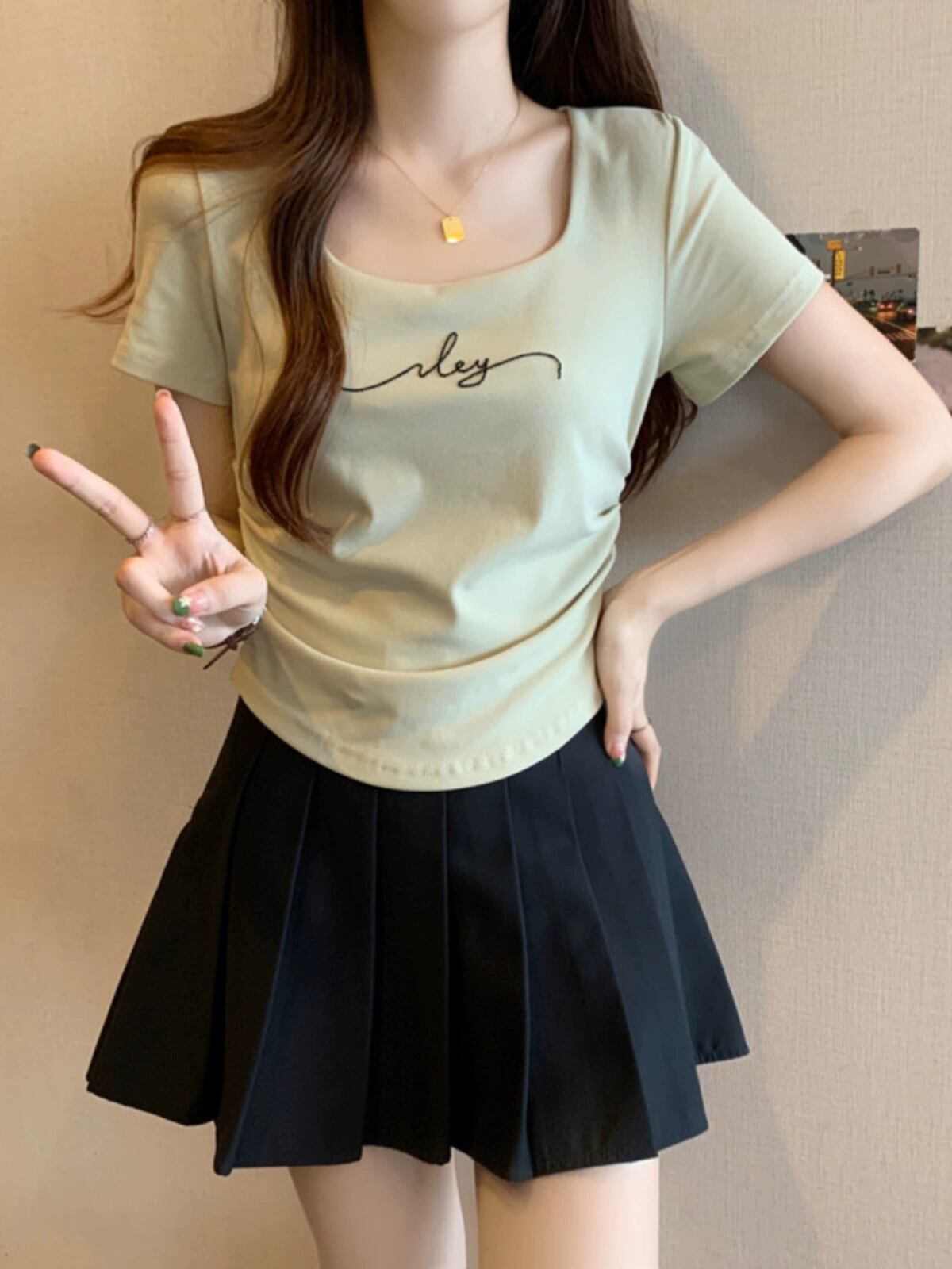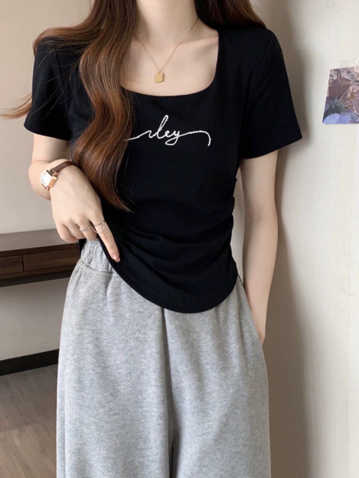 ホワイトフロントショルダー半袖Tシャツレディース夏ニッチデザインファッションオールマッチ自己修養ショートセクション不規則なスクエアカラートップ サマー 夏物 スクウェア 7460031526117948 | framboise21