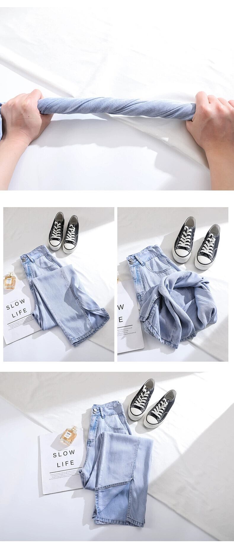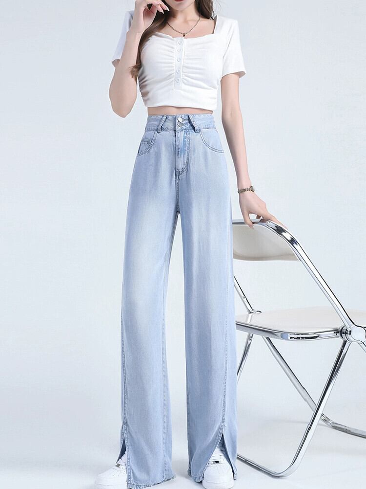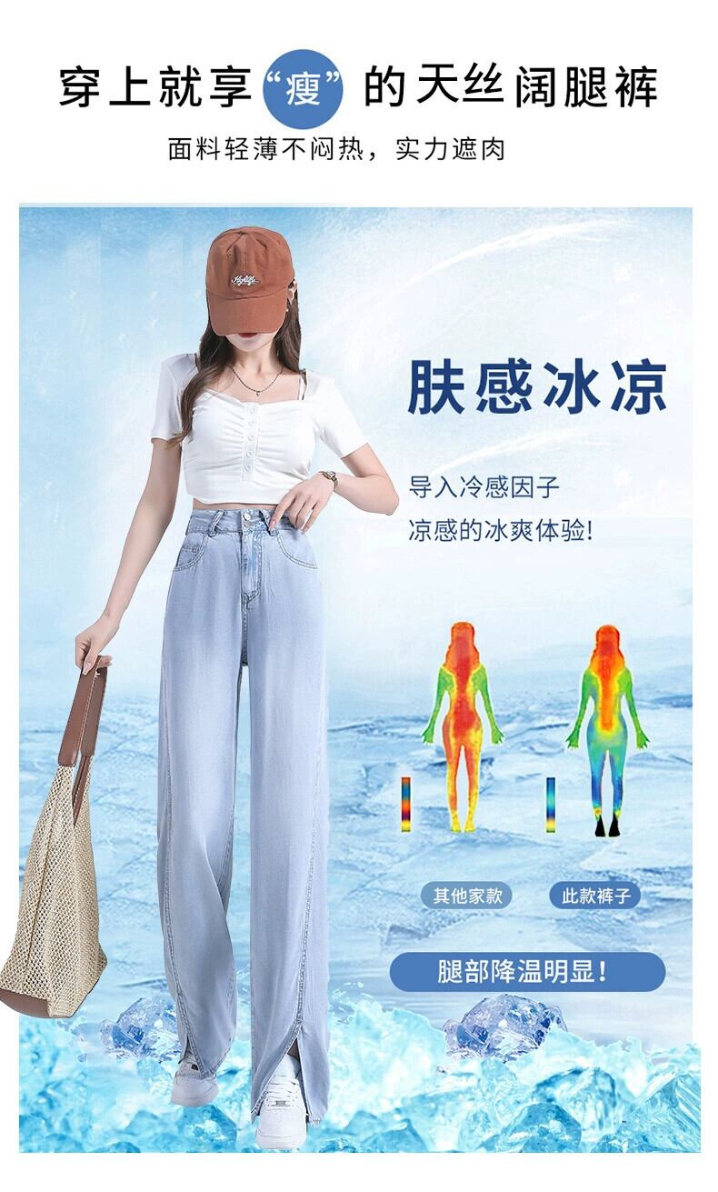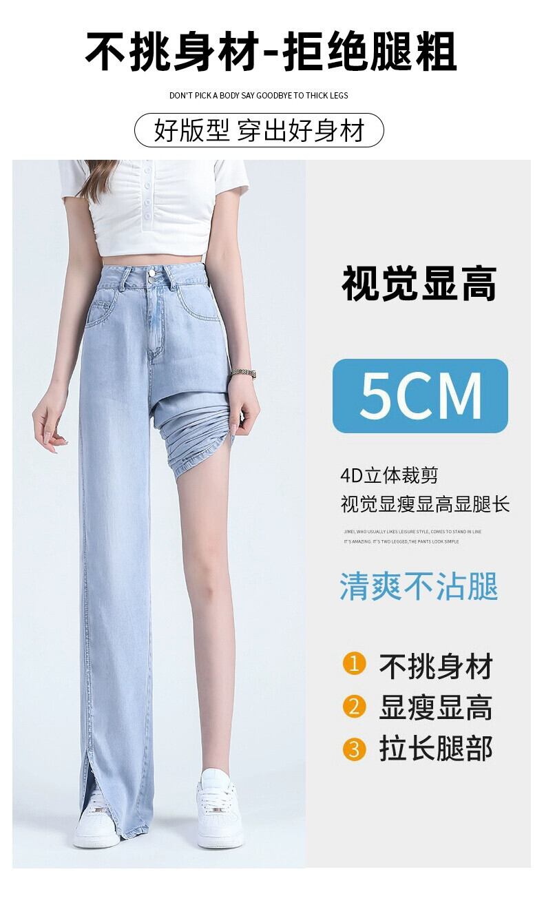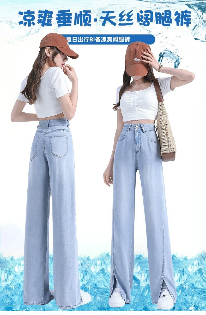 テンセル ジーンズ レディース 夏 アイス シルク スリット ワイドレッグ パンツ スモール トール ウエスト 薄いセクション ドレープ フロアモップ ストレート パンツ サマー 夏物 7460027209328682 | framboise21