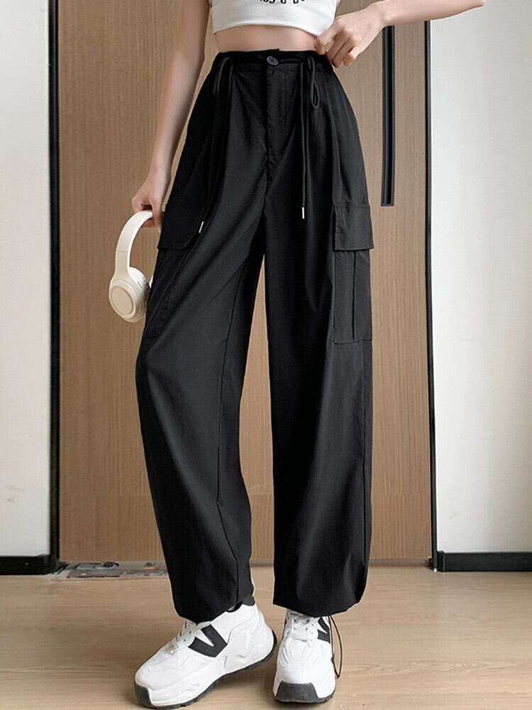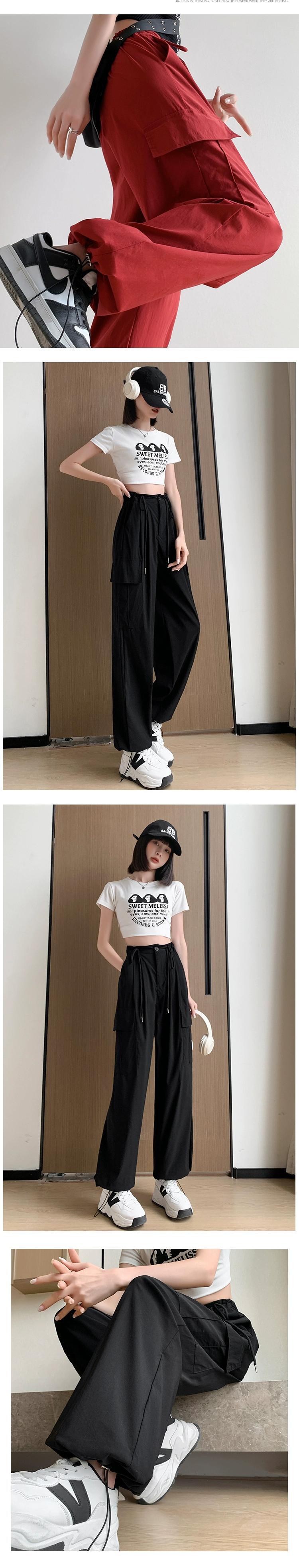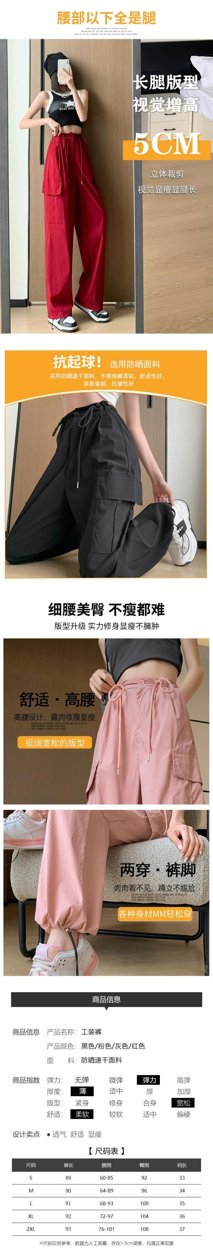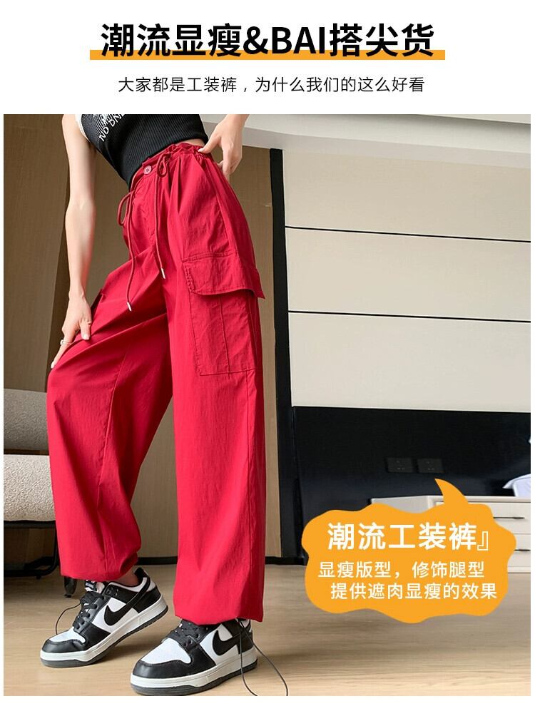 ピンクの速乾性オーバーオール レディース 夏 アメリカン スタイル レトロ 薄いセクション ドローストリング ハイウエスト ワイドレッグ パンツ カジュアル スポーツ パンツ ハイウェスト サマー 夏物 7460071721564906 | framboise21