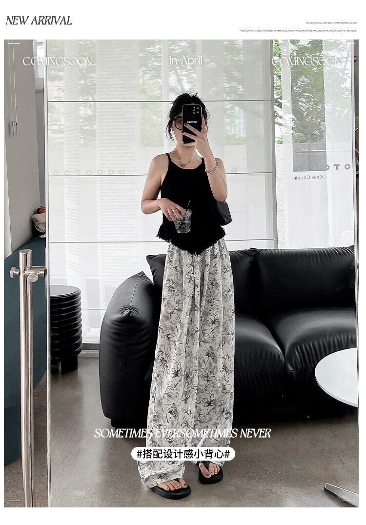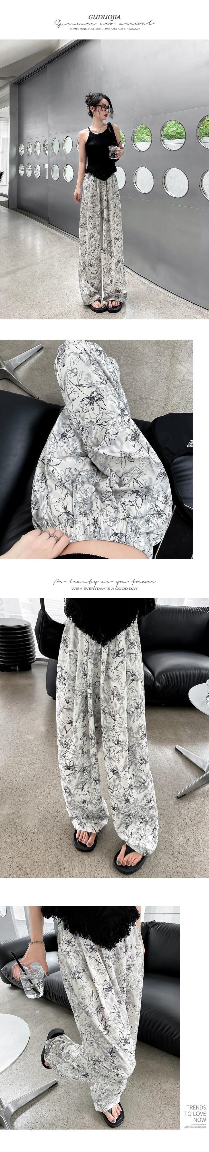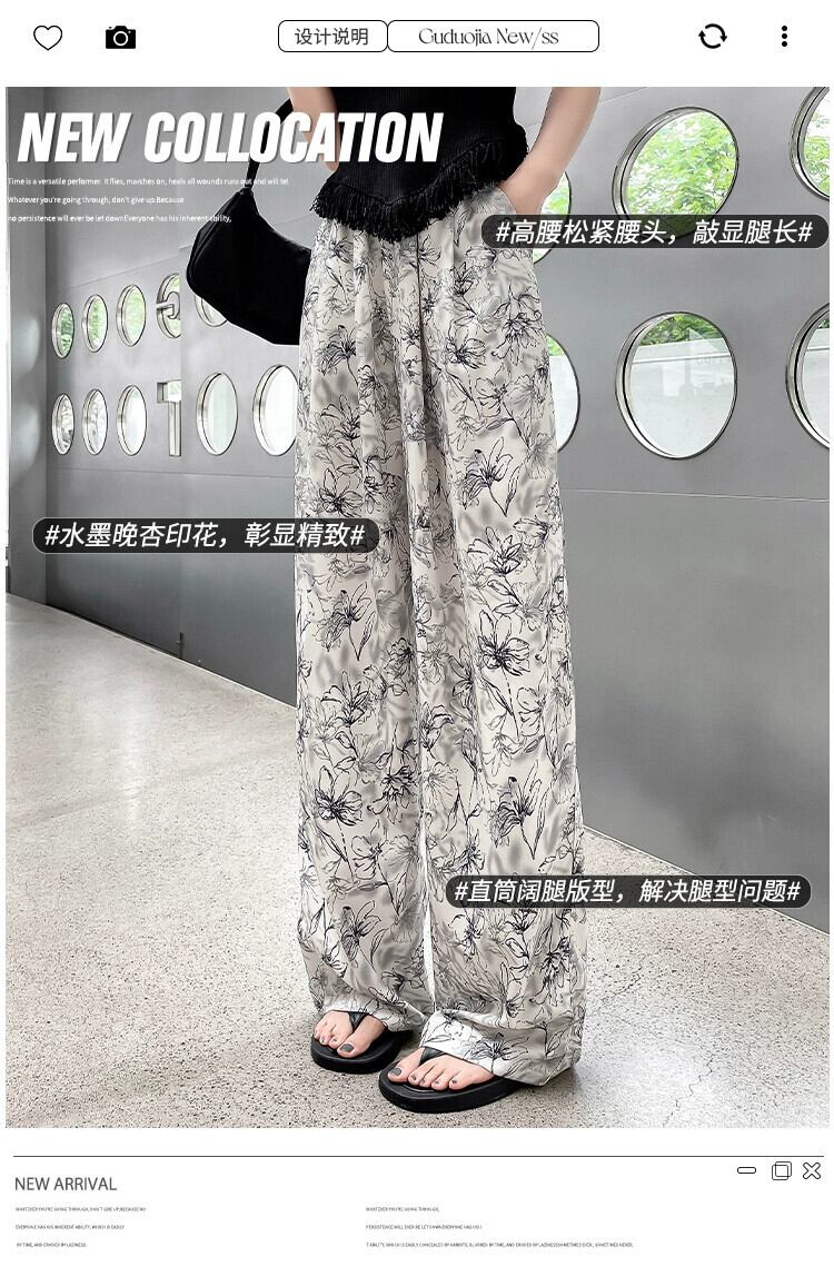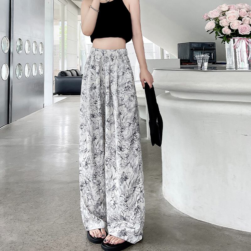 アイスシルクドレープワイドレッグパンツ女性の夏の薄いセクションインク汚れシフォンパンツドレープ弾性ハイウエストカジュアルレディースパンツ ハイウェスト エラスティック 伸縮 サマー 夏物 7460015891970832 | framboise21