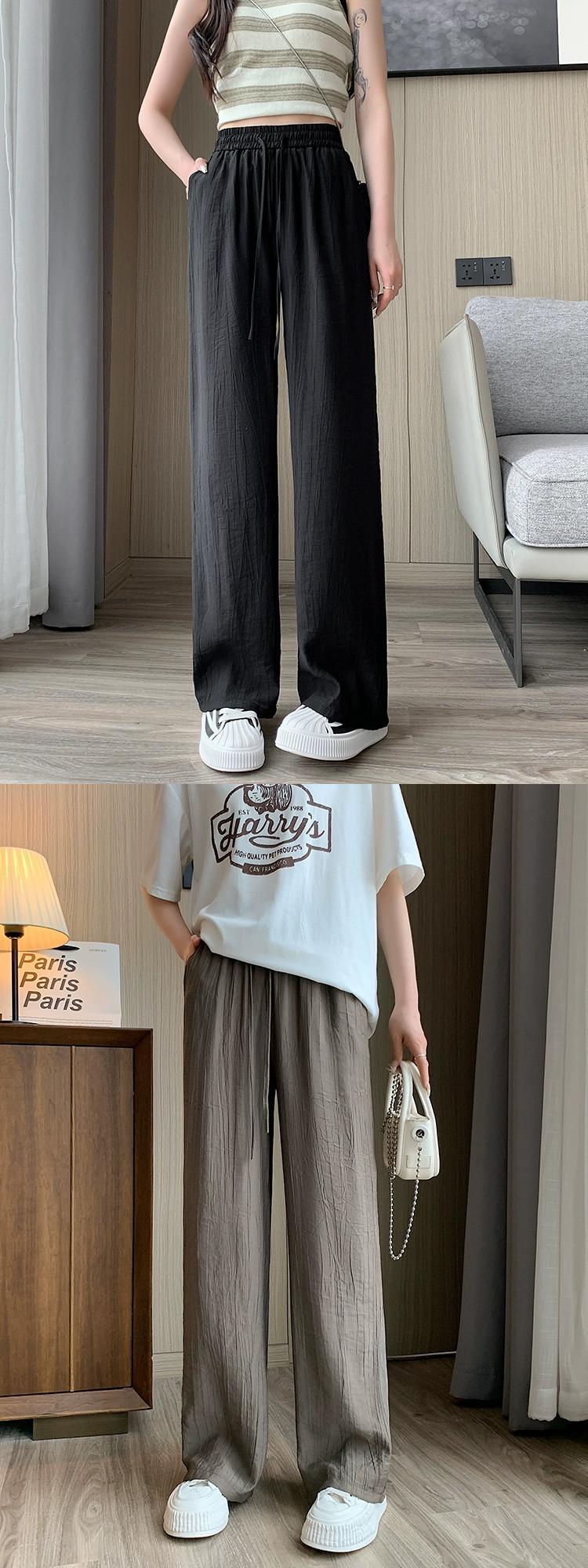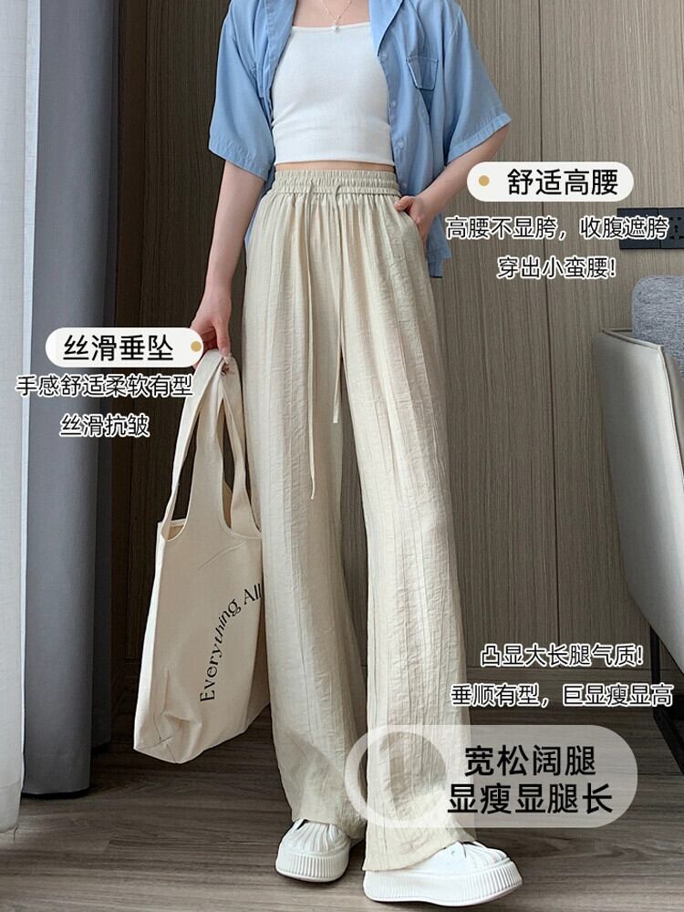 アイスシルクコットンとリネンのワイドレッグパンツレディース夏スモールクールクールパンツスリムハイウエストカジュアルシワ日焼け防止パンツ ハイウェスト サマー 夏物 7460079447901550 | framboise21