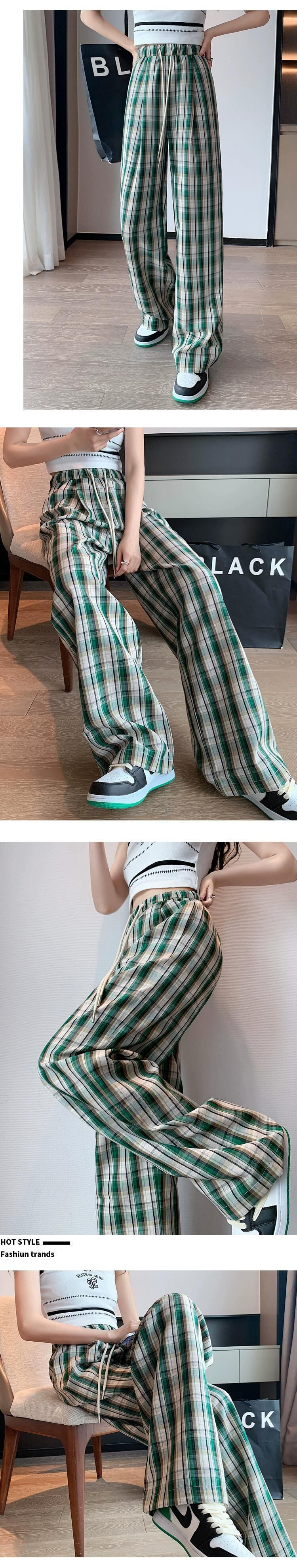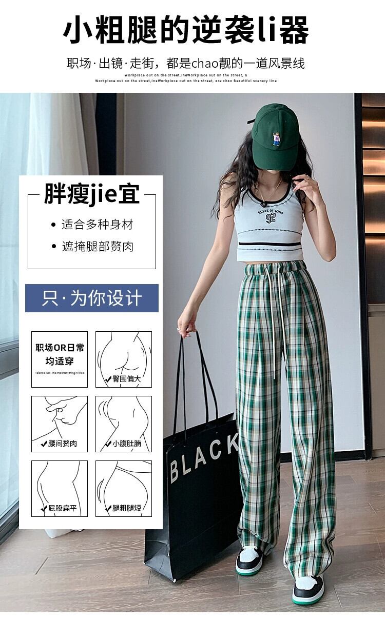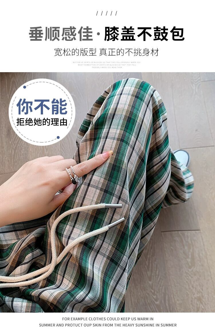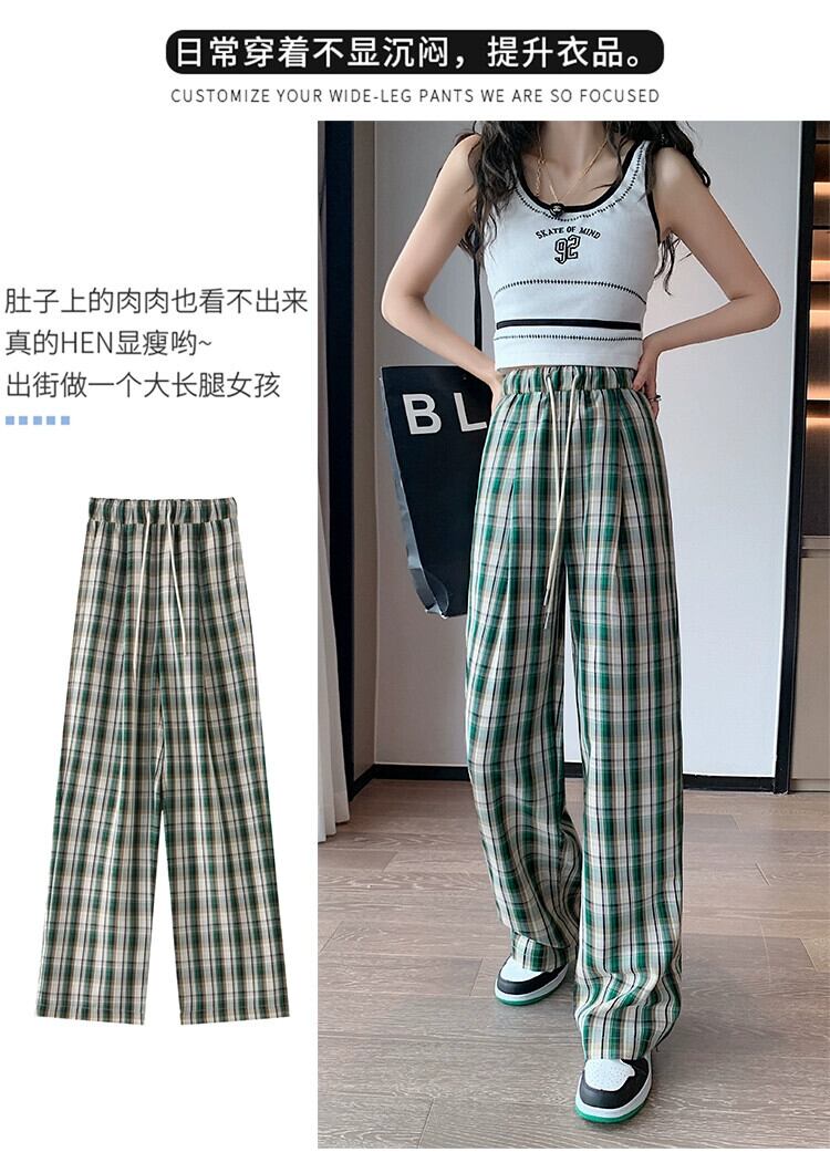 弾性ウエストチェック柄ワイドレッグパンツ女性の夏のレトロドレープモップロングパンツルーズスリムウエストストレートパンツ エラスティック 伸縮 サマー 夏物 ワイドパンツ 7460027968746677 | framboise21