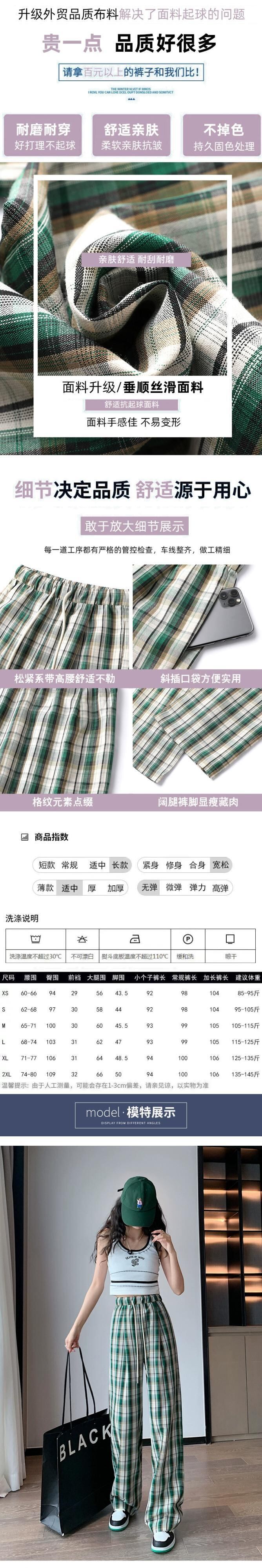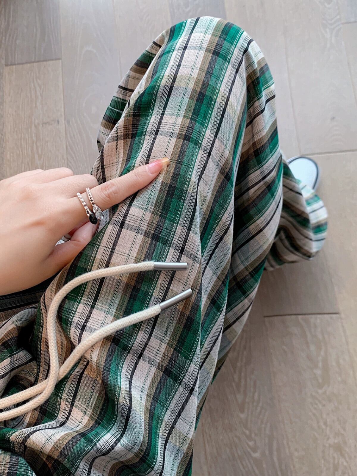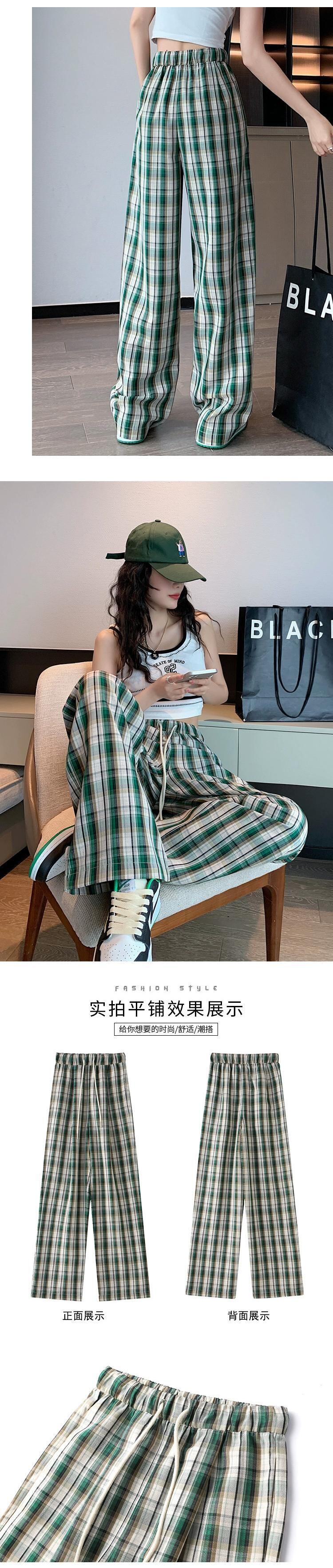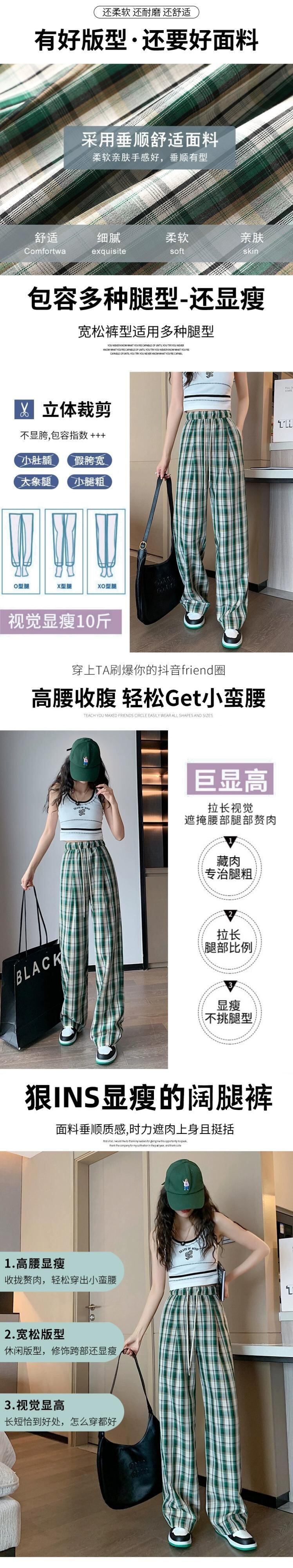 弾性ウエストチェック柄ワイドレッグパンツ女性の夏のレトロドレープモップロングパンツルーズスリムウエストストレートパンツ エラスティック 伸縮 サマー 夏物 ワイドパンツ 7460027968746677 | framboise21