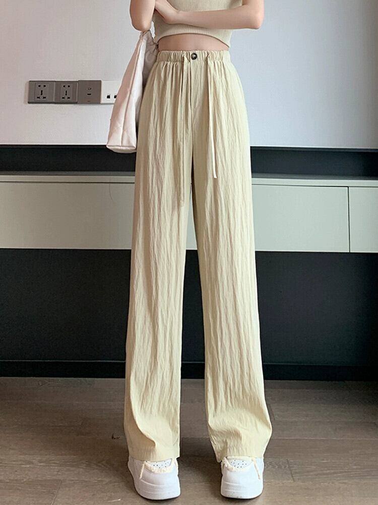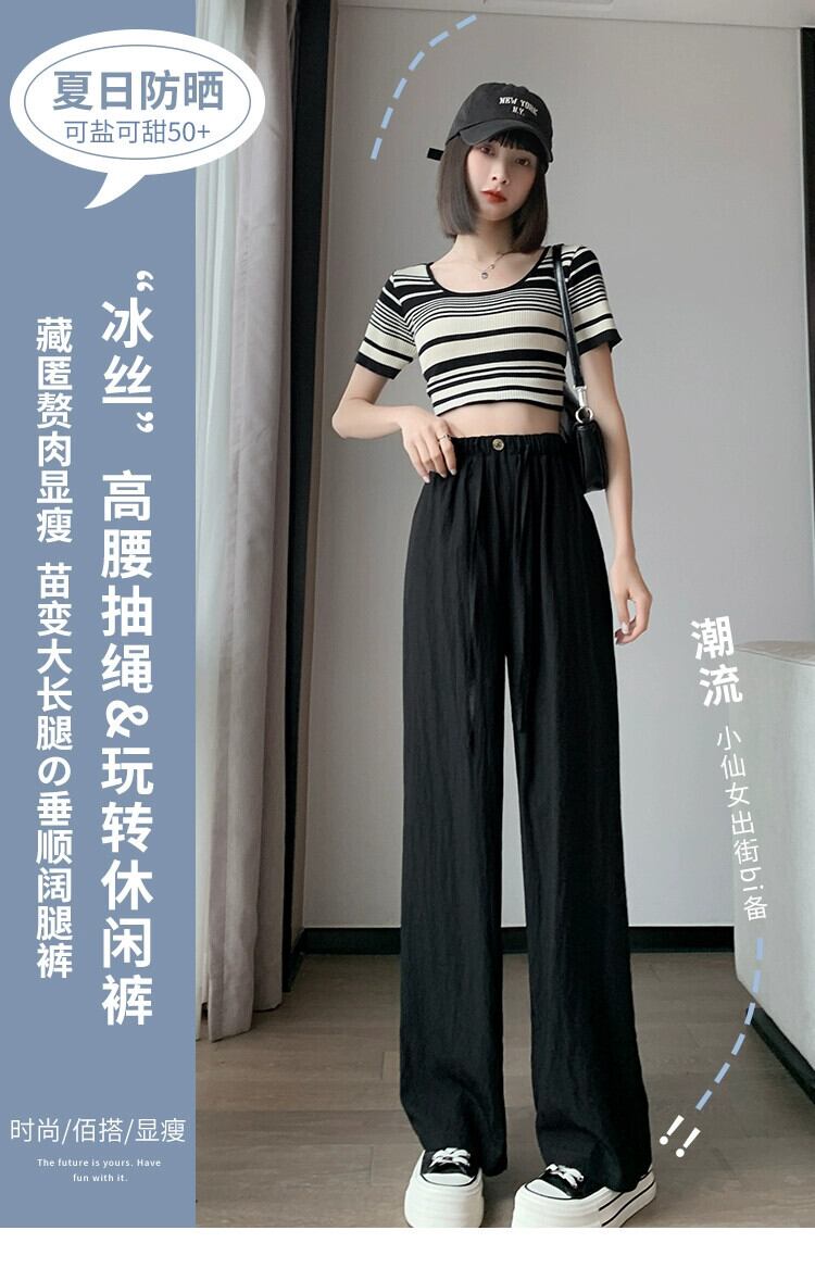 アイスシルクコットンリネンワイドレッグパンツ女性の夏薄いセクション怠惰な山本パンツ小さな背の高いウエストドレープフロアモップカジュアルパンツ サマー 夏物 7460038619481815 | framboise21