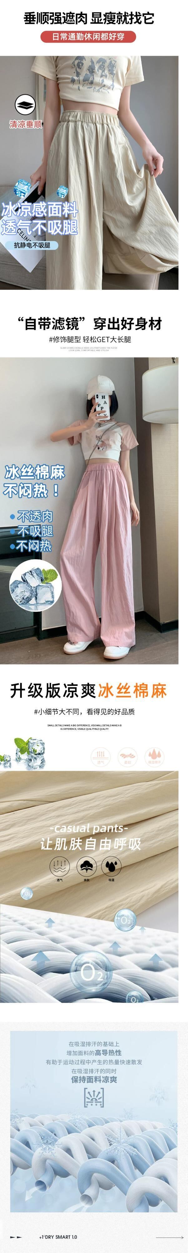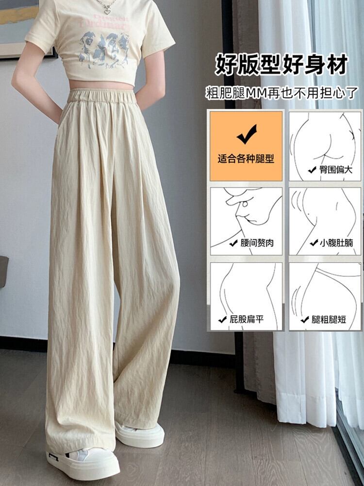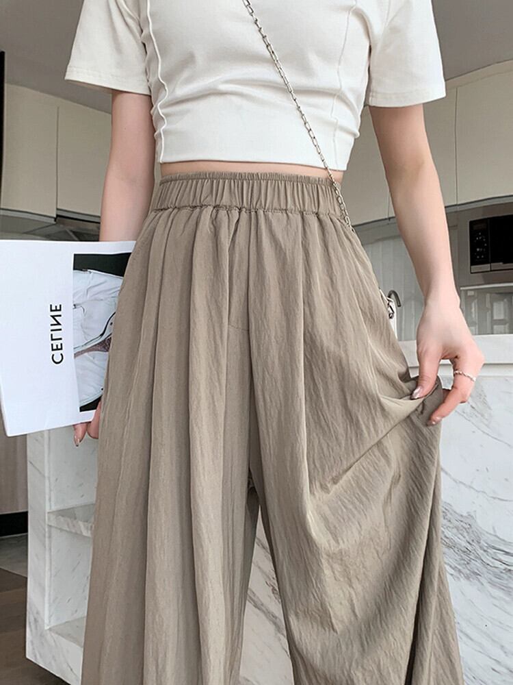 アイスシルクコットンリネンの女性のズボンの女性の夏 2023 新しい薄セクションプリーツカジュアルパンツストレートハイウエストドレープワイドレッグパンツ ハイウェスト サマー 夏物 ワイドパンツ 7460011561033439 | framboise21