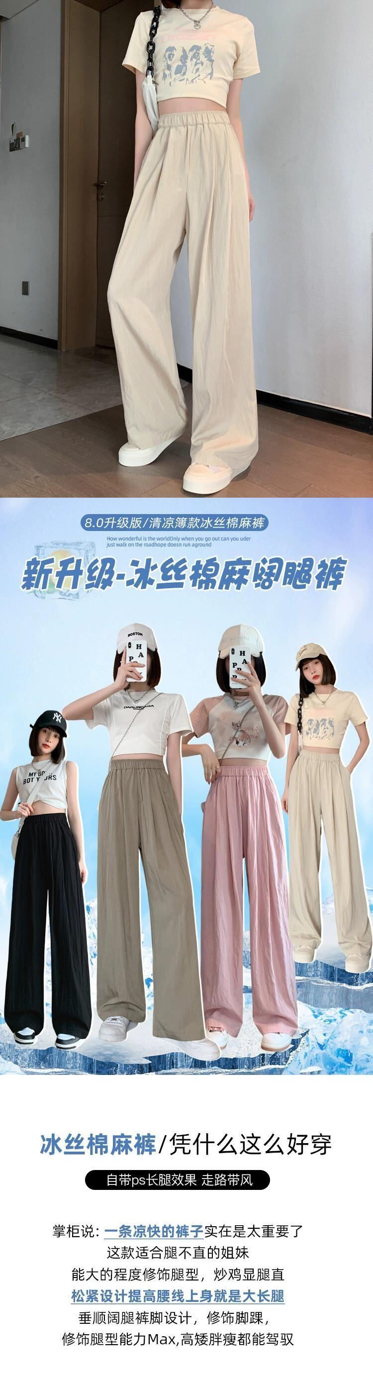 薄氷シルクワイドレッグパンツレディース夏エサ怠惰なスタイルコットンリネン山本パンツルーズハイウエストドレープカジュアルパンツ ハイウェスト サマー 夏物 7460019534429096 | framboise21