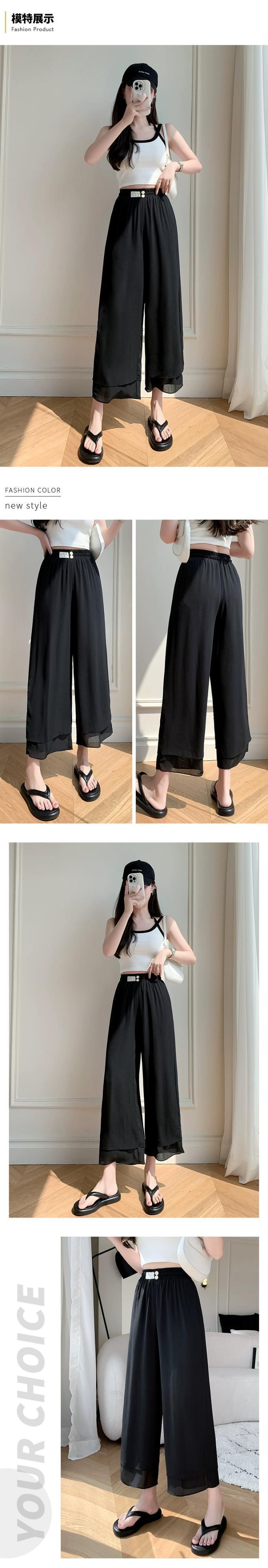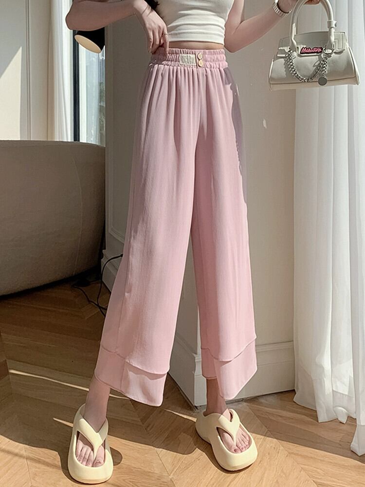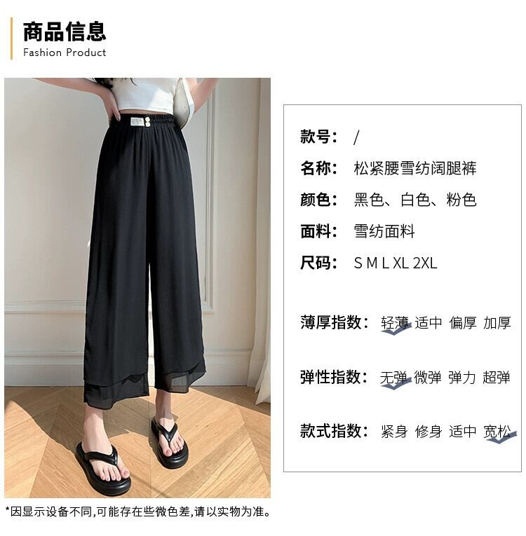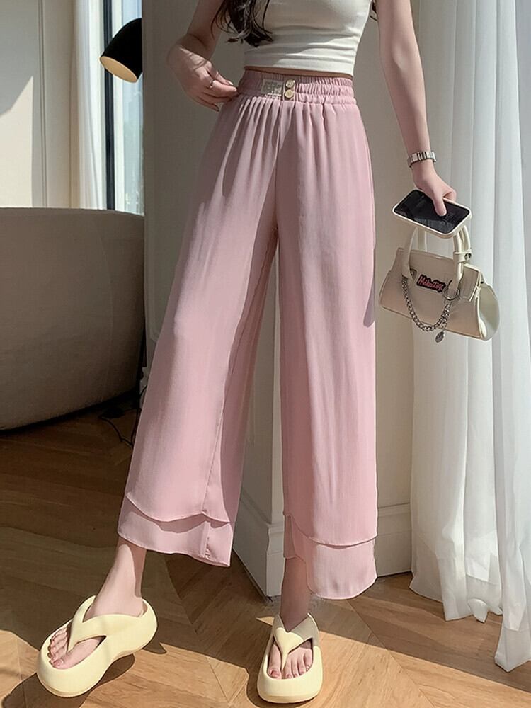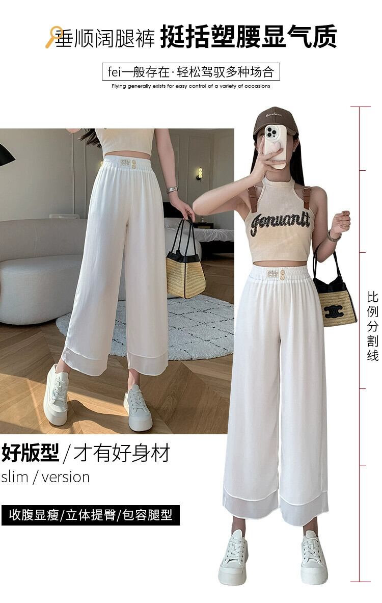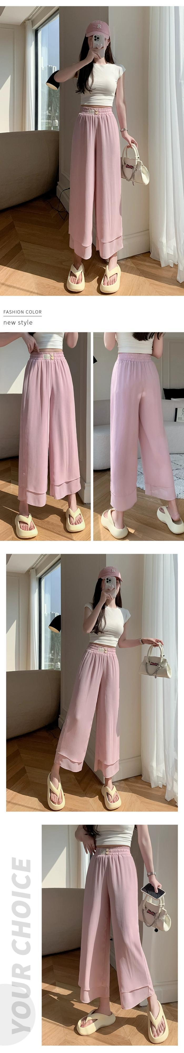 薄いシフォンワイドレッグパンツレディース夏ハイウエストドレープアイスシルクパンツ小さなルーズストレート9点カジュアルパンツ ハイウェスト サマー 夏物 7460077105630177 | framboise21