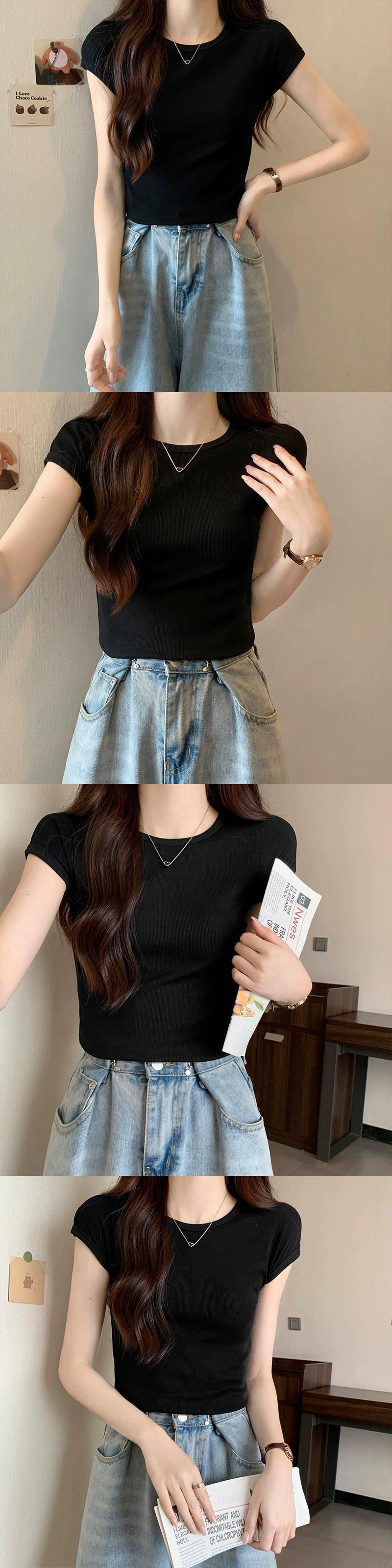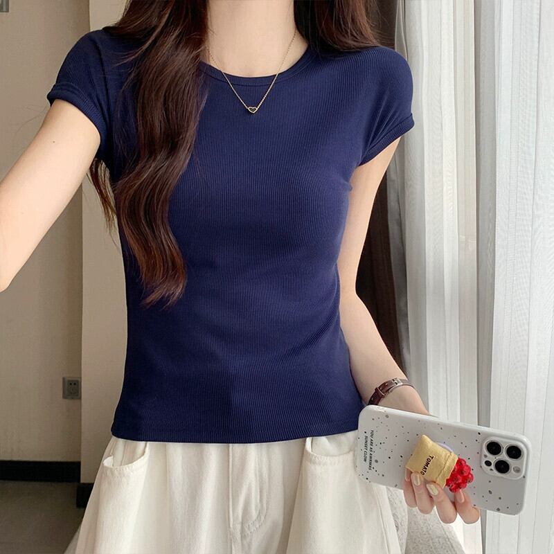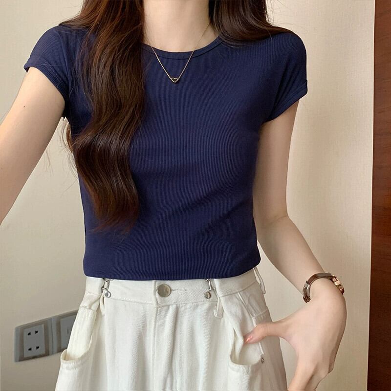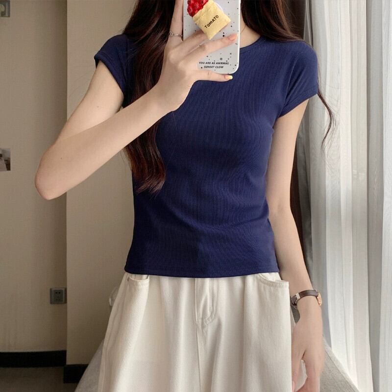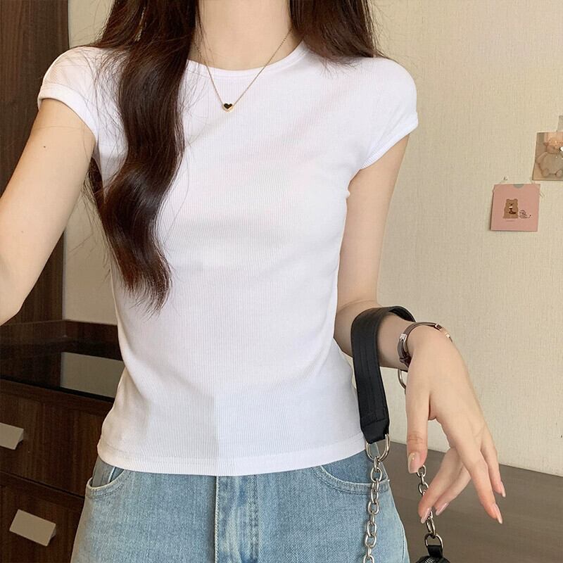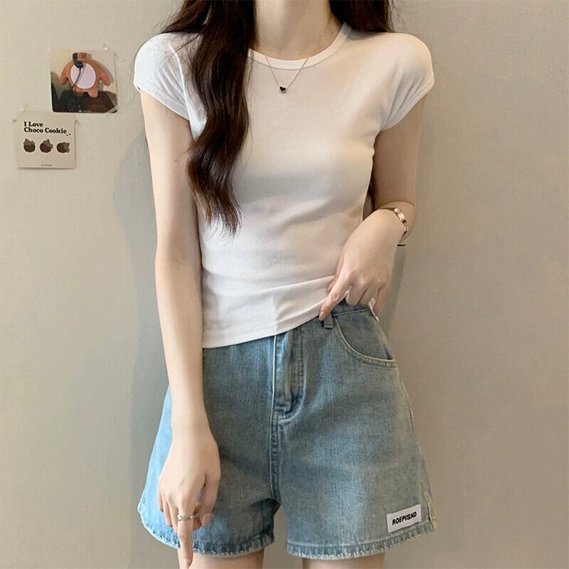 薄氷シルク糸半袖 Tシャツ女性の 2023 夏の新しいスリムフィットと薄い短いフロントショルダー小さなフライング スリーブ トップ ショート サマー 夏物 7460034667682700 | framboise21