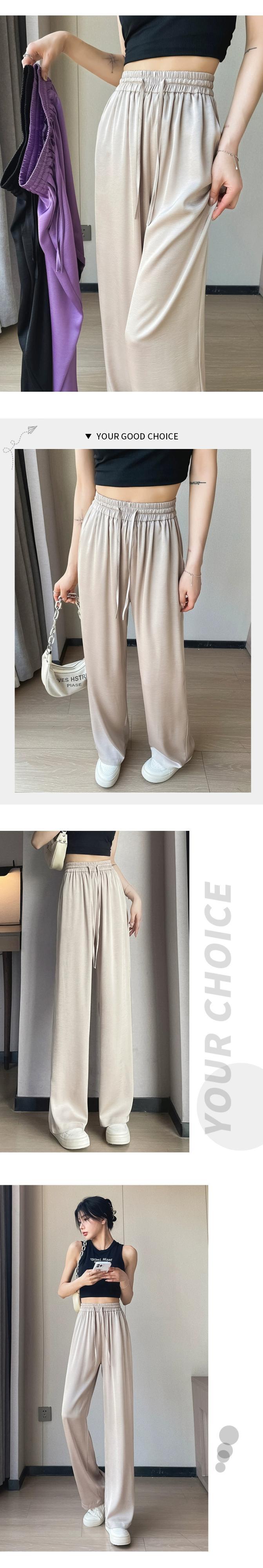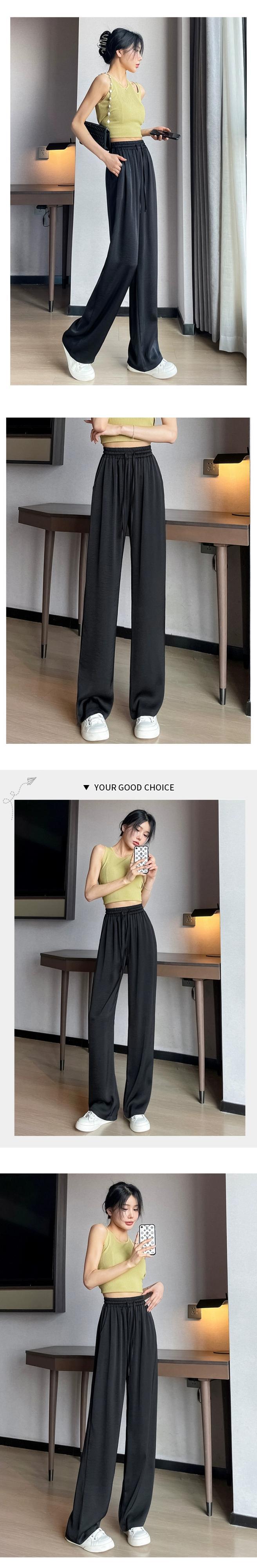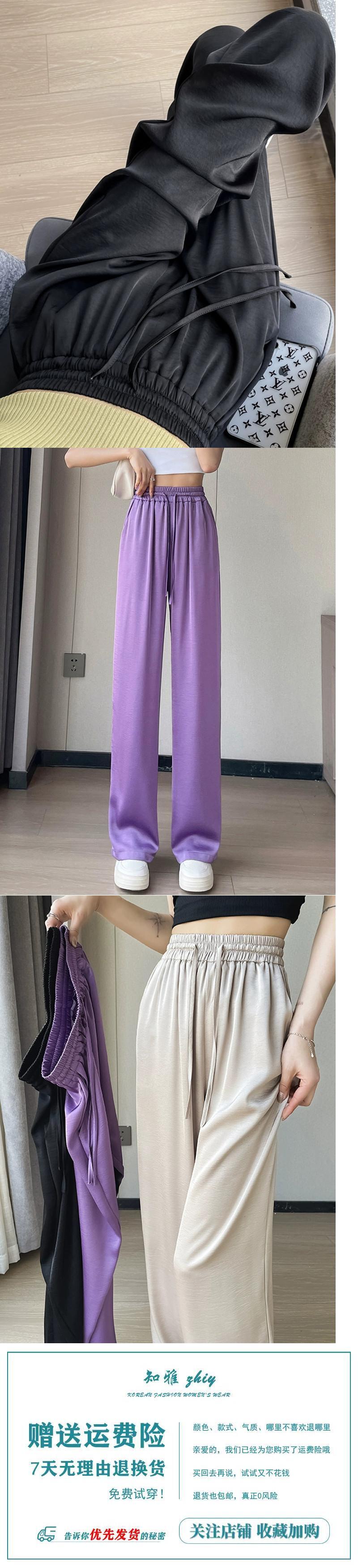 アイスシルクアセテートワイドレッグパンツレディース夏薄手シルクパンツルーズで汎用性の高いハイウエストドレープストレートカジュアルパンツ ハイウェスト サマー 夏物 7460069369724323 | framboise21