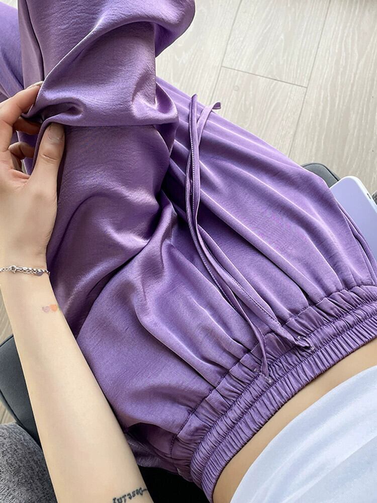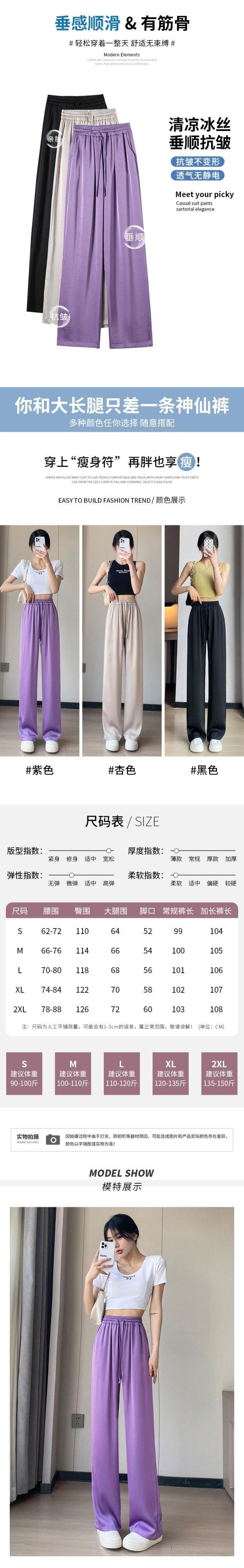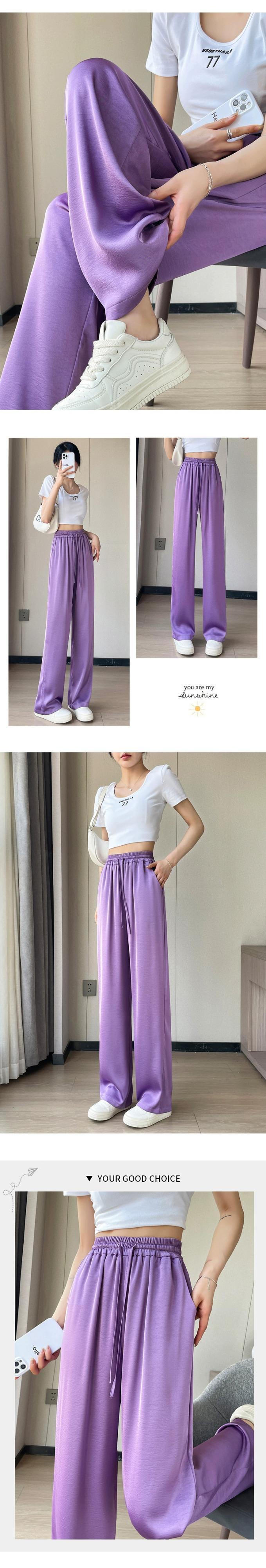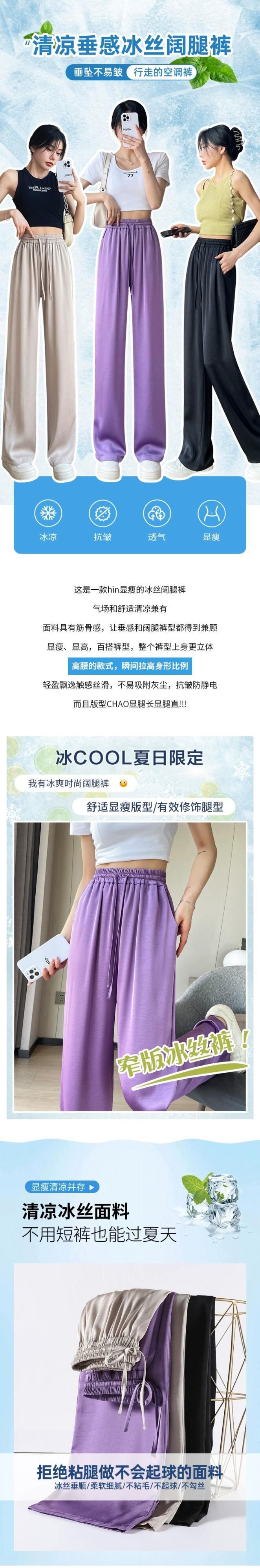 アイスシルクアセテートワイドレッグパンツレディース夏薄手シルクパンツルーズで汎用性の高いハイウエストドレープストレートカジュアルパンツ ハイウェスト サマー 夏物 7460069369724323 | framboise21