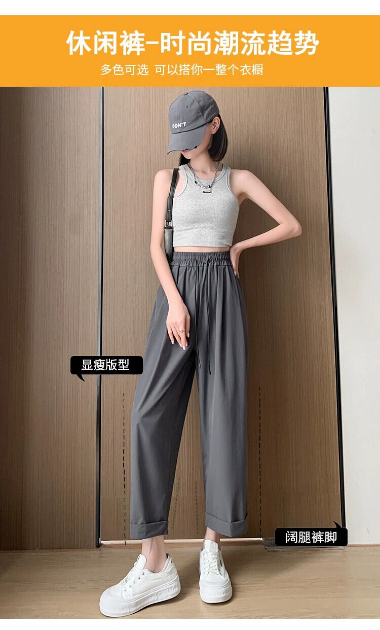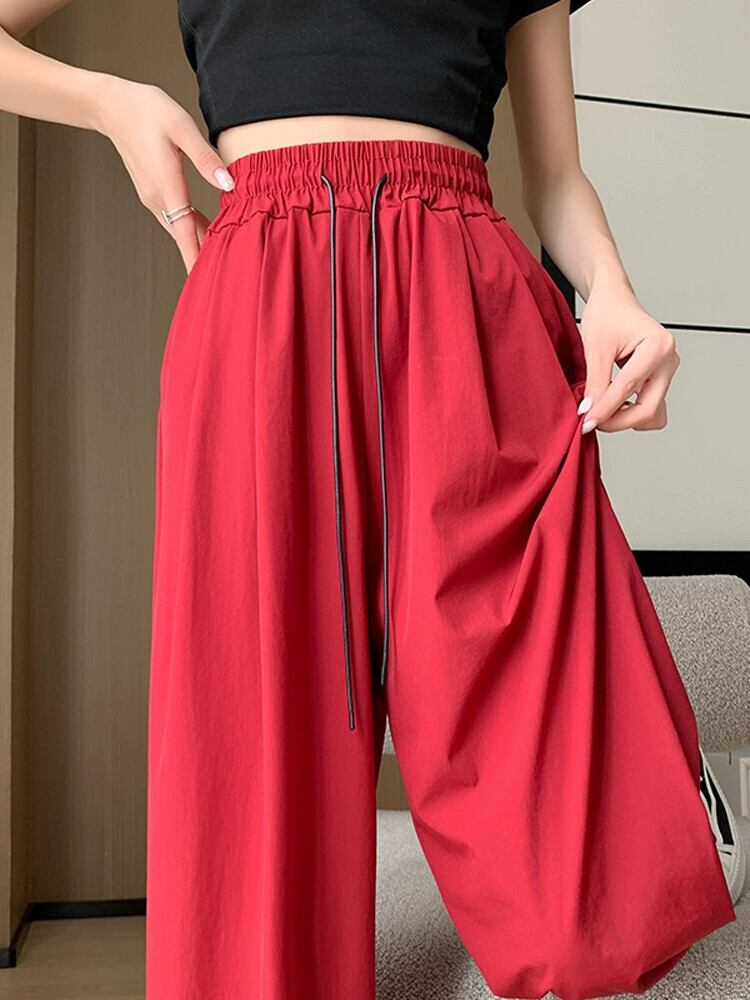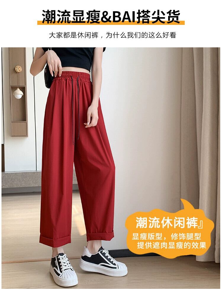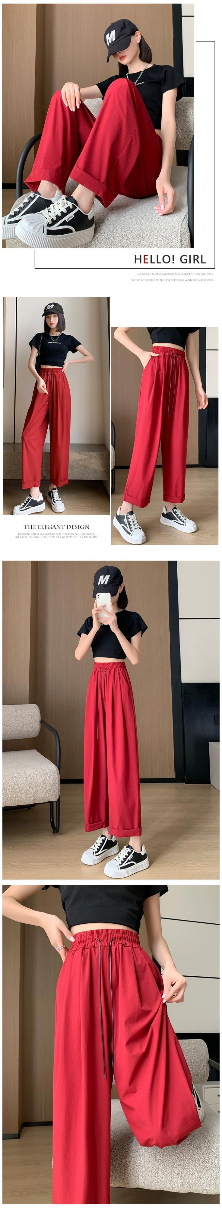 レッドアイスシルクワイドレッグパンツレディース夏薄セクション小さなカジュアルパンツルーズオールマッチハイウエスト9分速乾パンツ ハイウェスト サマー 夏物 7460071090361150 | framboise21