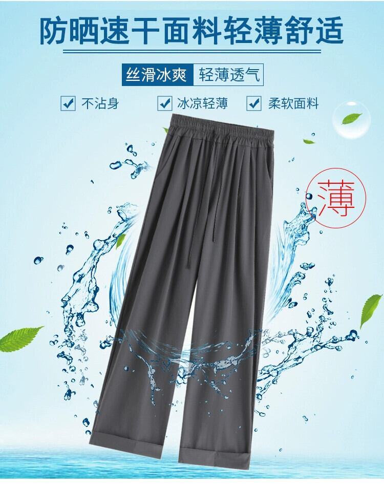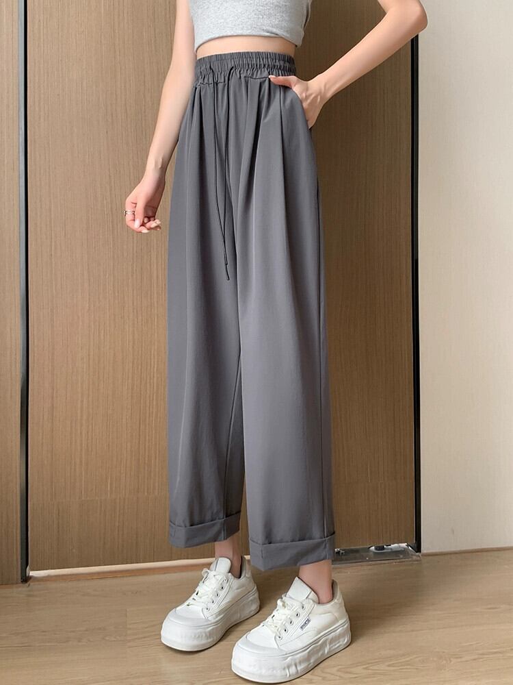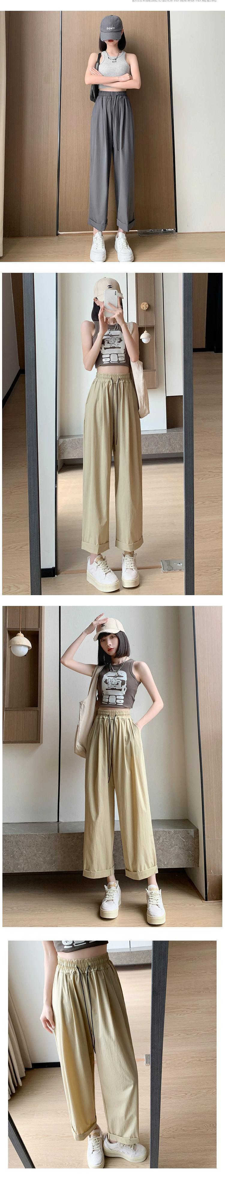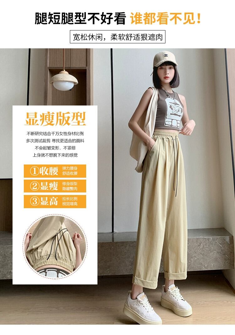 レッドアイスシルクワイドレッグパンツレディース夏薄セクション小さなカジュアルパンツルーズオールマッチハイウエスト9分速乾パンツ ハイウェスト サマー 夏物 7460071090361150 | framboise21