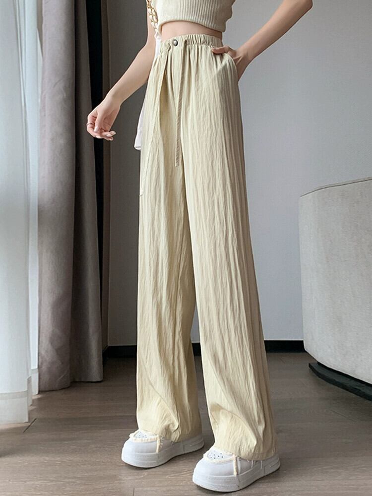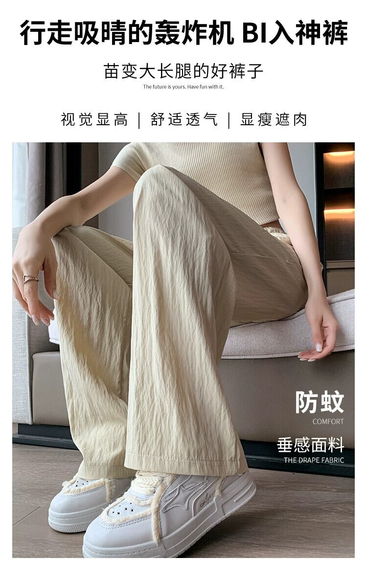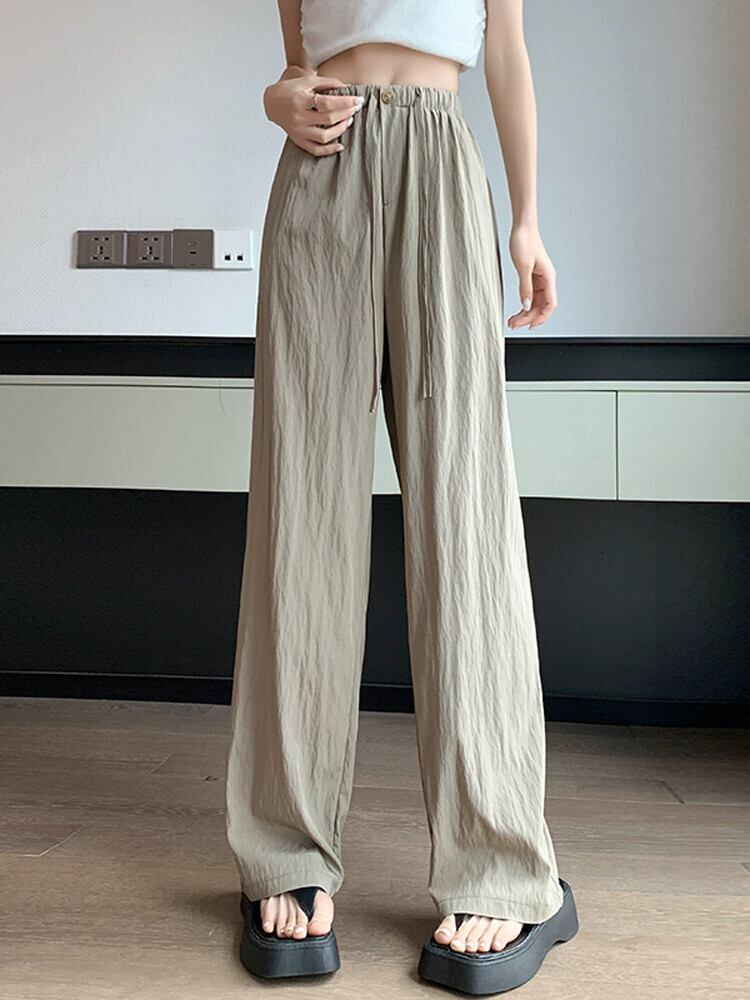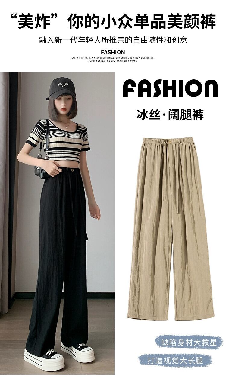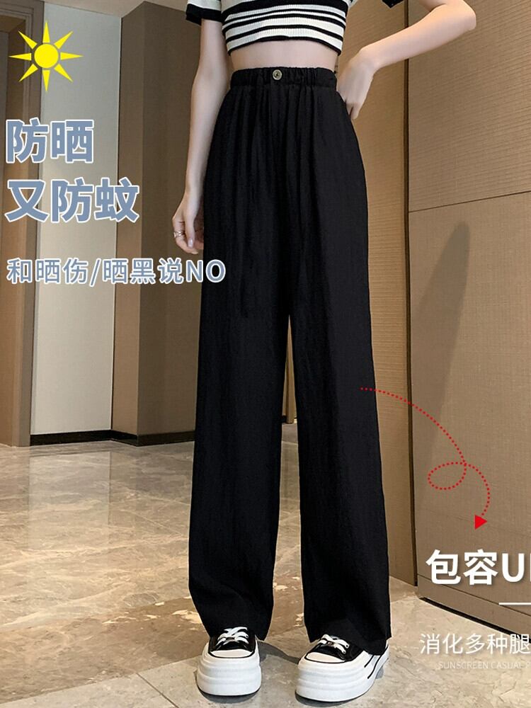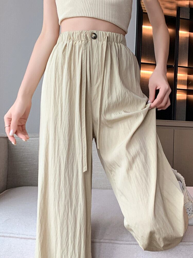 綿とリネンのワイドレッグパンツの女性の夏の新しい薄いセクションアイスシルクの女性のパンツルーズスリムストレートチューブハイウエストドレープカジュアルパンツ ハイウェスト コットン サマー 夏物 7460067745131473 | framboise21