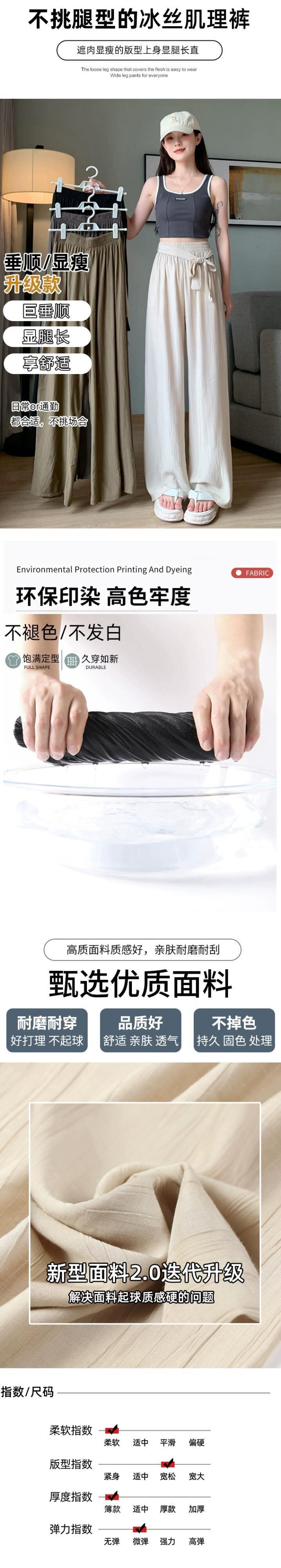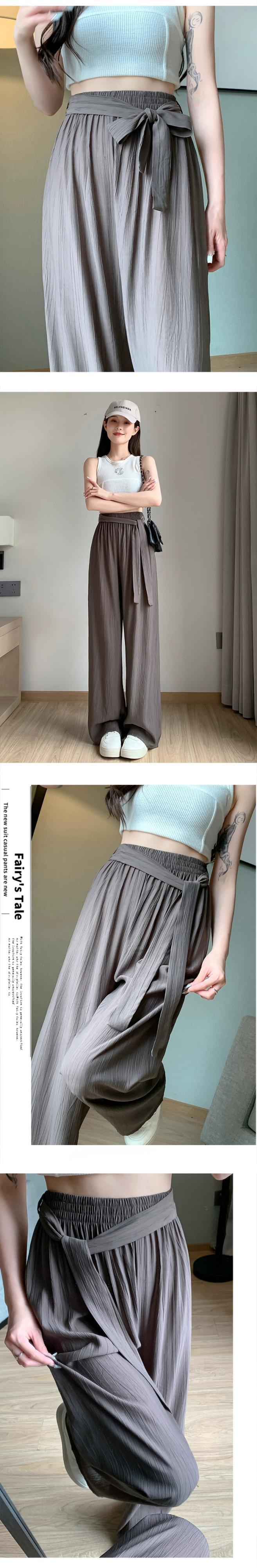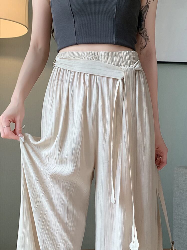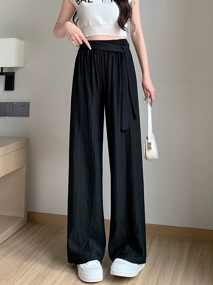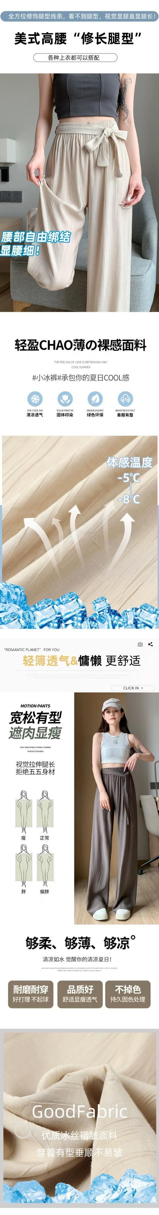 アイスシルクドレープワイドレッグパンツ女性の夏薄いカジュアルパンツ小さなルーズストレートチューブスリムハイウエスト日焼け止めパンツ ハイウェスト サマー 夏物 7460064890526802 | framboise21