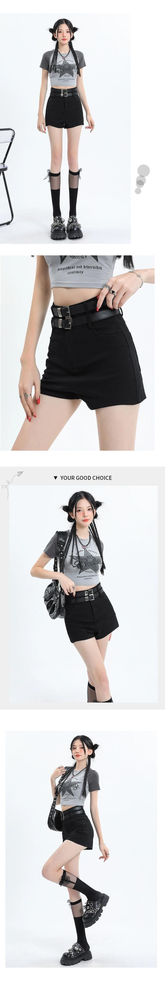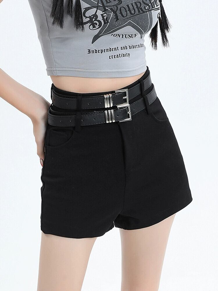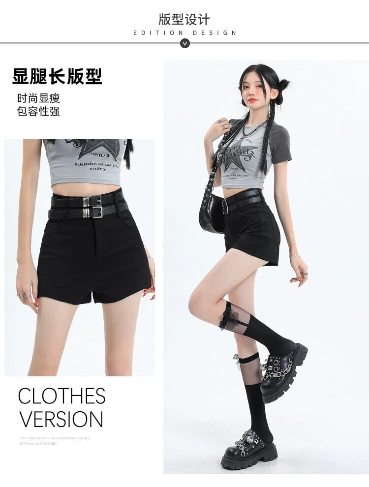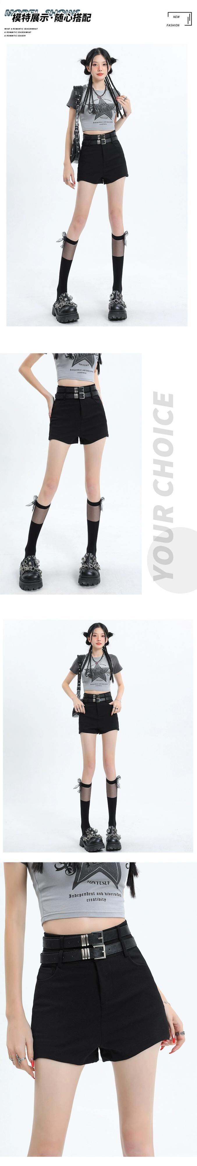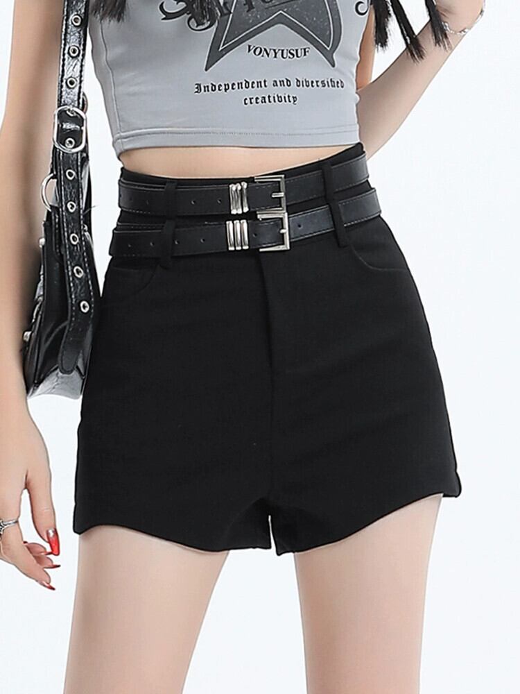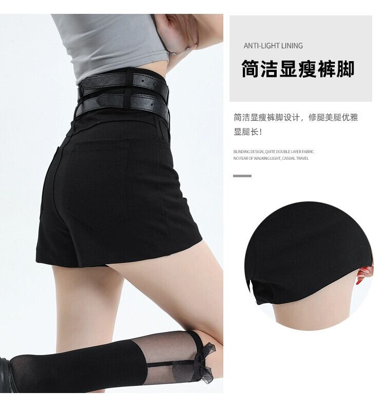 黒のヒップパックボトムショーツ女性は夏に屋外で着用できますハイウエストAライン細いベルトパンツスリムフィットパンツ ハイウェスト ブラック サマー 夏物 ハーネス ブルマー 7460011068614484 | framboise21